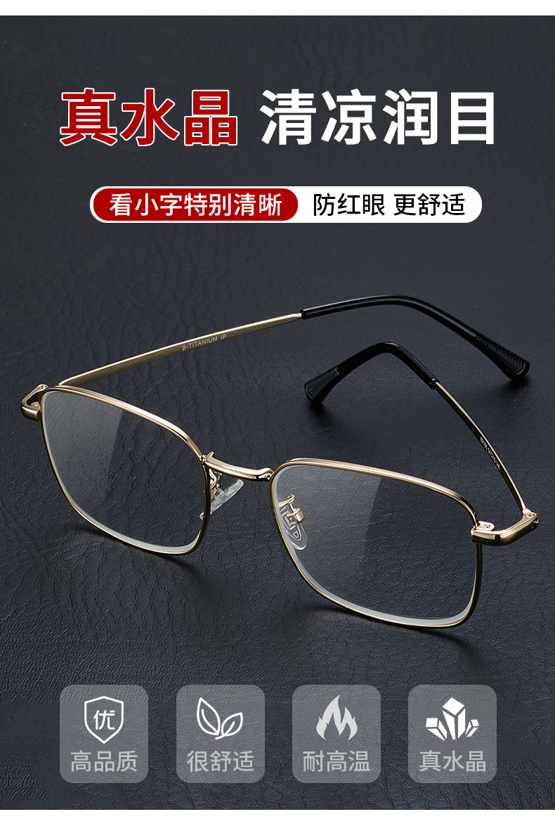 高档水晶玻璃老花眼镜石头老花镜超轻大框金色全框高清镜厂家批发