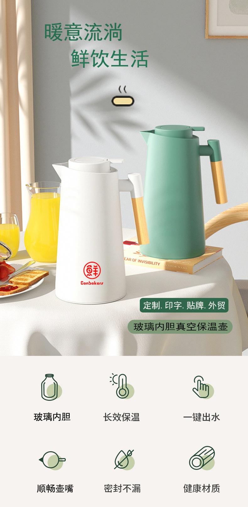 跨境咖啡壶玻璃内胆热水壶暖水壶大容量开水瓶北欧家用保温壶定制