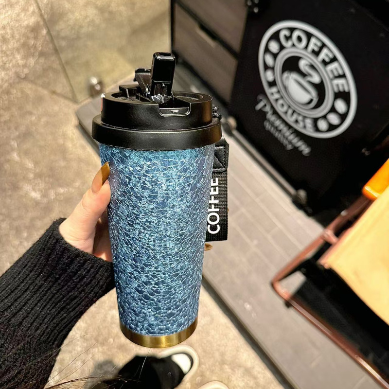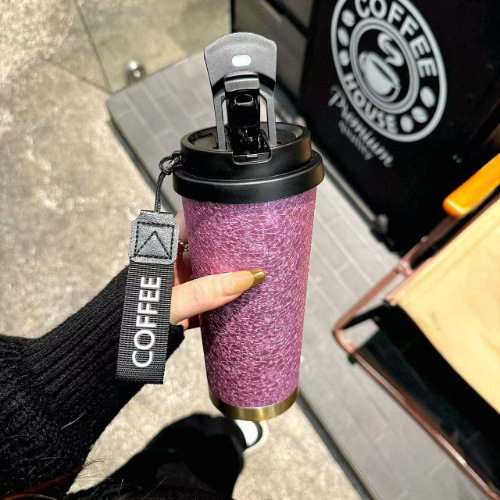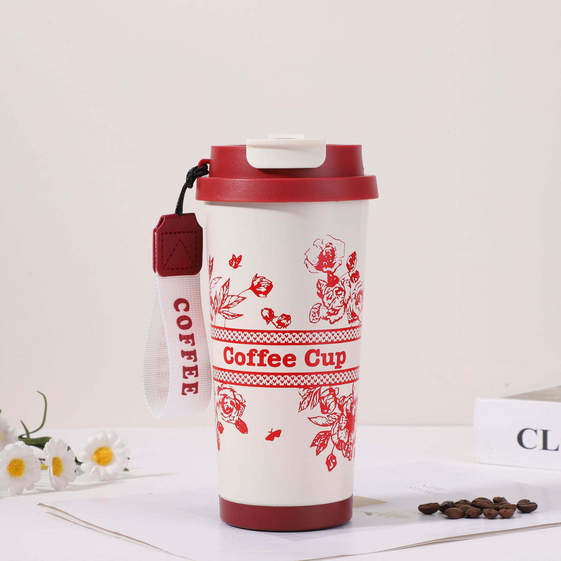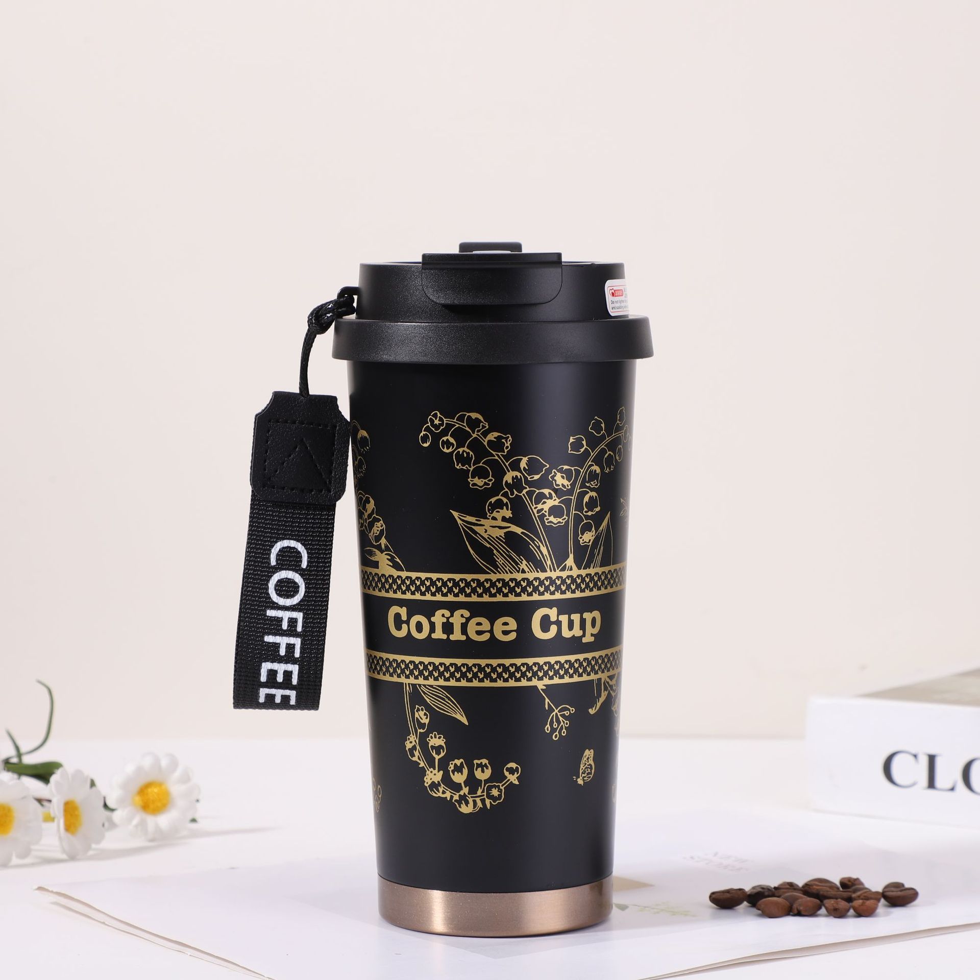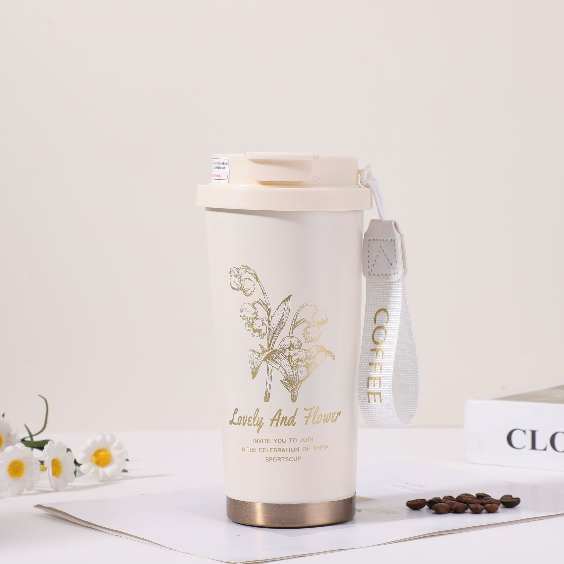 定制高颜值铃兰花咖啡杯女生304不锈钢双饮保温杯车载便携吸管杯