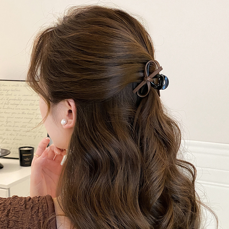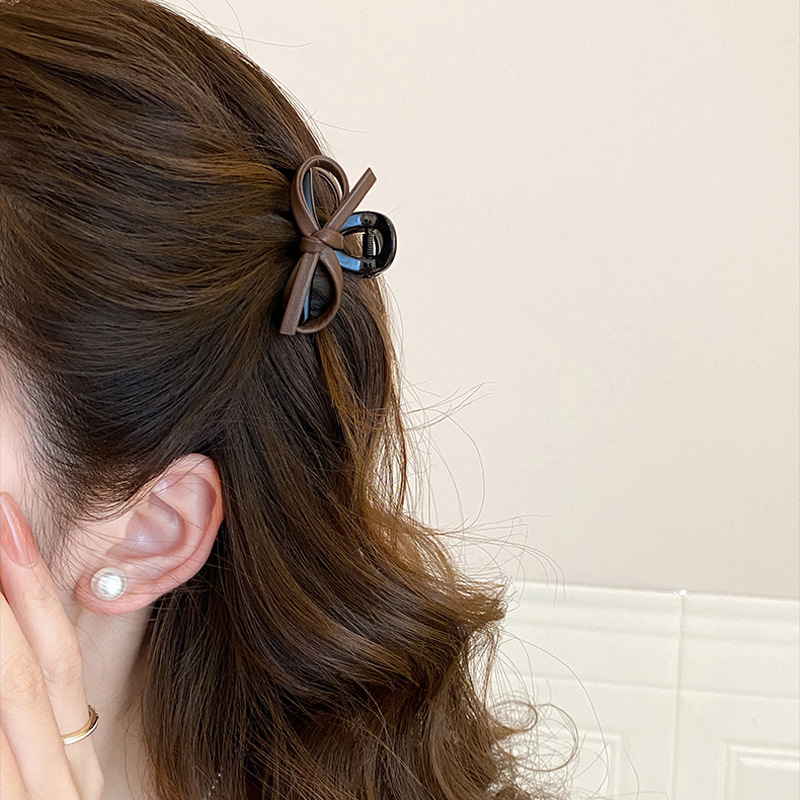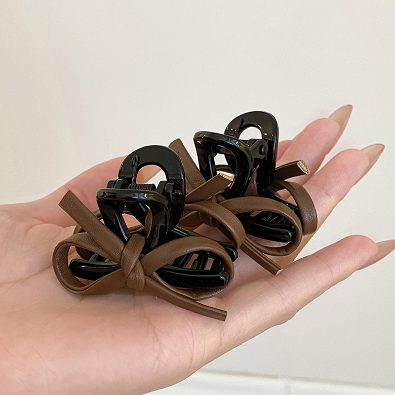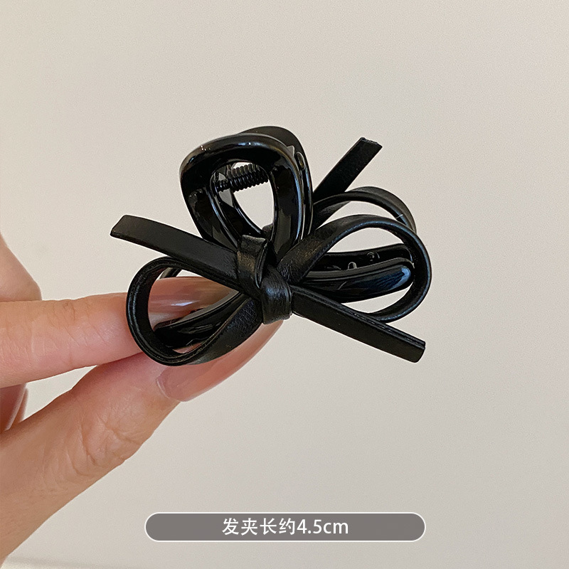 皮质蝴蝶结半扎发小抓夹女高级感侧边刘海夹发量少鲨鱼夹发卡头饰