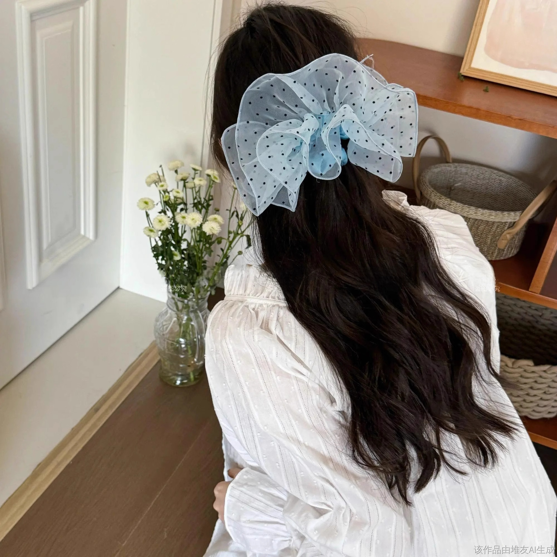 气质波点网纱裙摆发圈2025新款超仙大肠发圈头花大号发绳头绳头饰