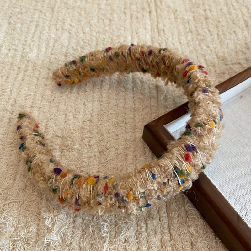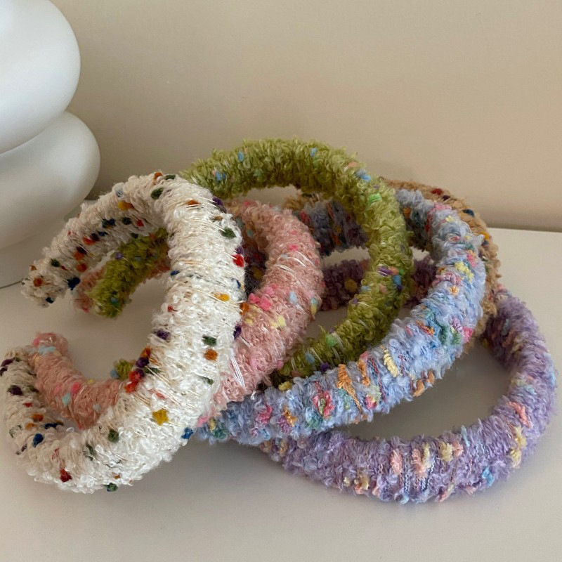 秋冬小众彩色糖豆毛线缠绕发箍发饰法式复古高级感毛绒绒头箍发卡