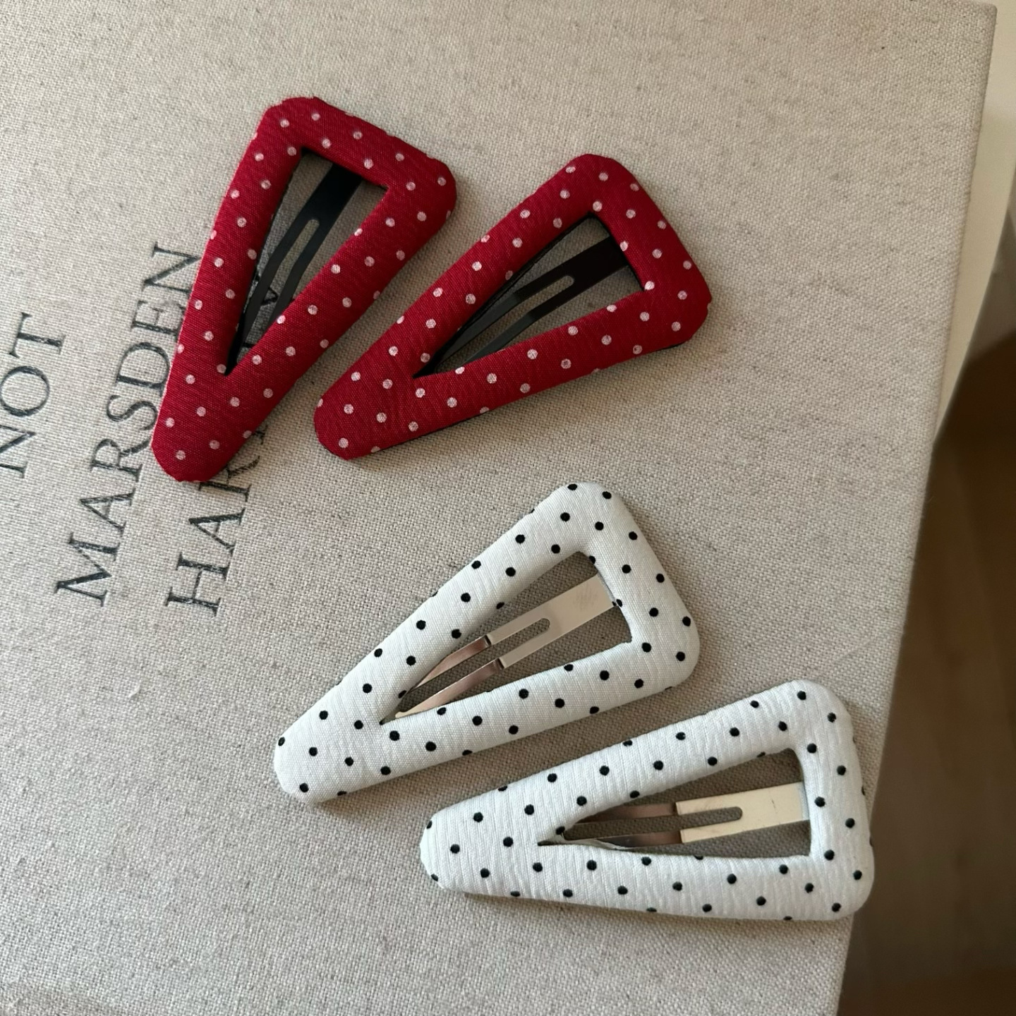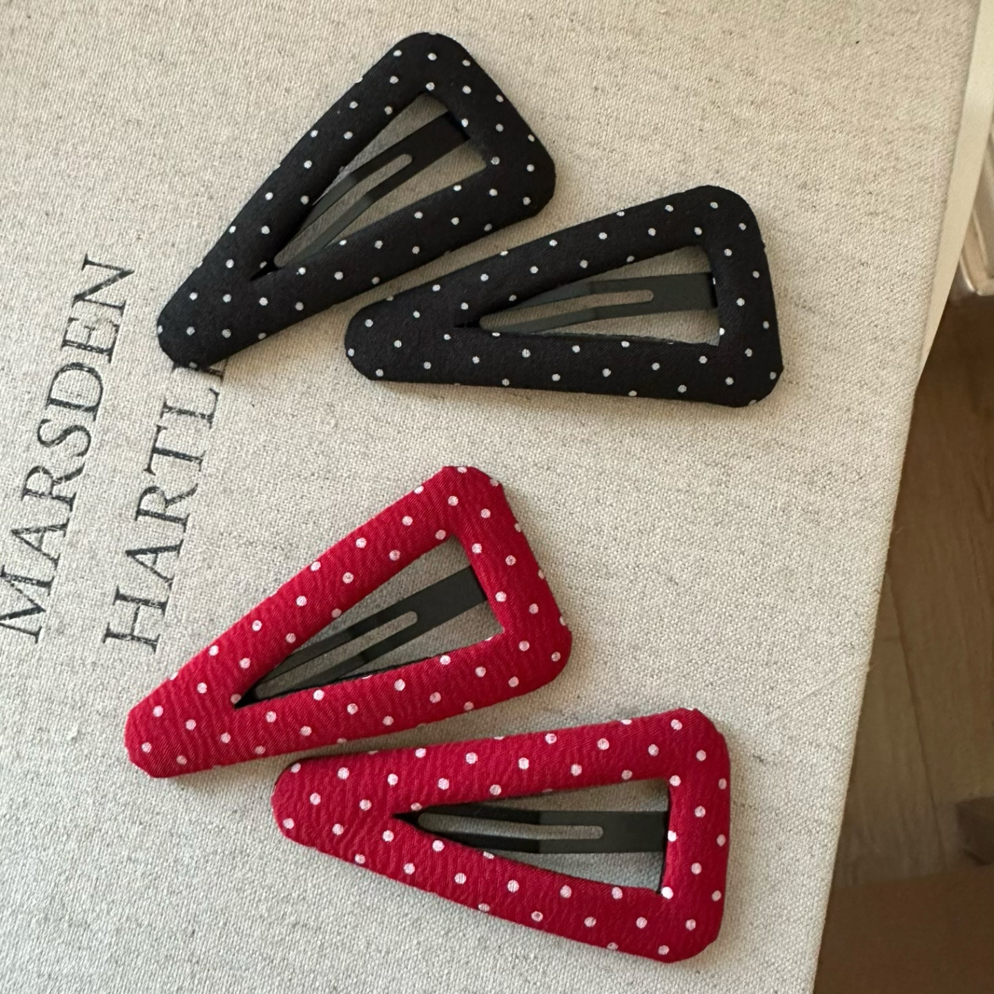 韩版新款手做波点布艺发夹刘海夹掰掰夹复古减龄碎发边夹三角发卡