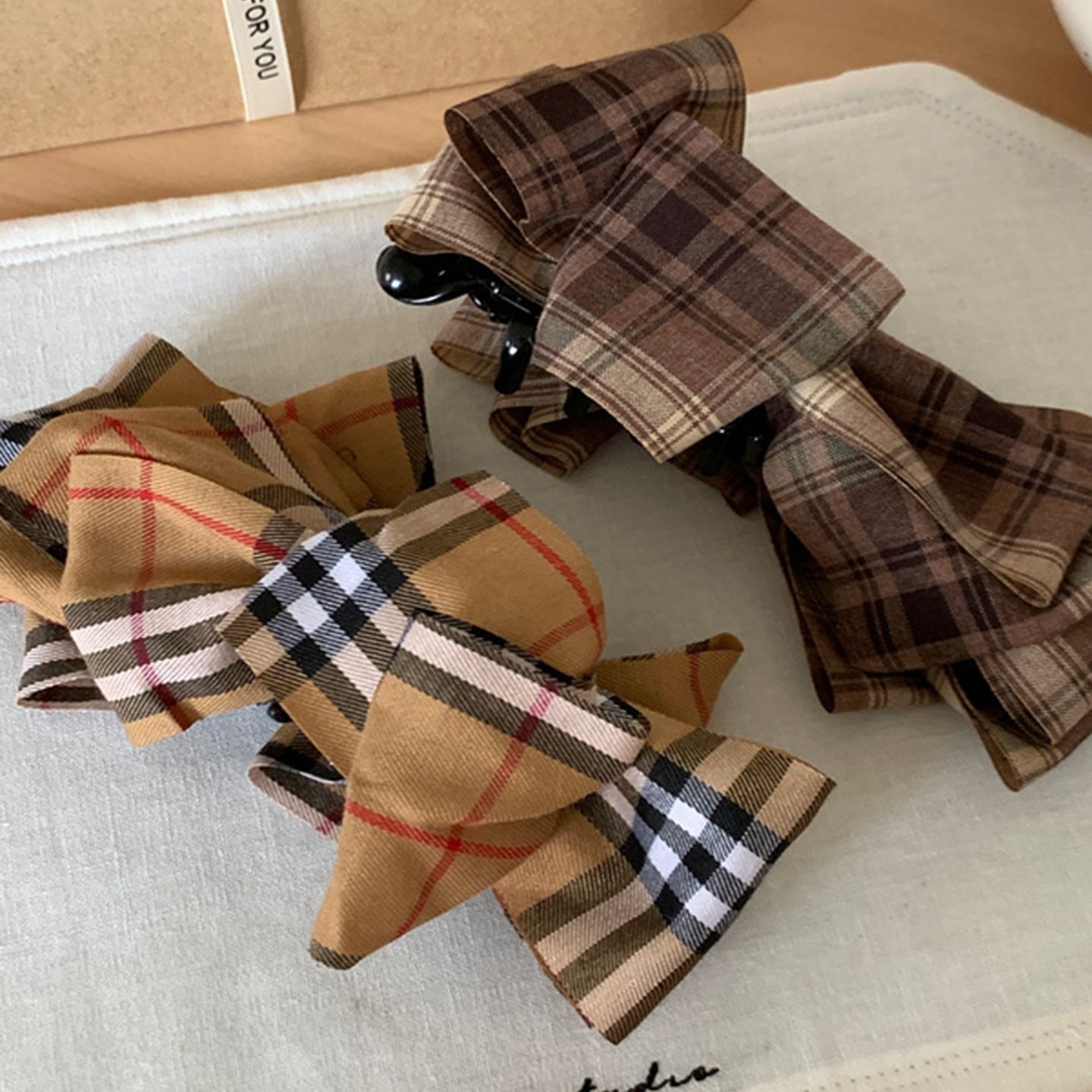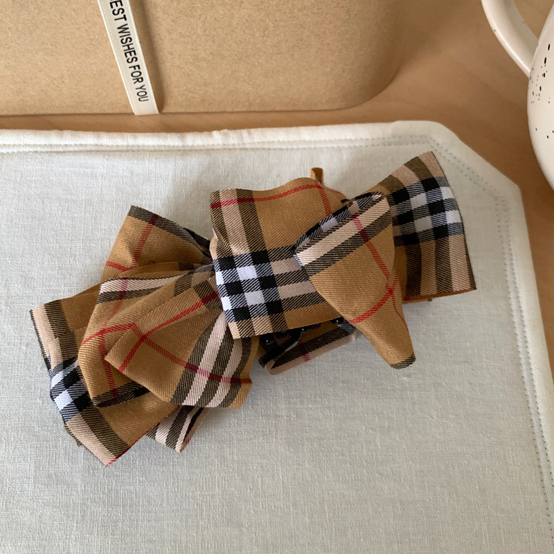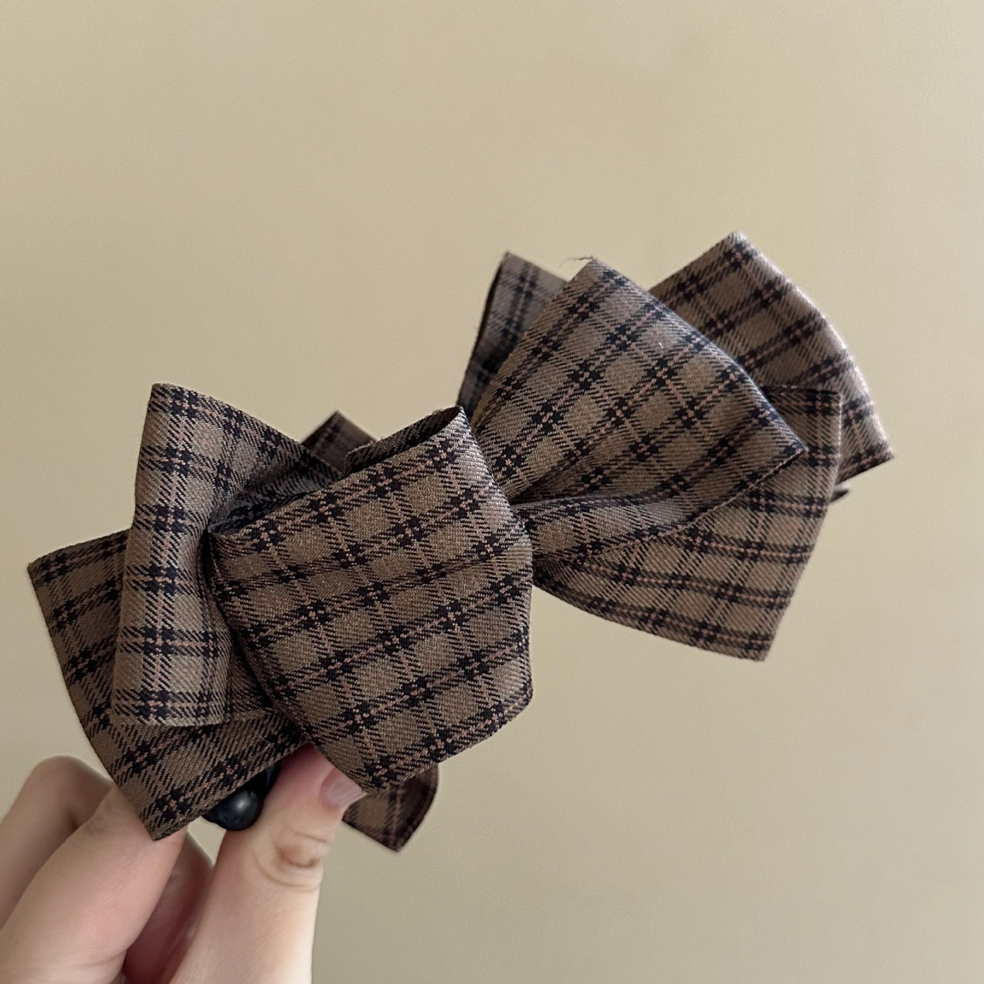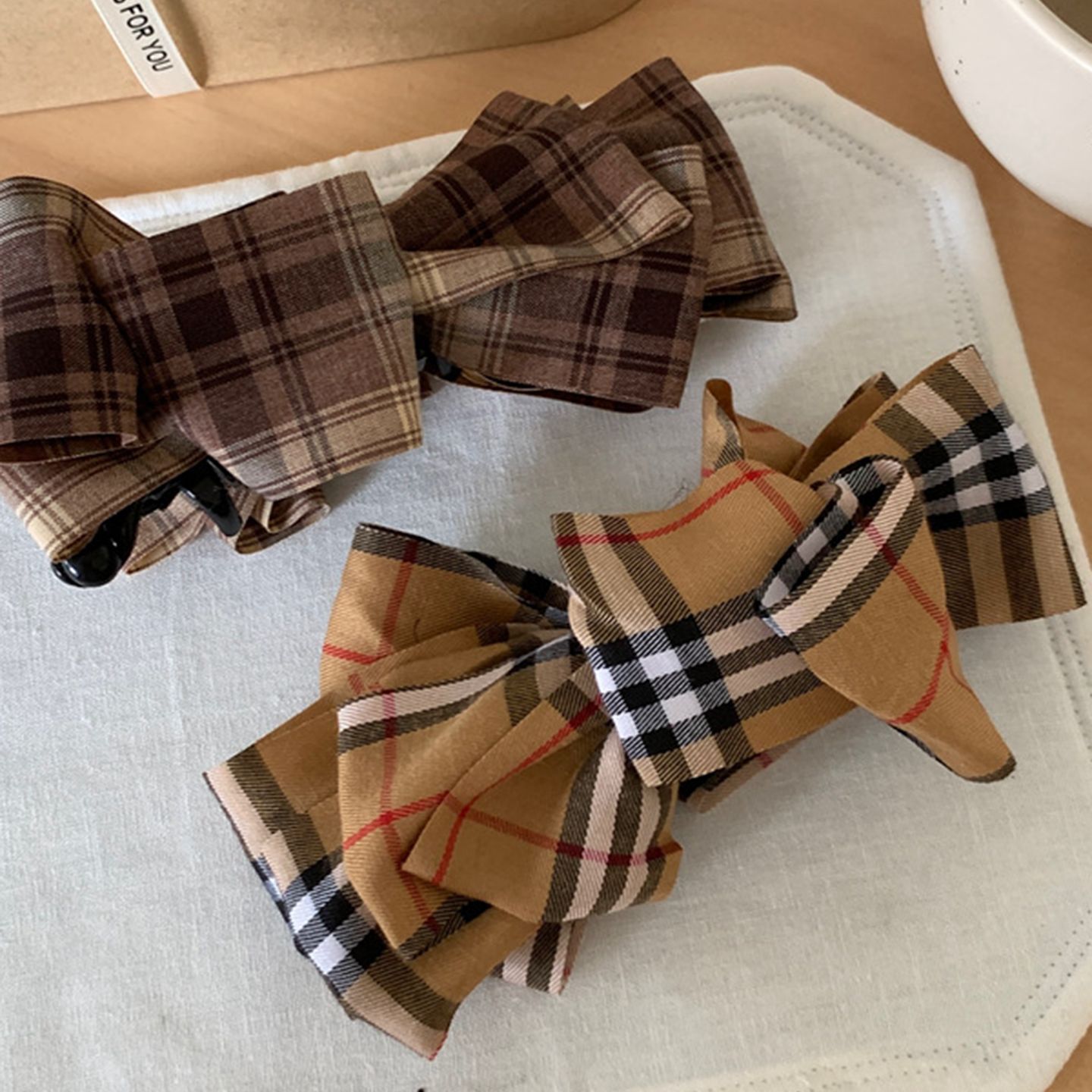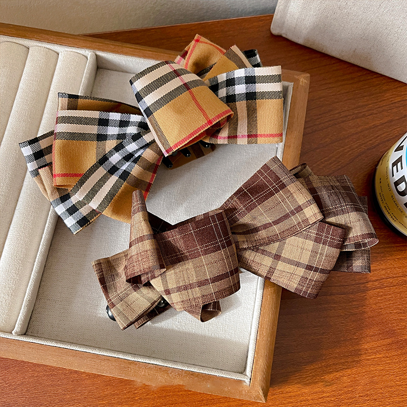 复古英伦风格纹蝴蝶结香蕉发夹女2025新款半扎马尾竖夹后脑勺发卡