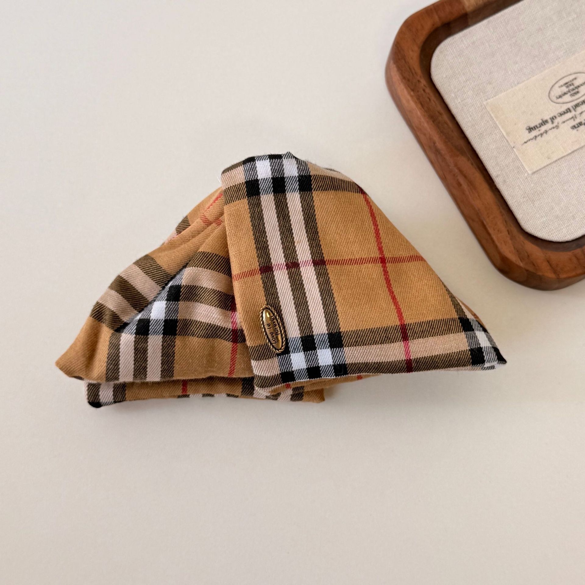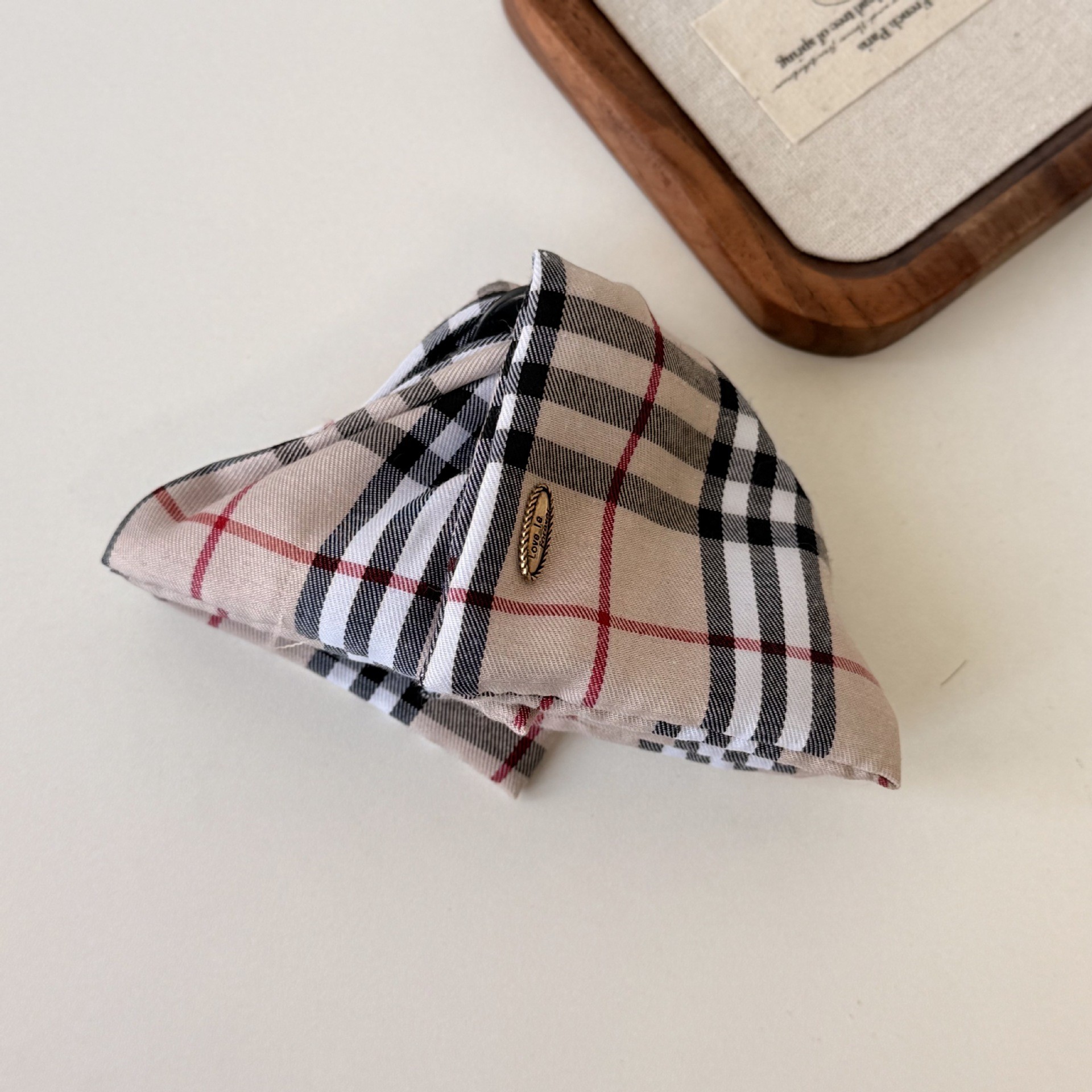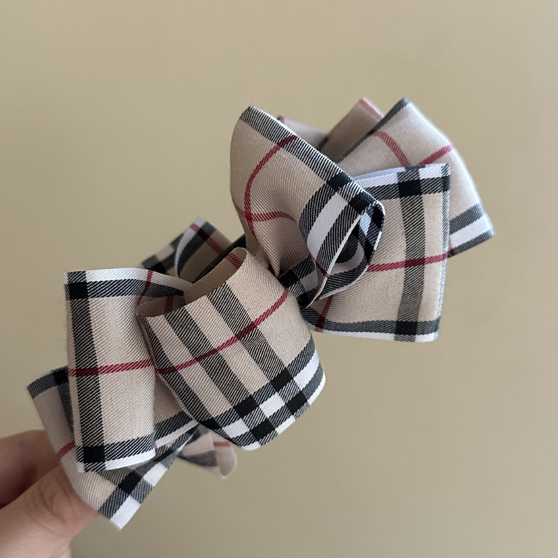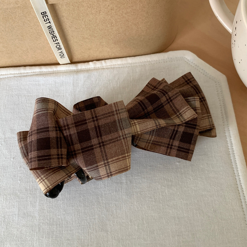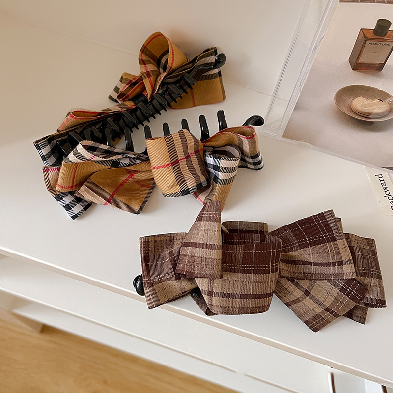 复古英伦风格纹蝴蝶结香蕉发夹女2025新款半扎马尾竖夹后脑勺发卡