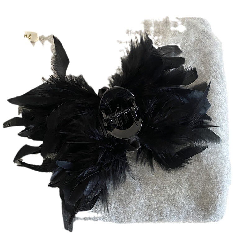 法式气质纯欲鸵鸟毛羽毛抓夹大号女2023新款后脑毛毛发夹鲨鱼夹
