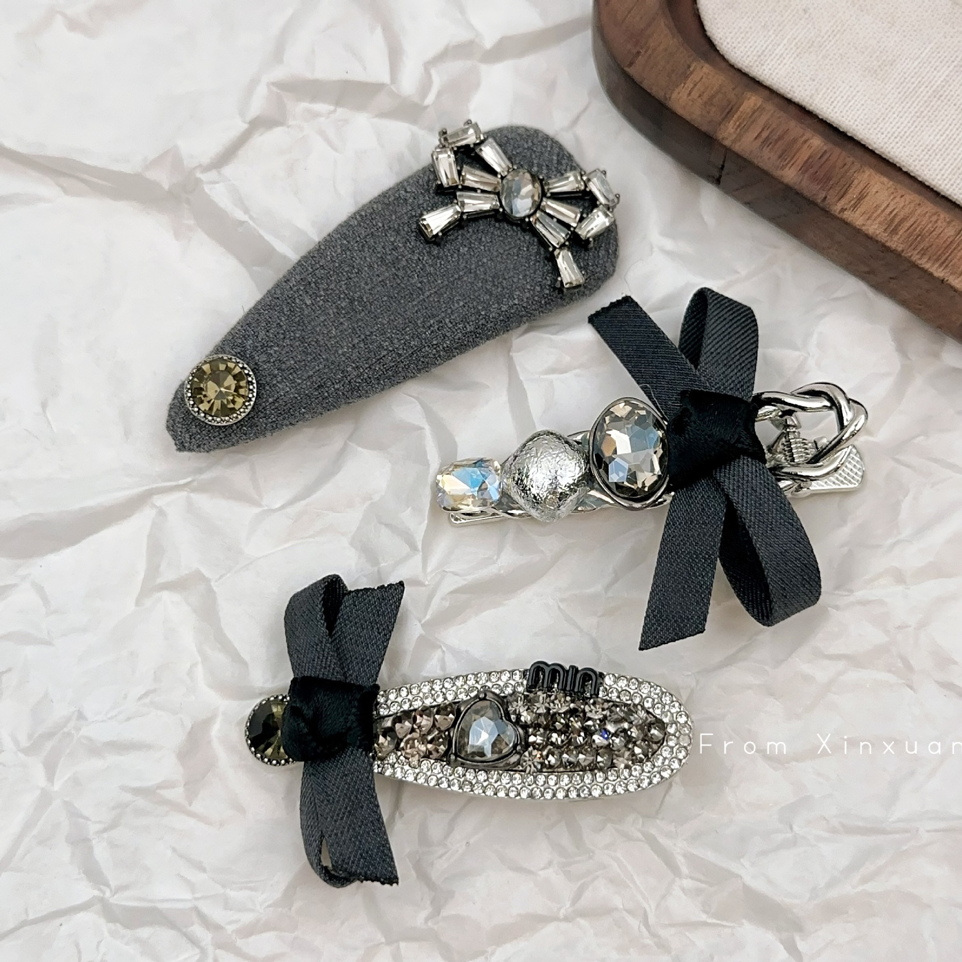 韩国高级感灰色蝴蝶结发夹网红侧边发卡边夹少女刘海夹BB夹鸭嘴夹