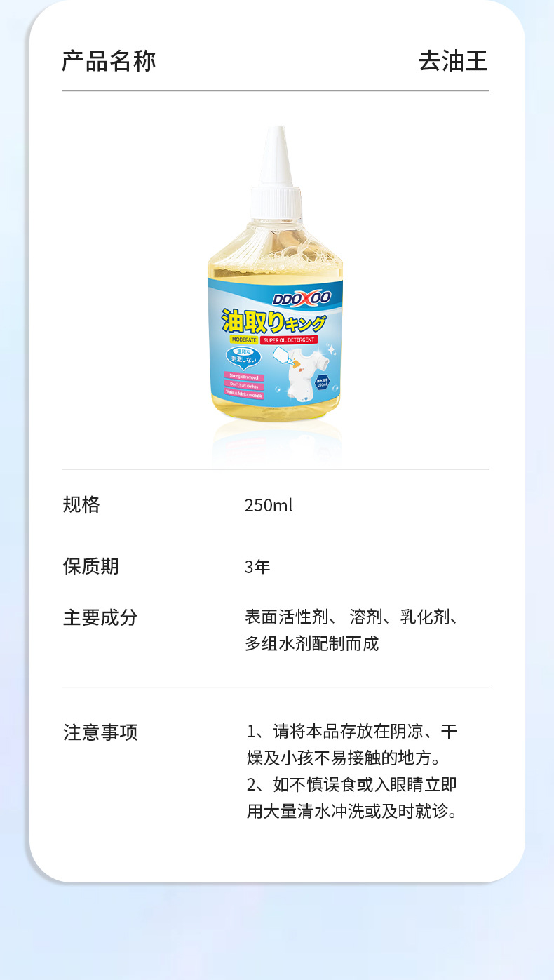 去油王衣物去油污强力去污渍神器衣服清洁剂顽固油渍干洗剂除油王
