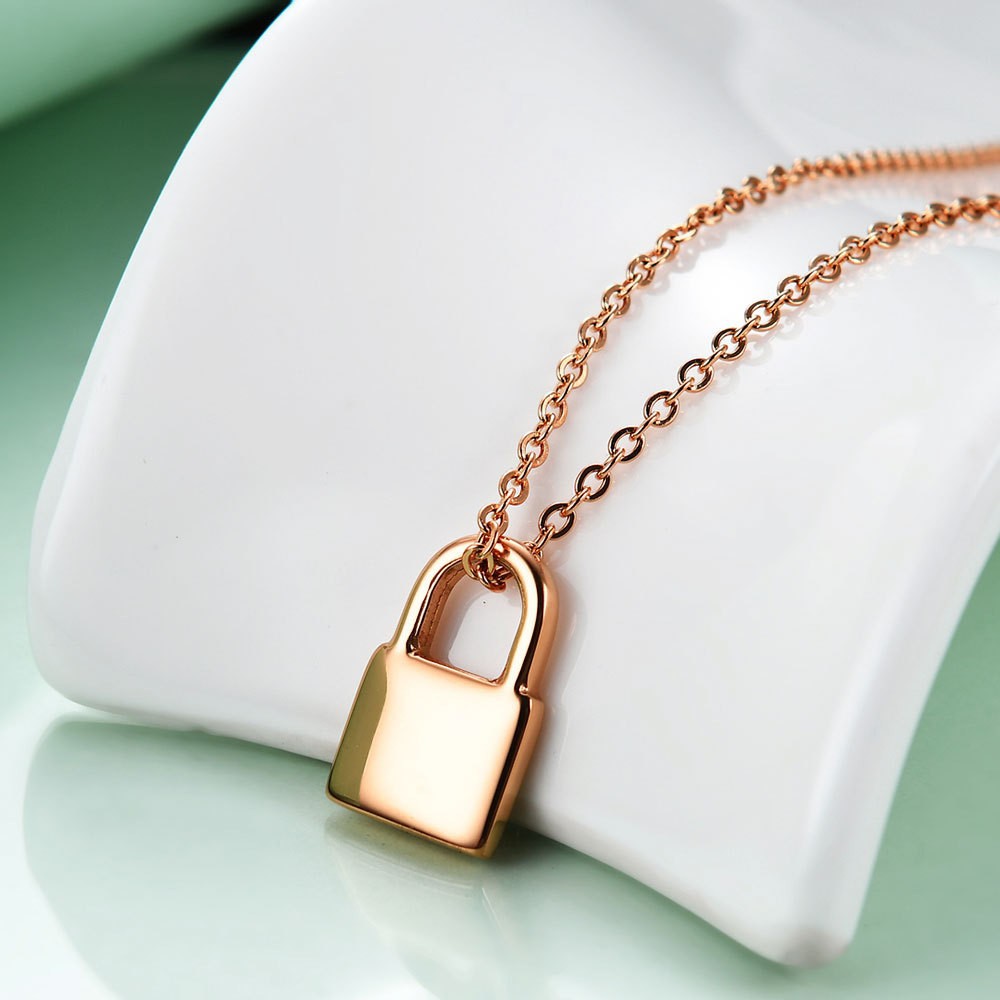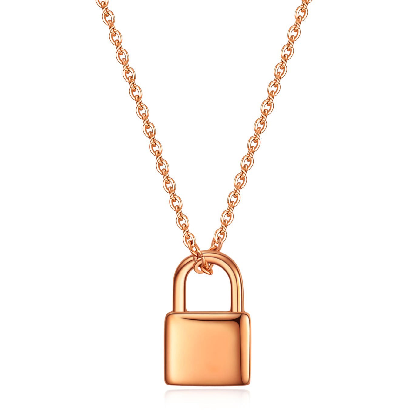 跨境亚马逊欧美热卖12MM锁头不锈钢光面18K金个性百搭项链可刻字