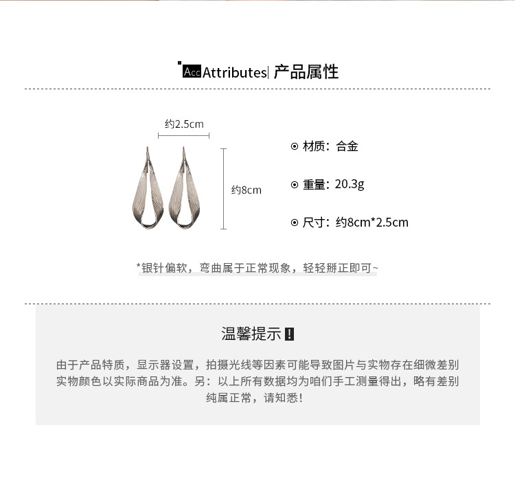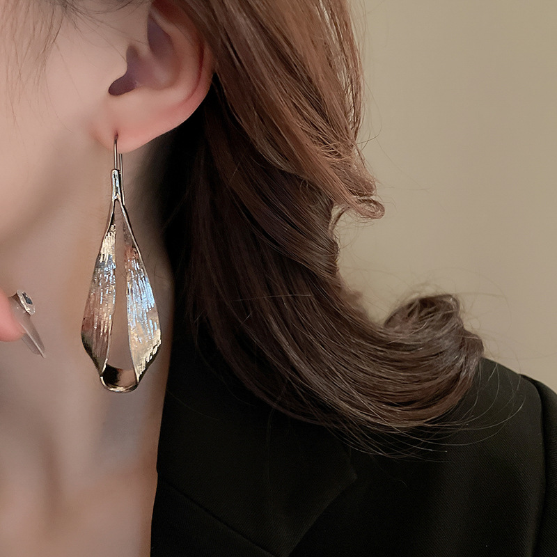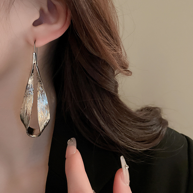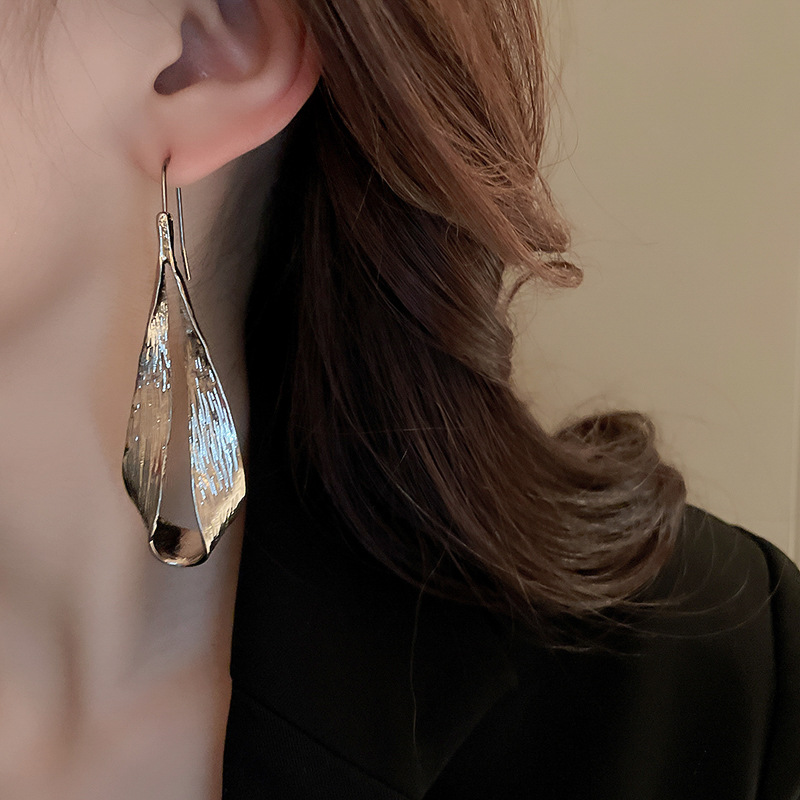 冷淡金属感水滴叶子耳钩耳环欧美夸张小众气质高级感网红耳饰女
