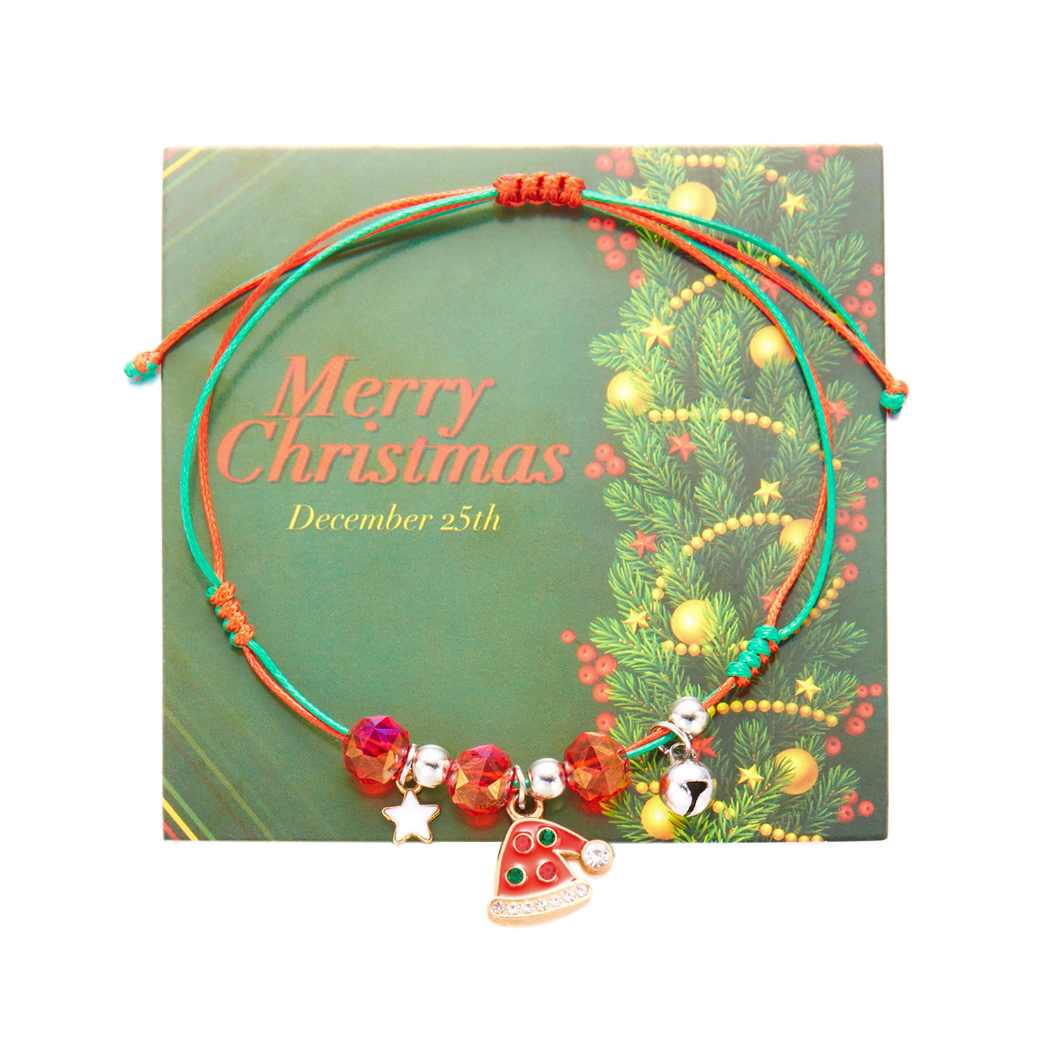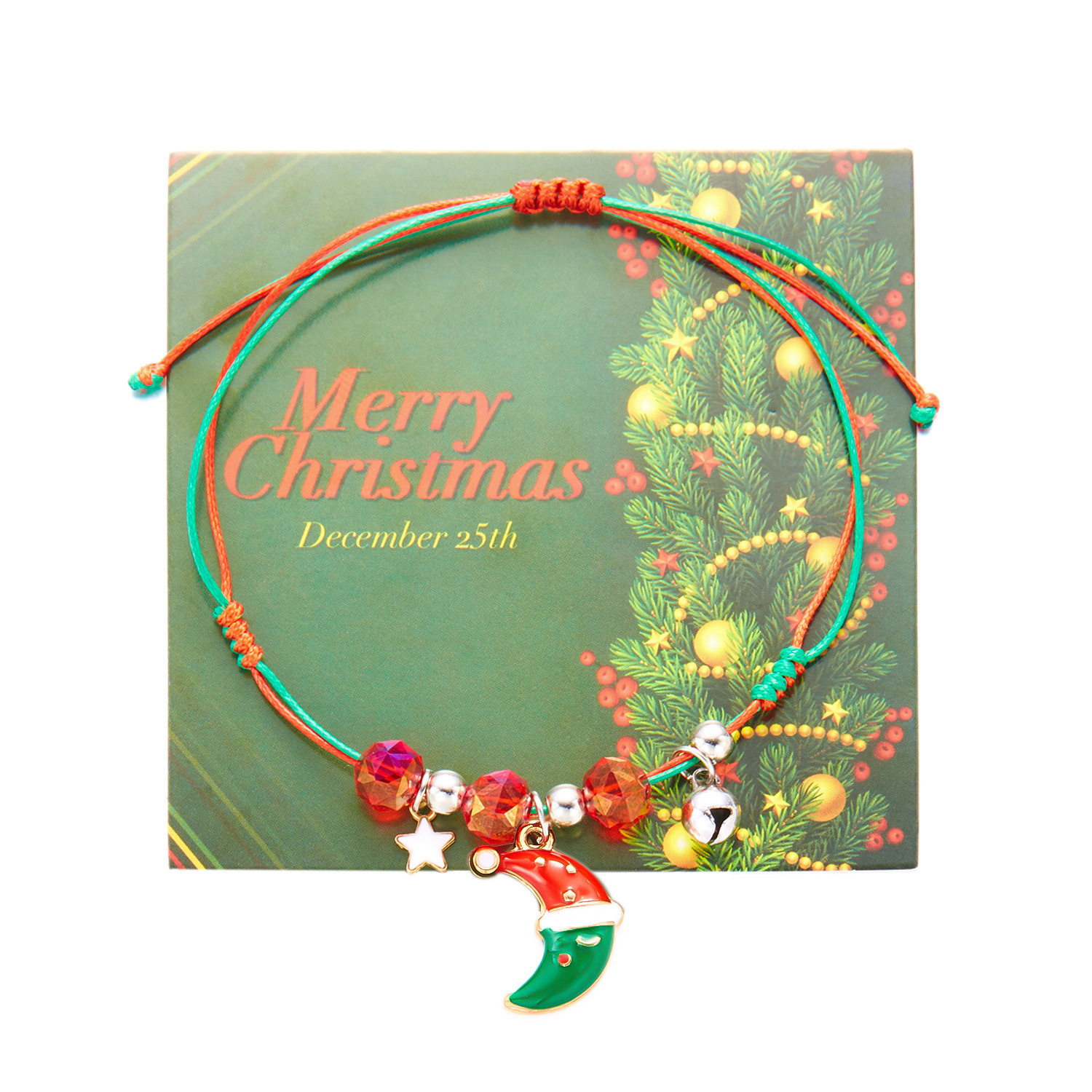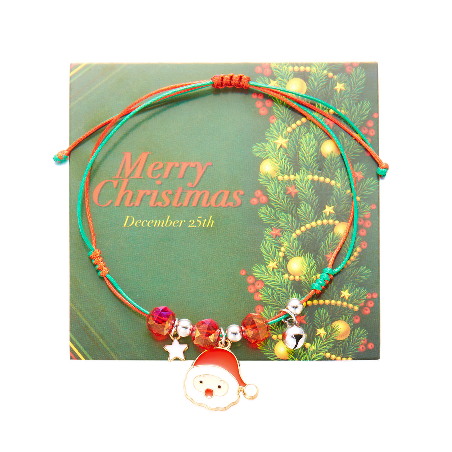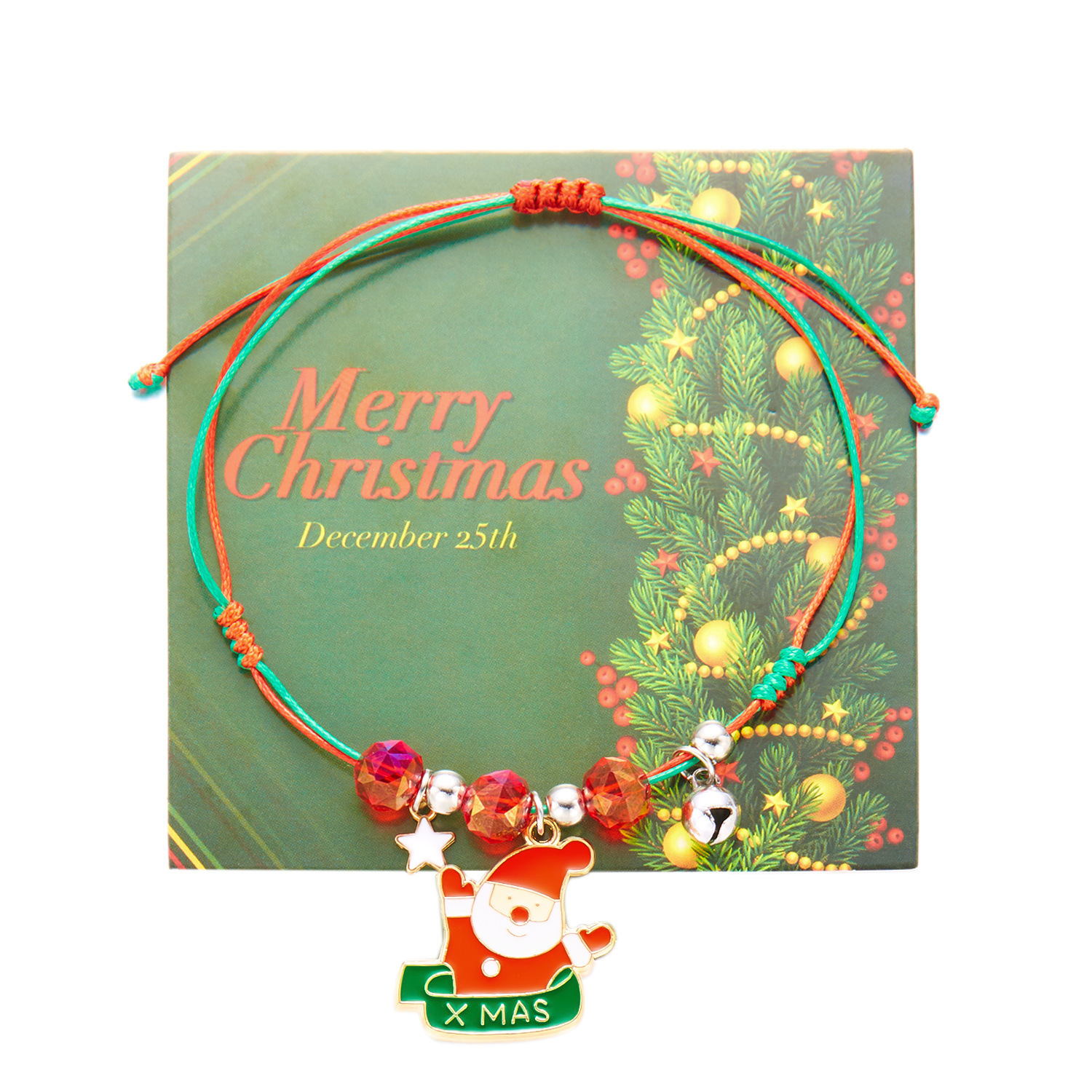 跨境圣诞节元素手链欧美风圣诞树圣诞老人吊坠编织手链节日饰品