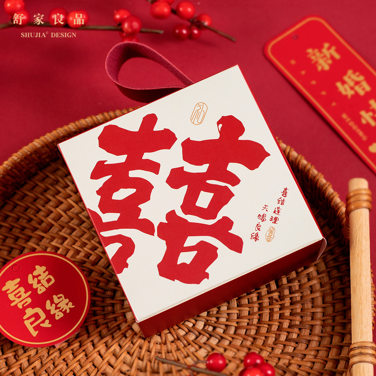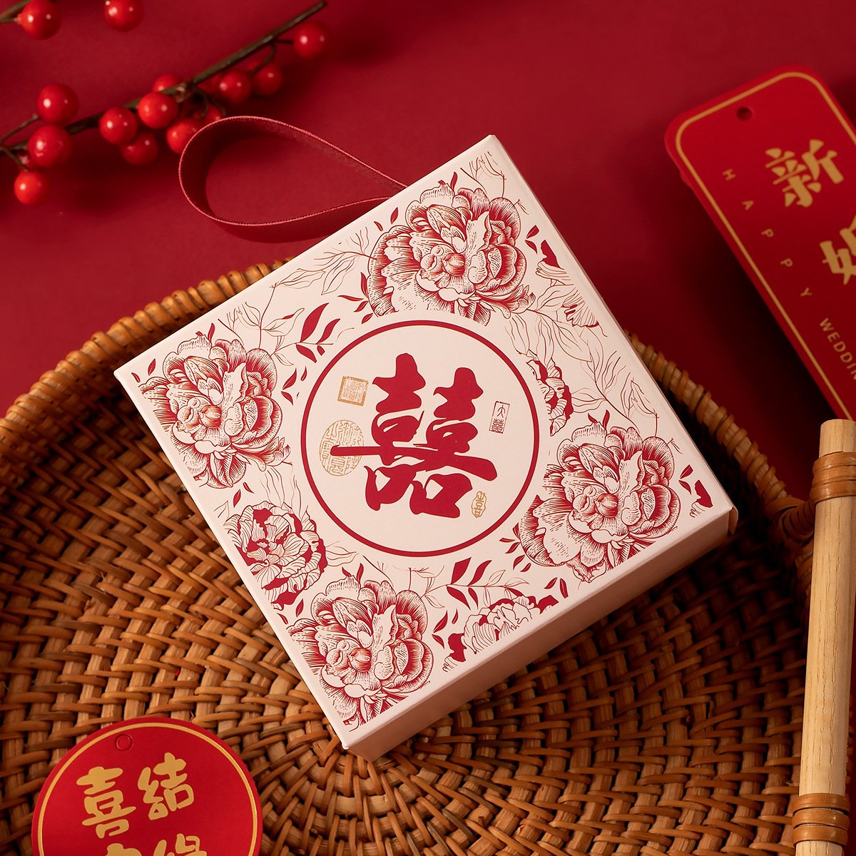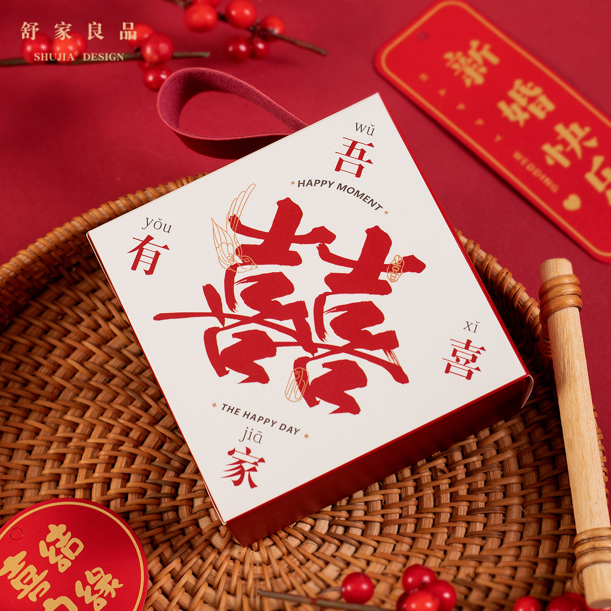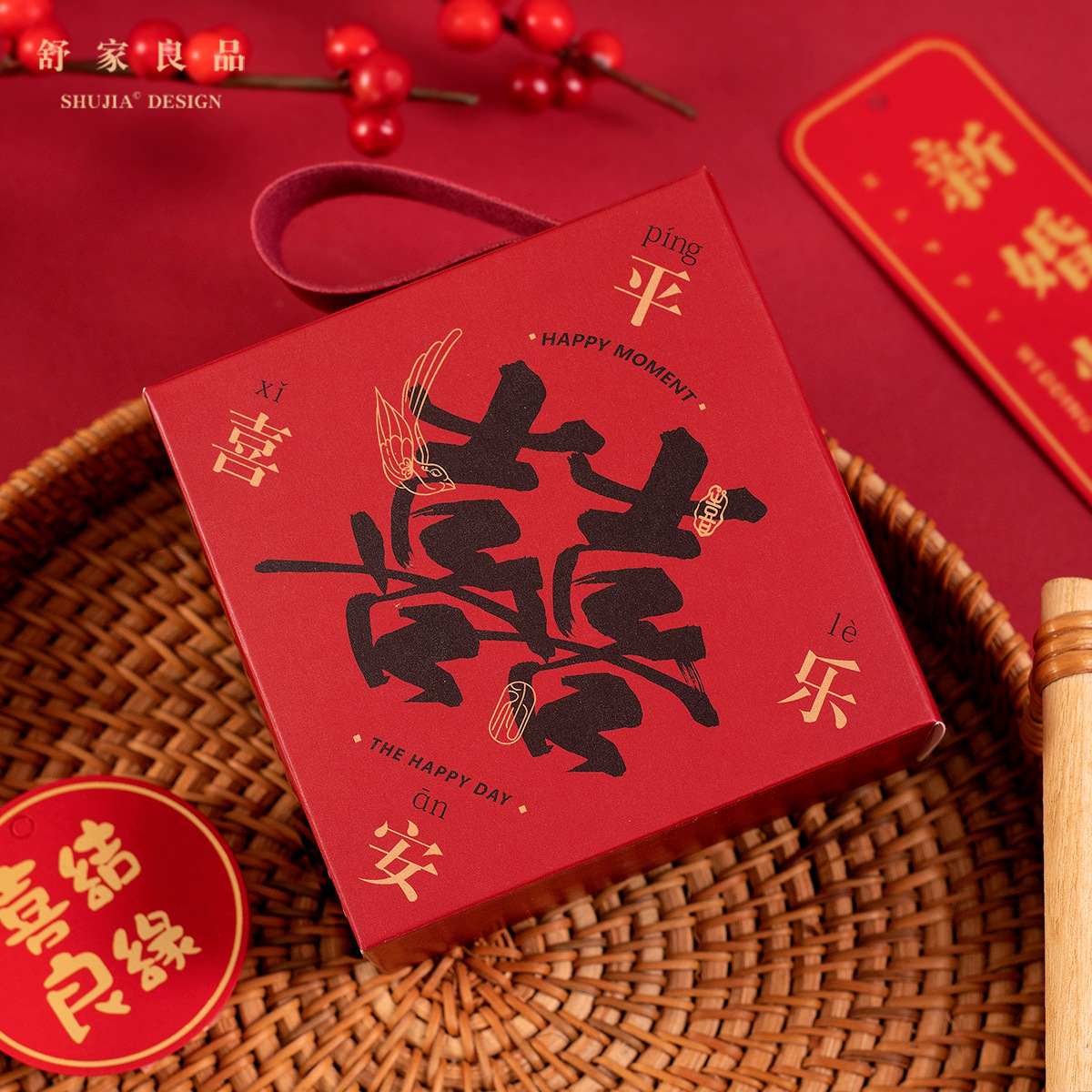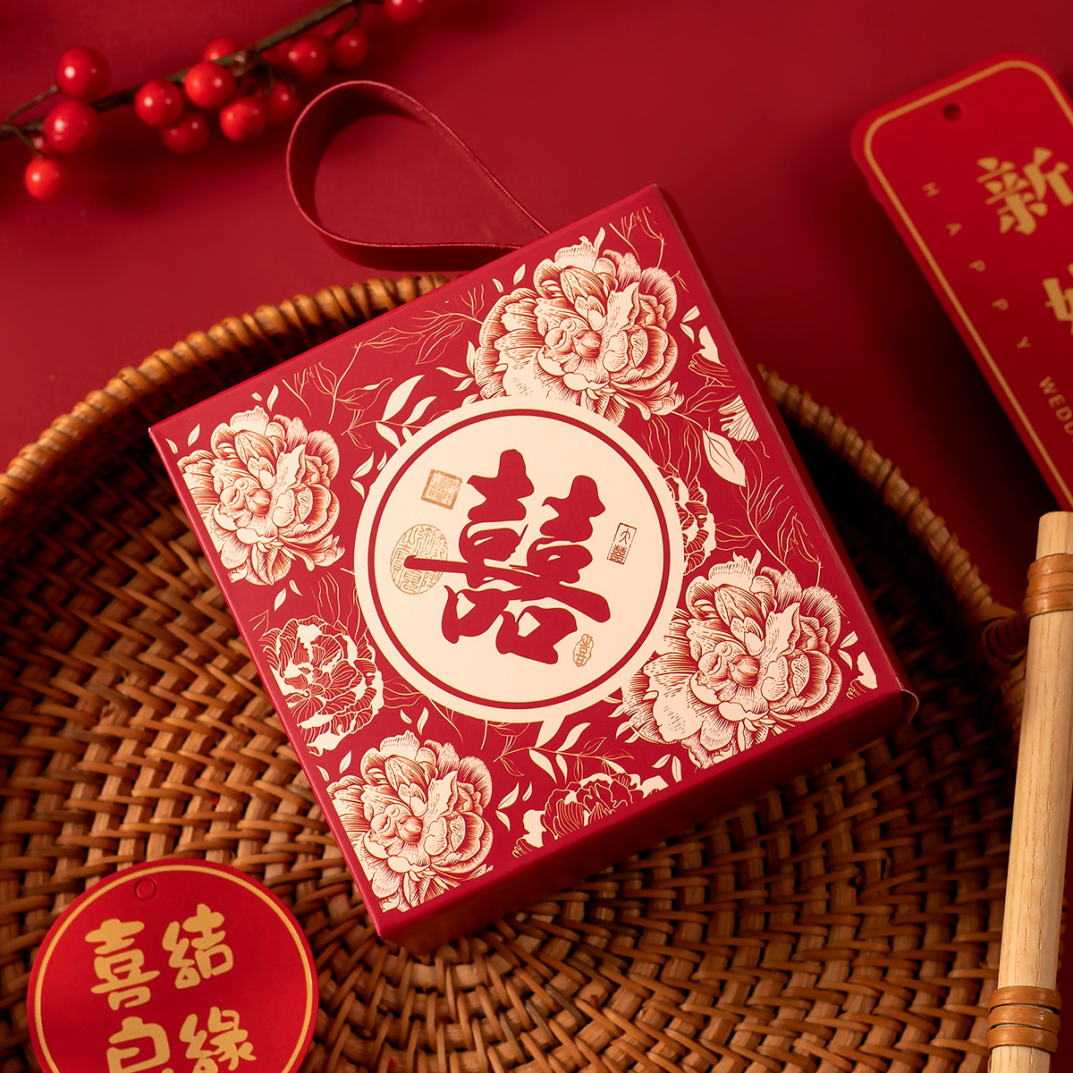 高颜值新婚中式新人喜糖盒皮质手提复古喜字结婚伴手礼礼盒喜礼