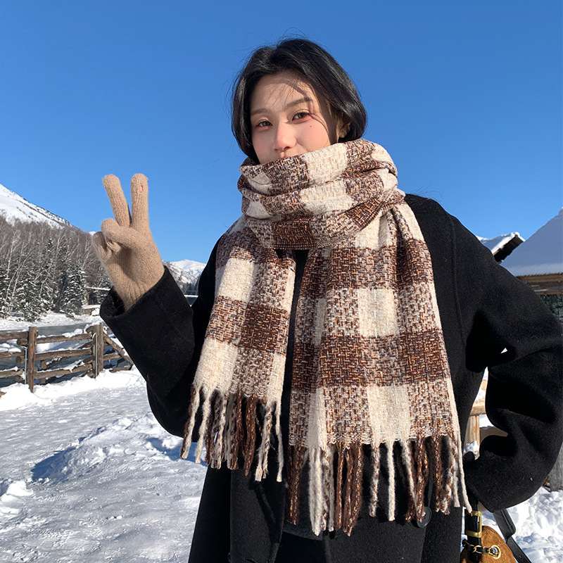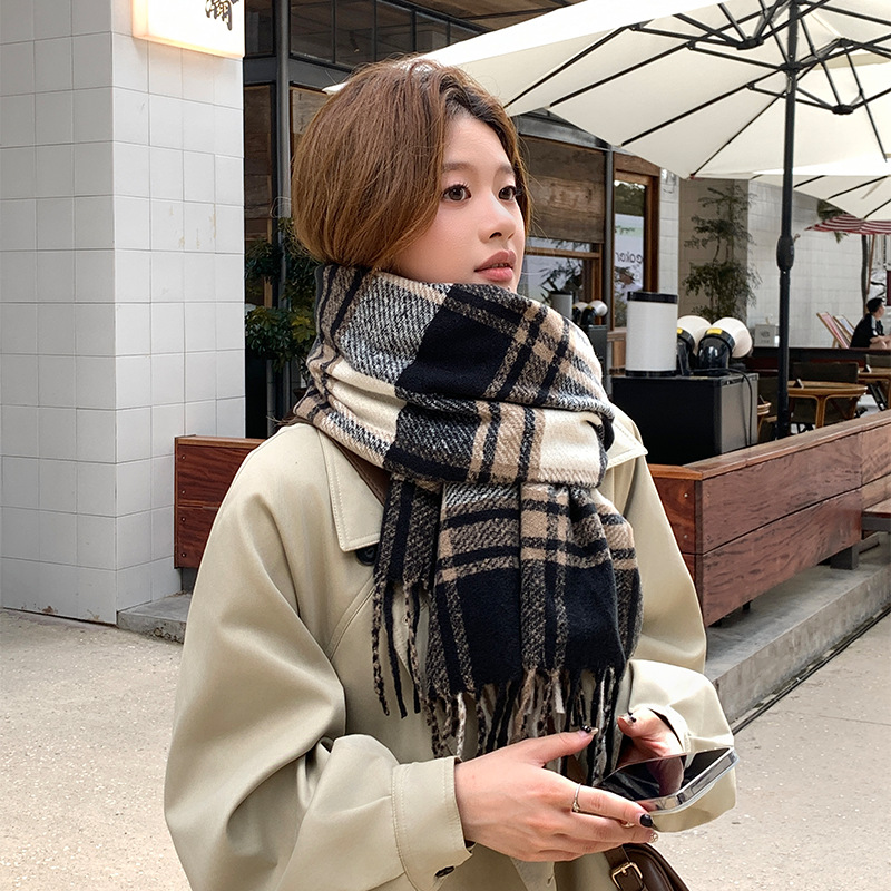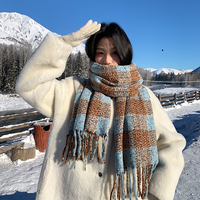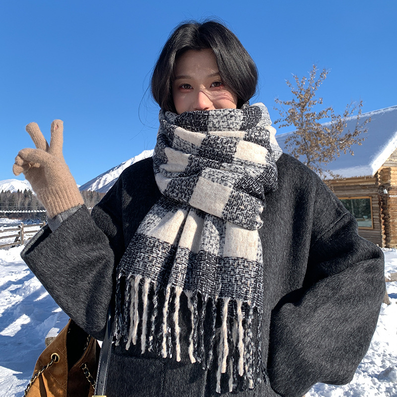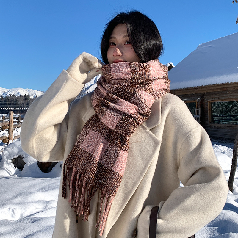 2025新款韩系仿羊绒围巾女秋冬季高级感保暖披肩可爱百搭格子围脖