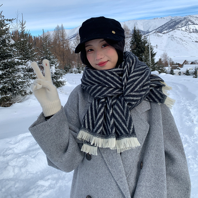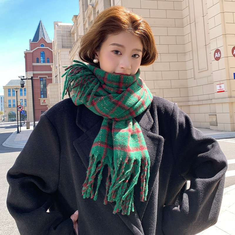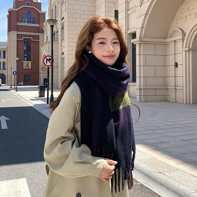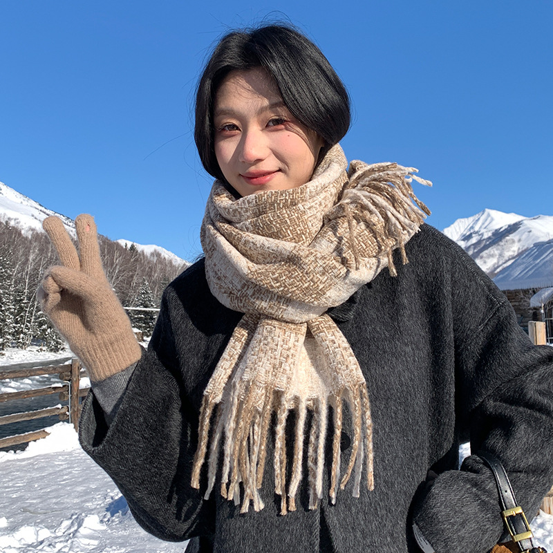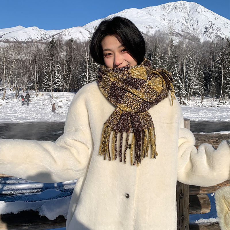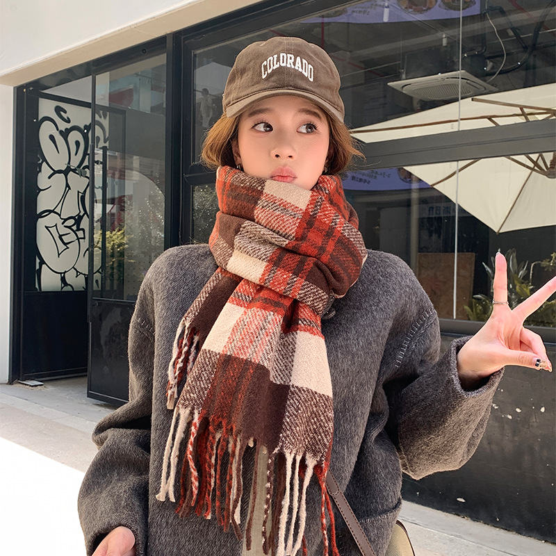 2025新款韩系仿羊绒围巾女秋冬季高级感保暖披肩可爱百搭格子围脖