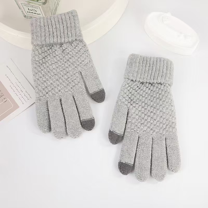 厂家批发冬季加厚加绒菠萝针织可触屏骑车防寒毛绒菠萝纹保暖手套
