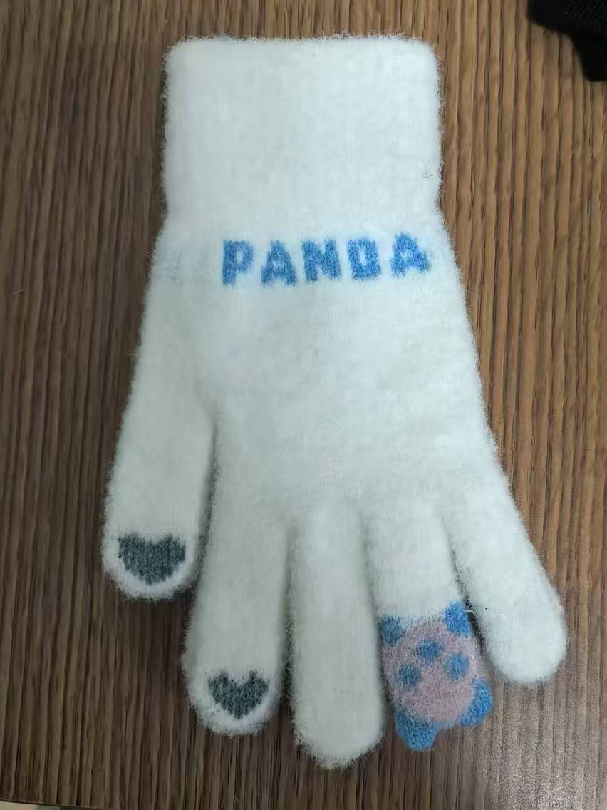 毛线触屏手套女成人骑车防寒针织熊猫分指学生触摸屏保暖ins风