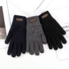 跨境触屏手套冬季骑车防寒双层加厚加绒学生保暖防冻针织成人御寒
