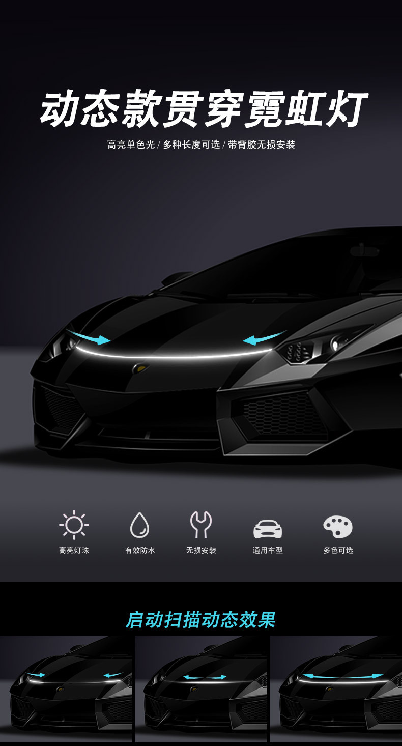 通用汽车12V前机盖贯穿灯LED启动扫描流光氛围灯带保险丝贯穿灯带
