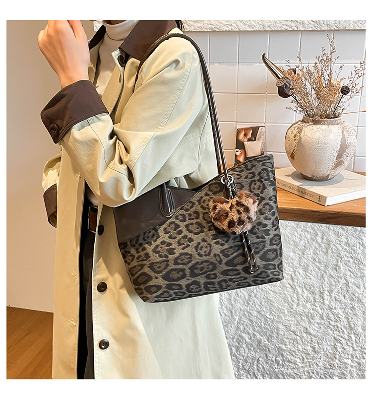 百搭气质包包2025冬季新款通勤大容量单肩包高级感豹纹时尚腋下包