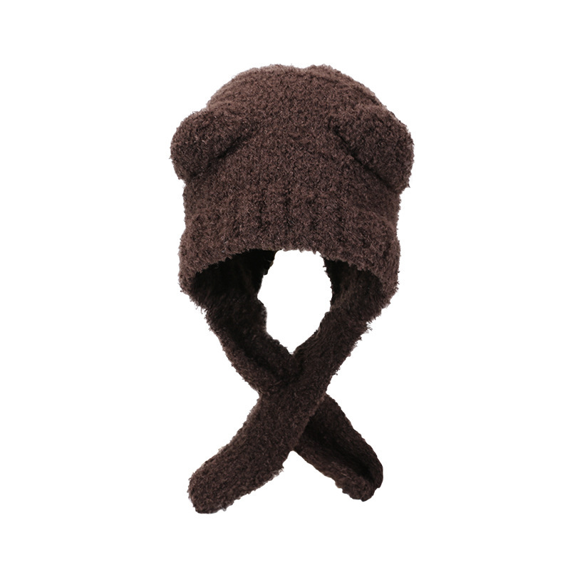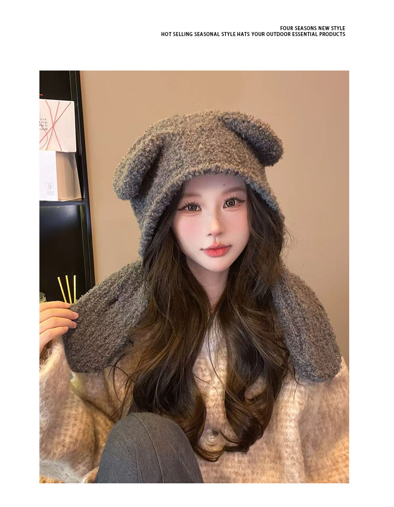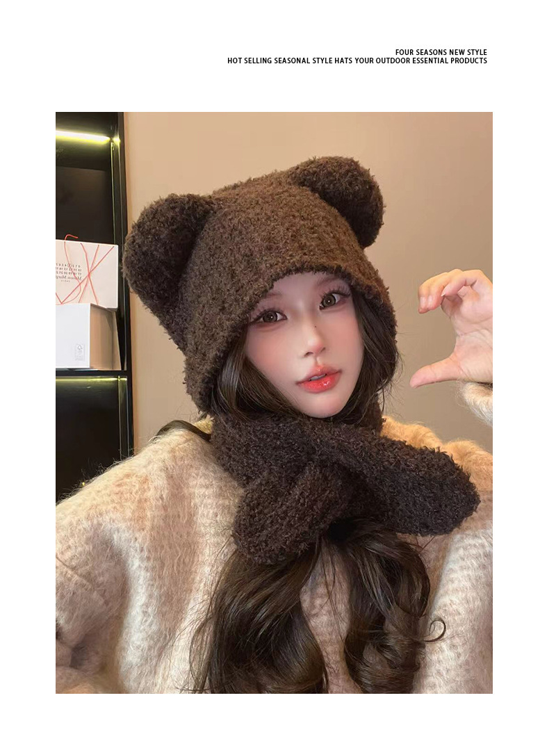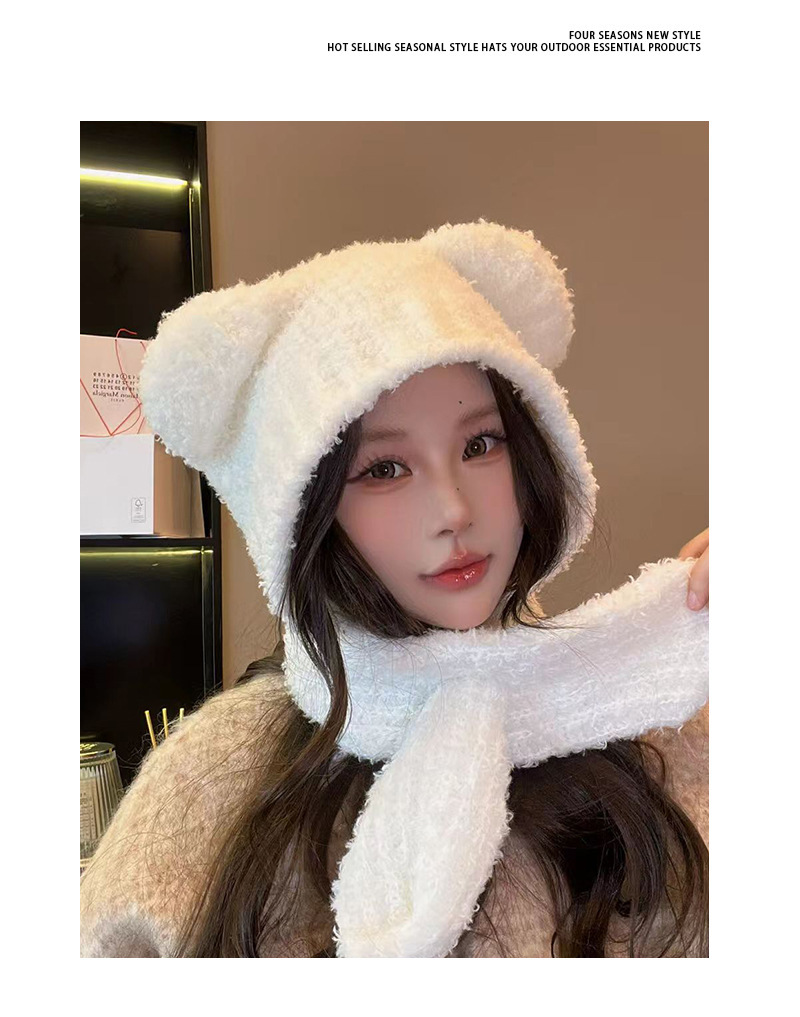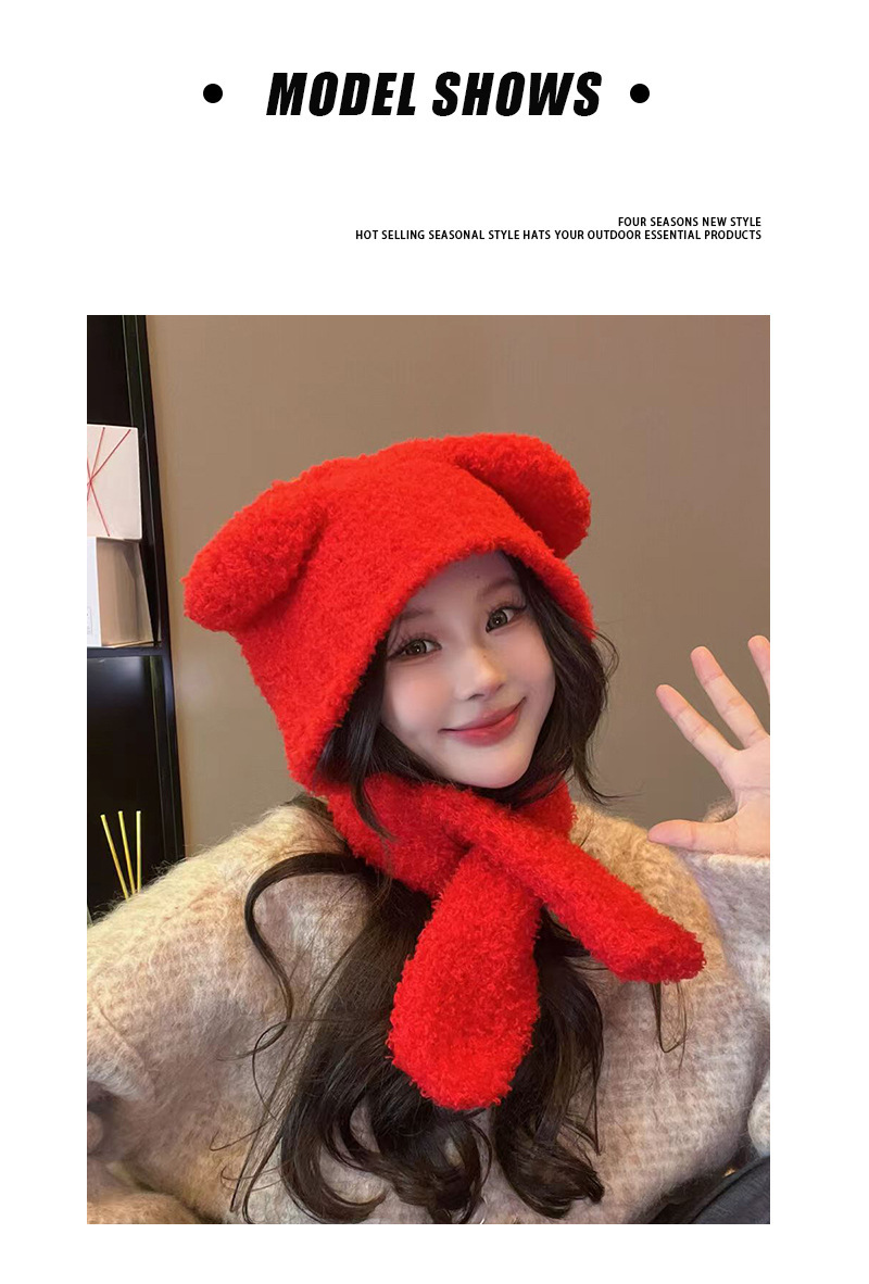24年升级版百搭小熊保暖帽子围脖一体女加厚护耳帽秋冬针织雷锋帽