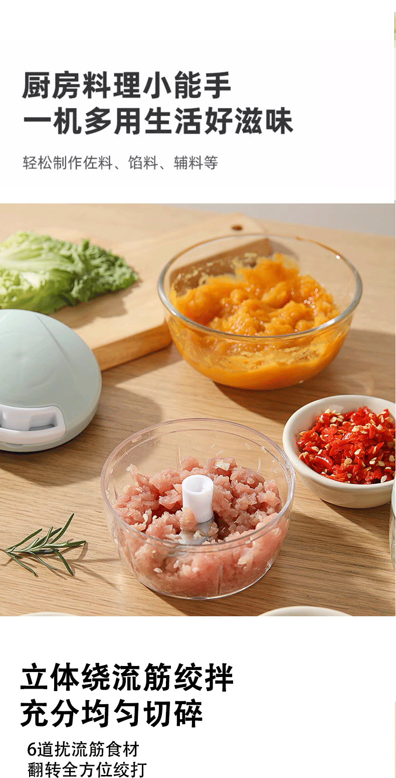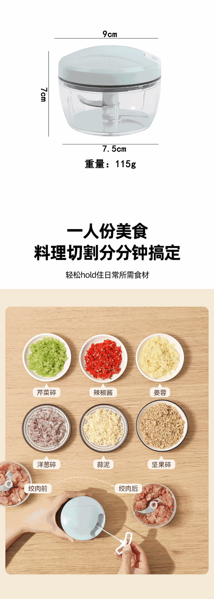 蒜泥捣蒜器 手拉式绞肉机 多功能切菜器 手动厨房饺子馅碎肉机