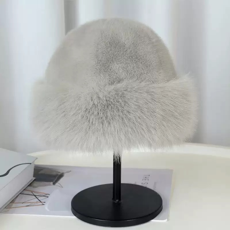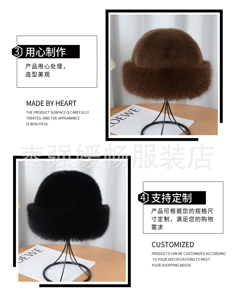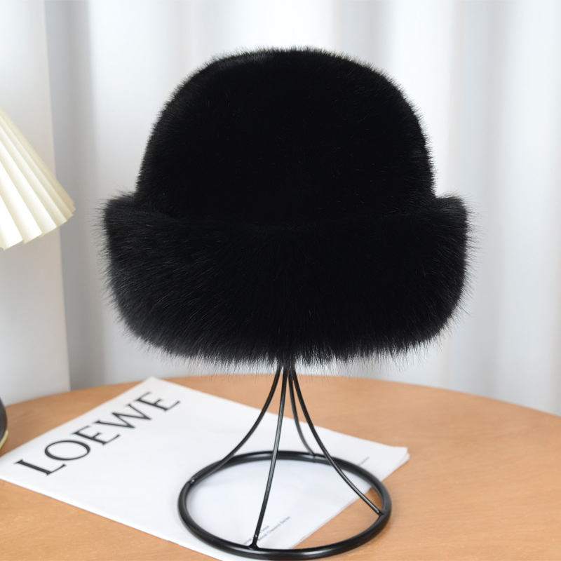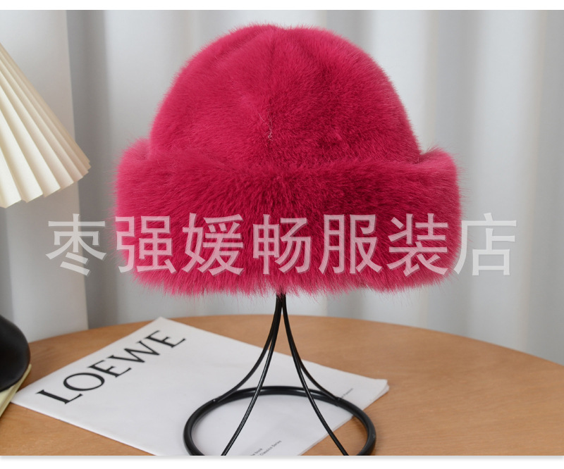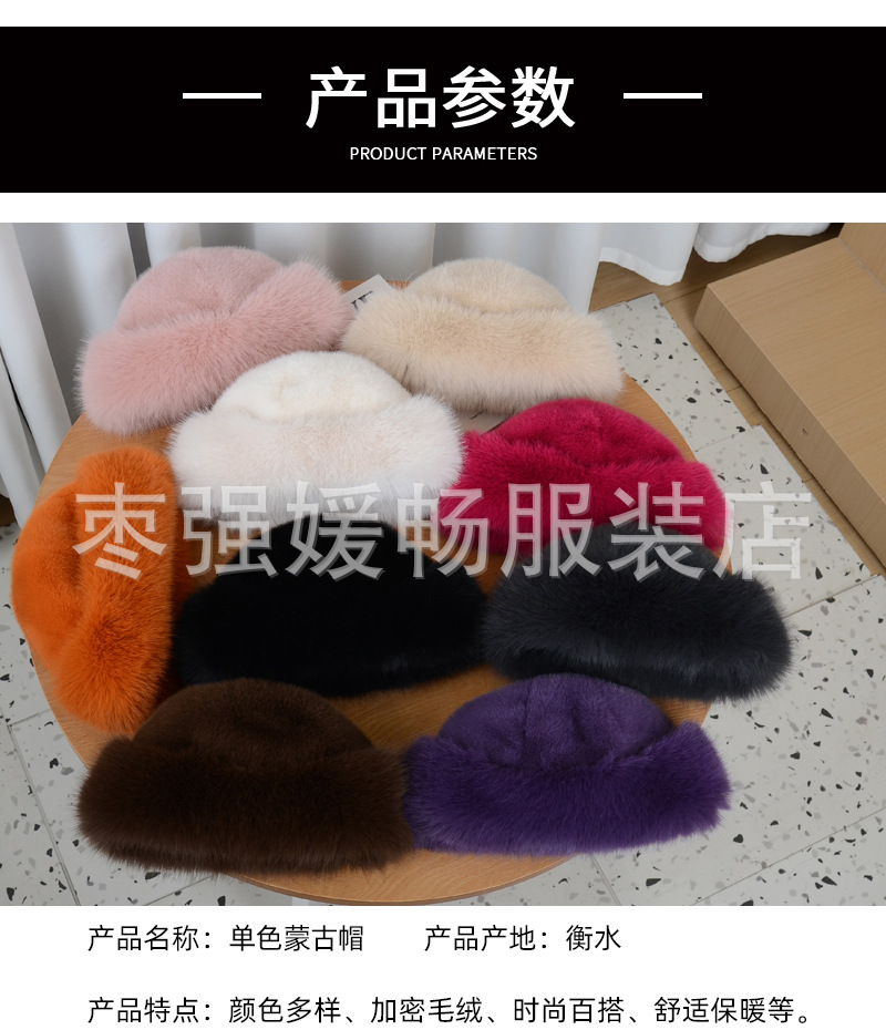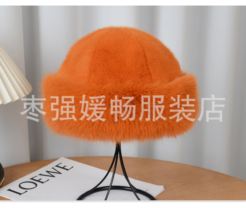 跨境批发秋冬新款大头围毛绒渔夫帽保暖仿皮草时尚盆帽圆顶蒙古帽