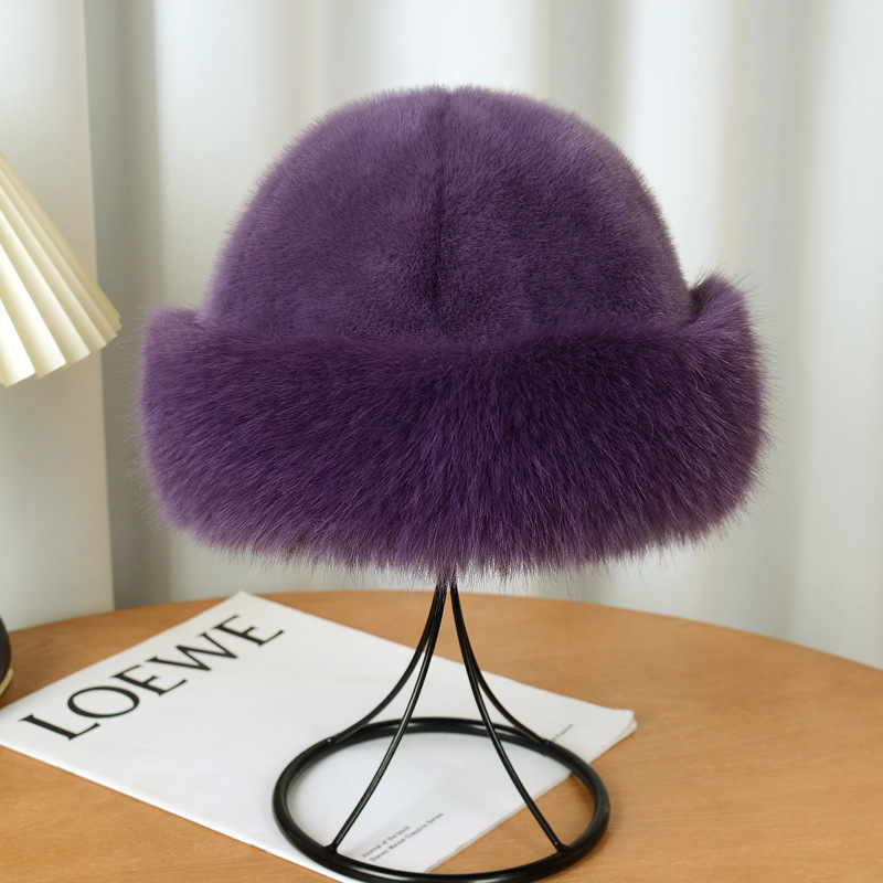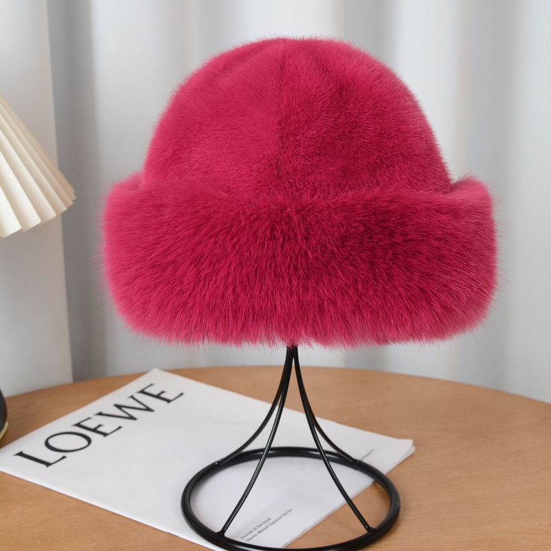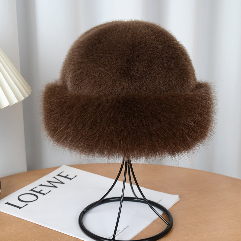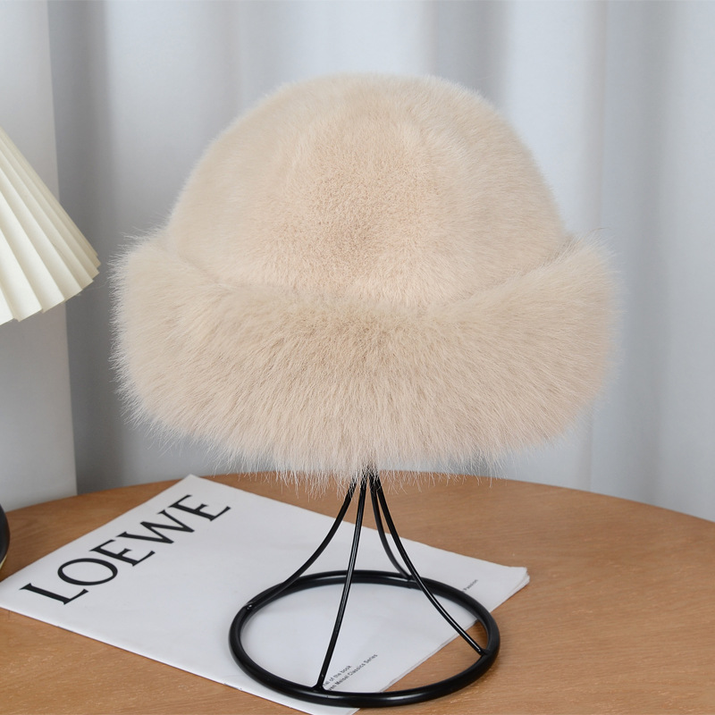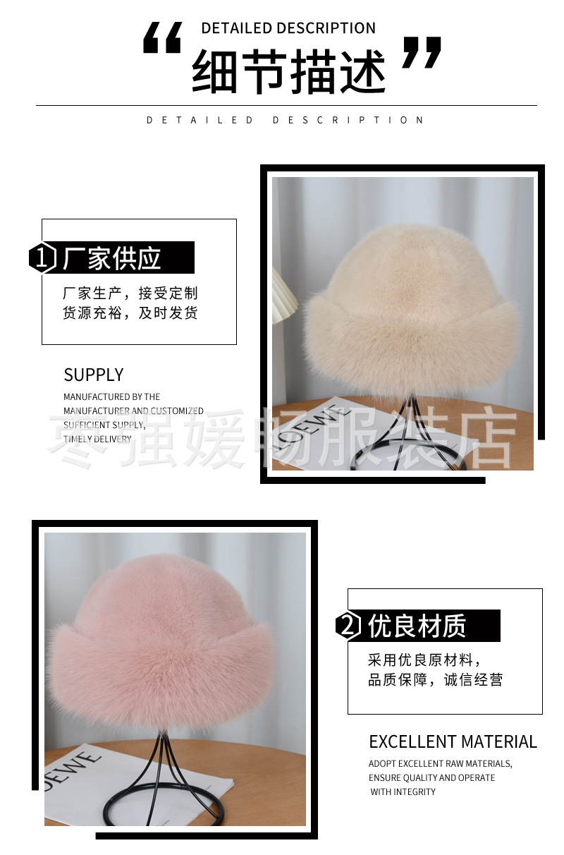 跨境批发秋冬新款大头围毛绒渔夫帽保暖仿皮草时尚盆帽圆顶蒙古帽