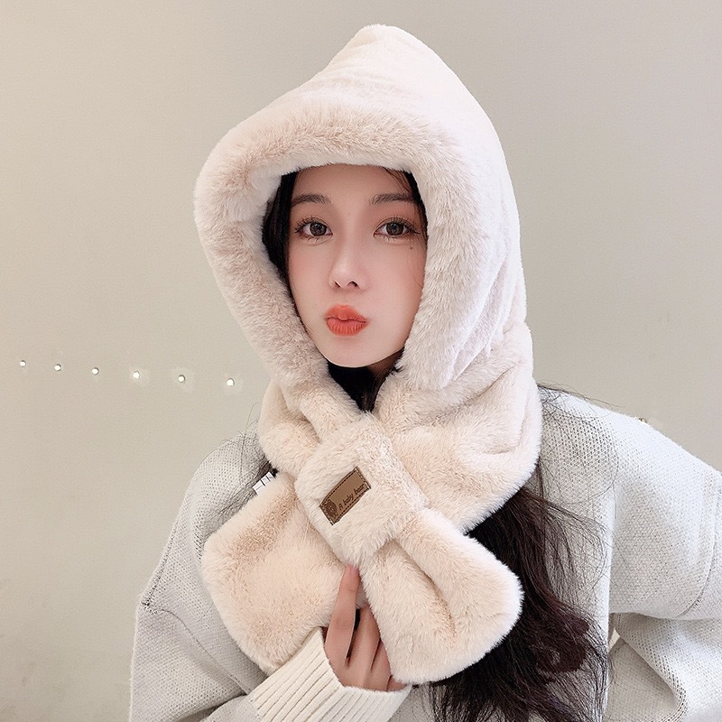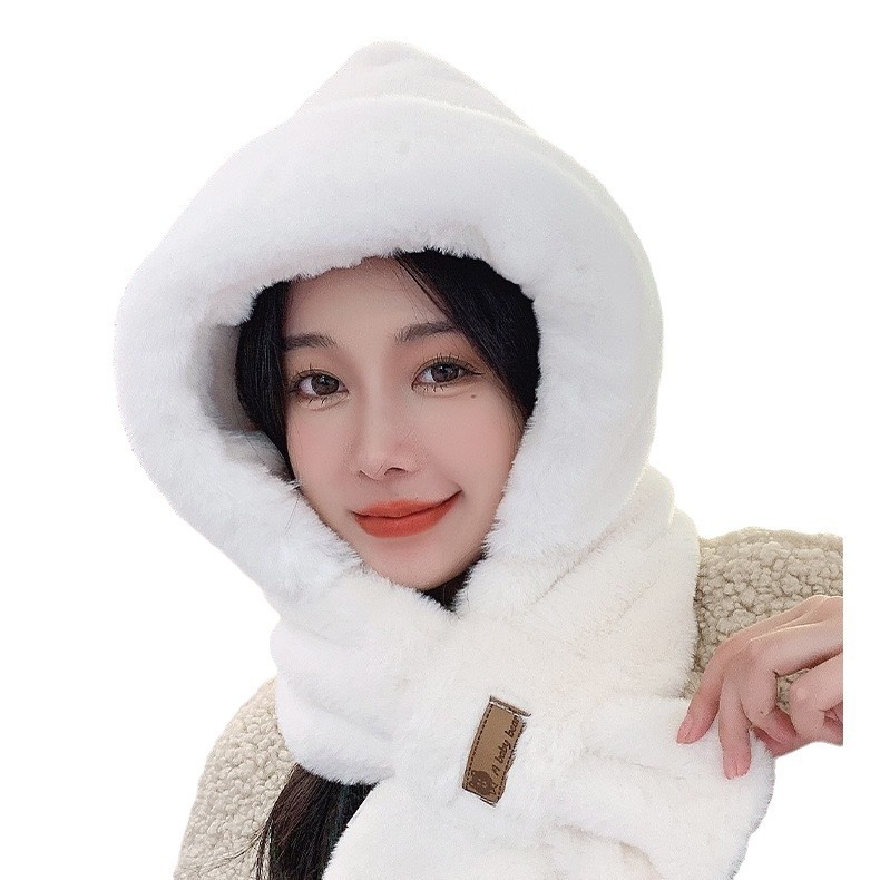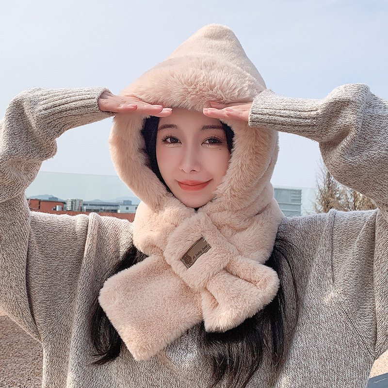 小熊帽子毛绒围巾女冬季可爱冬天围脖二件套连帽一体护耳帽保暖潮