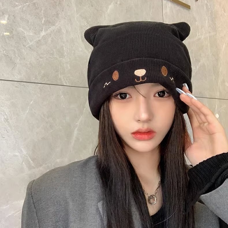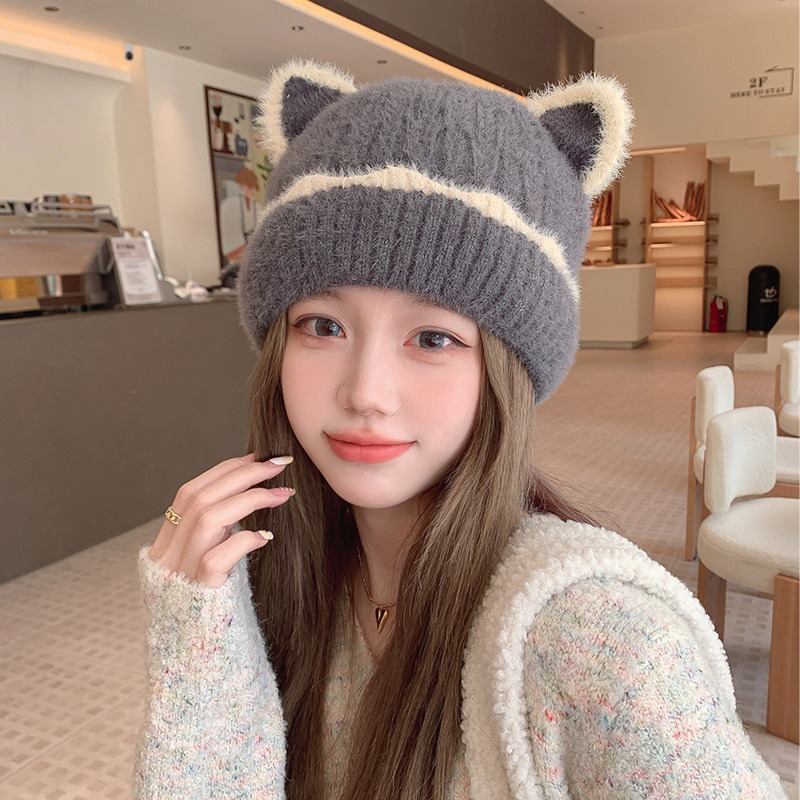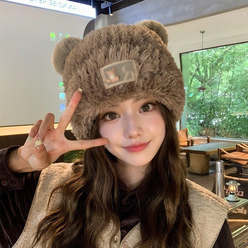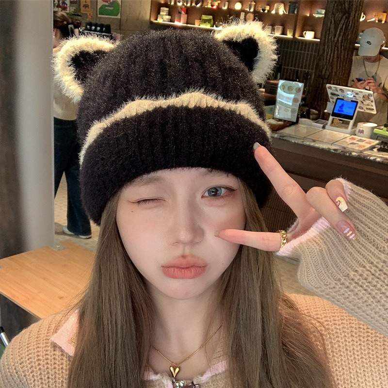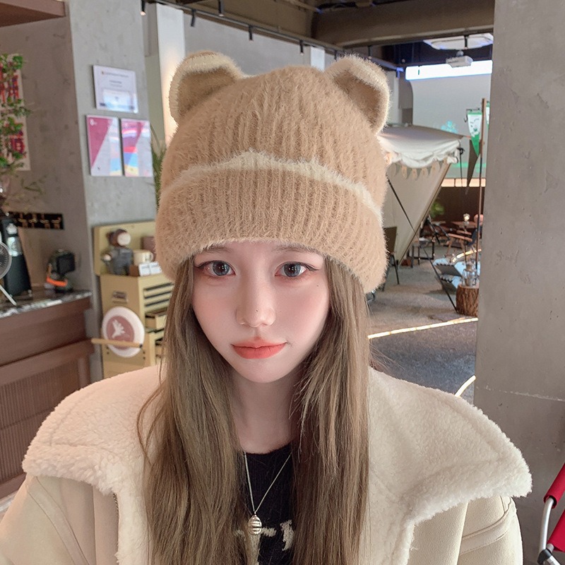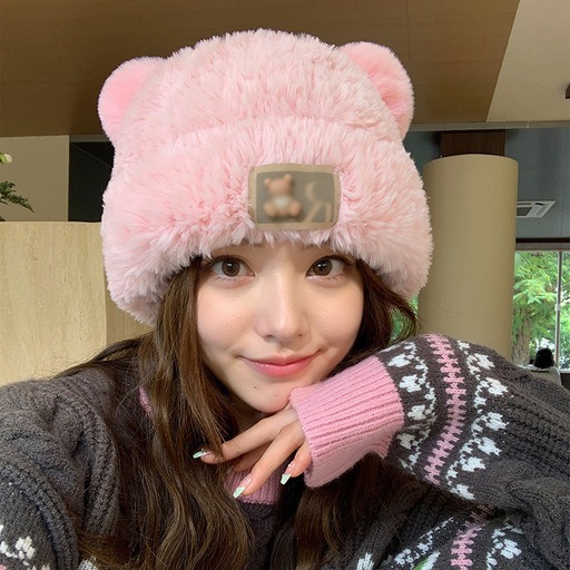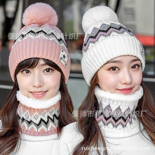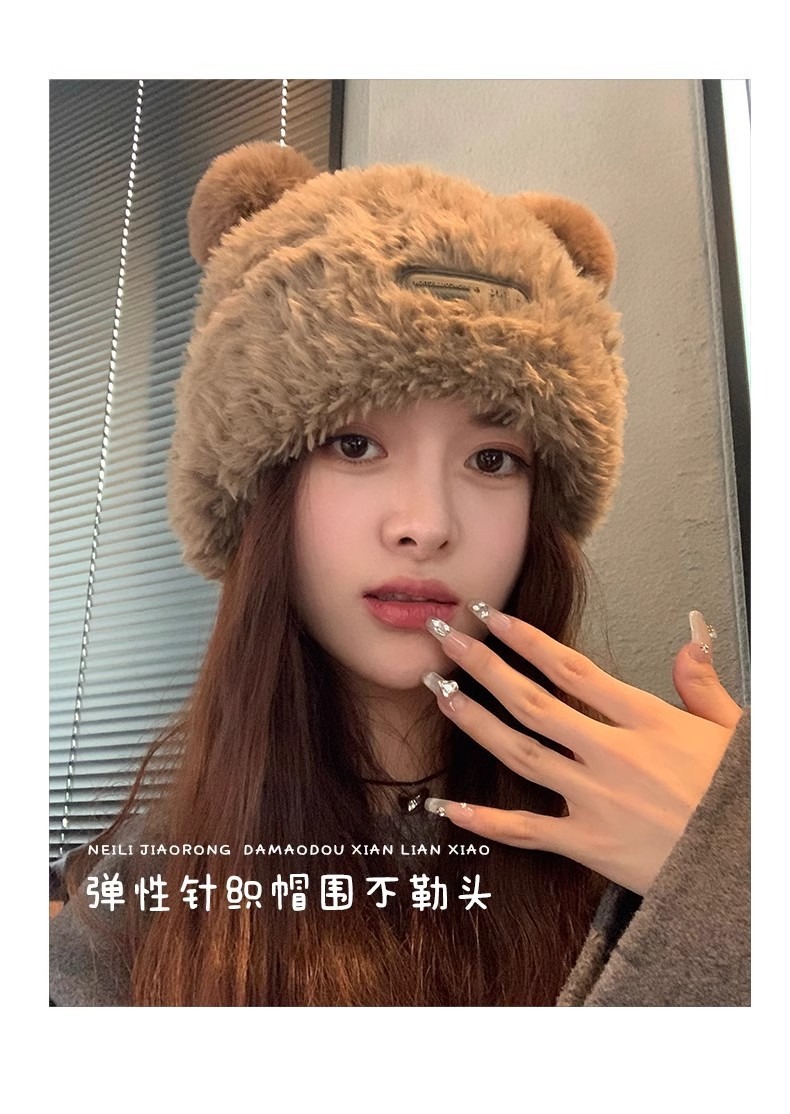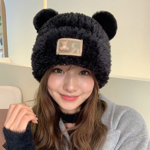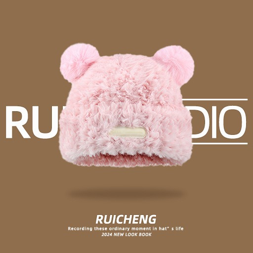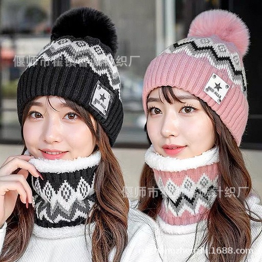 针织帽毛线帽骑行保暖加绒加厚毛绒帽子防风帽子女款户外秋冬帽子