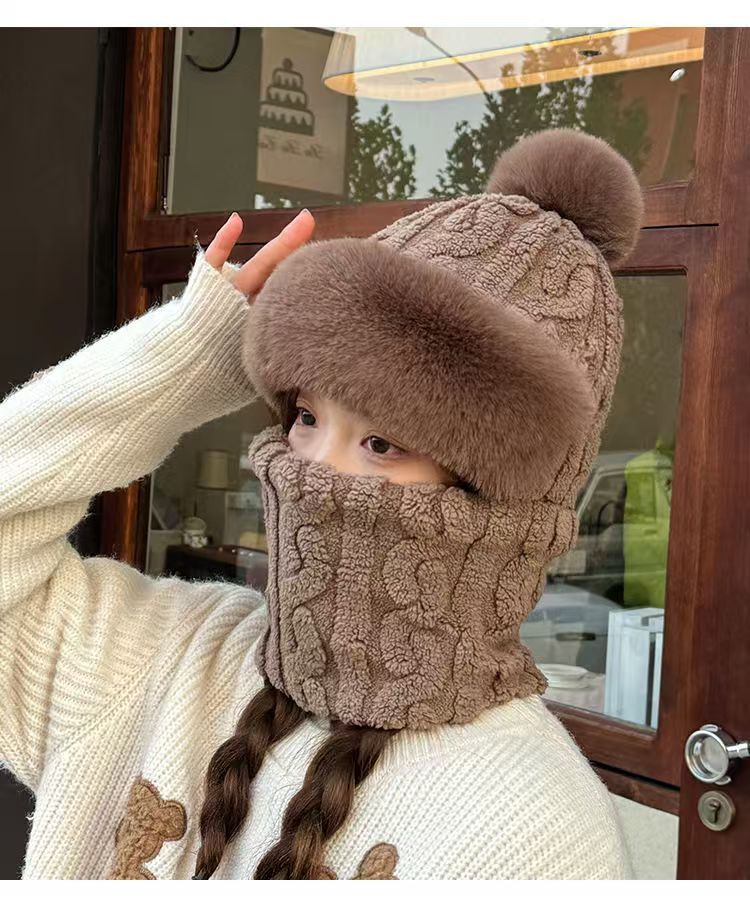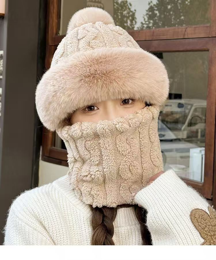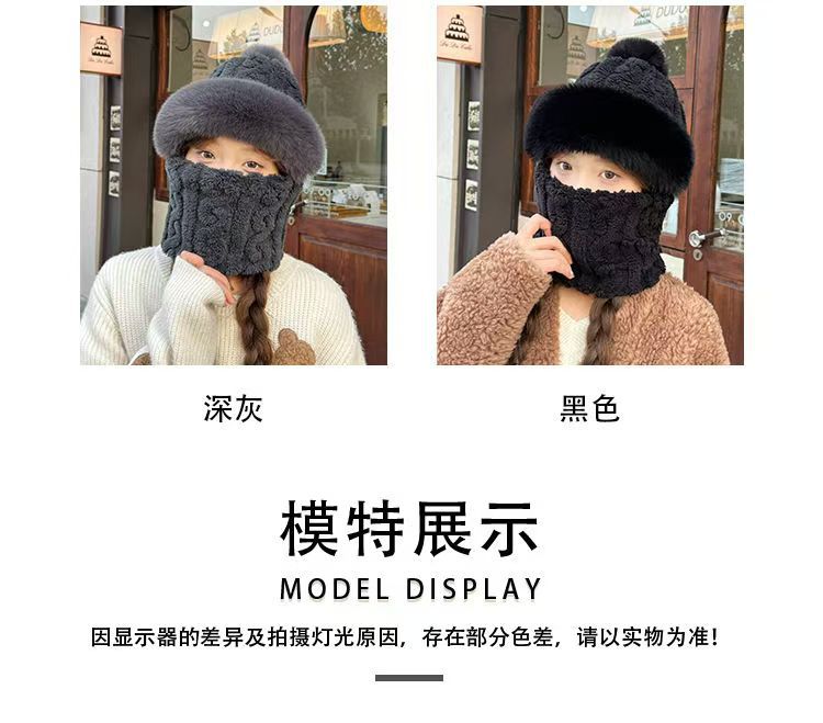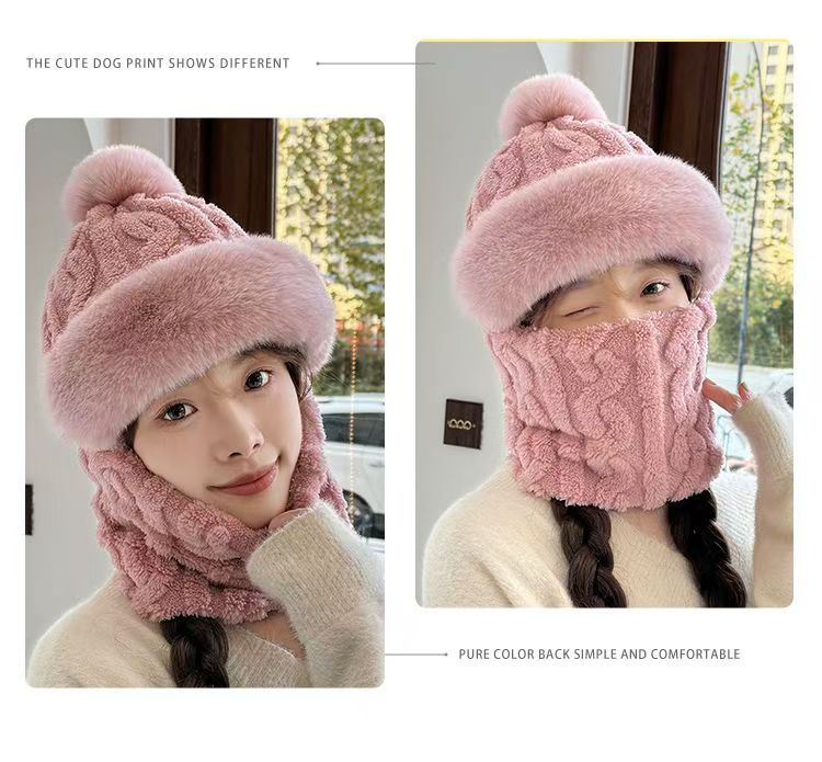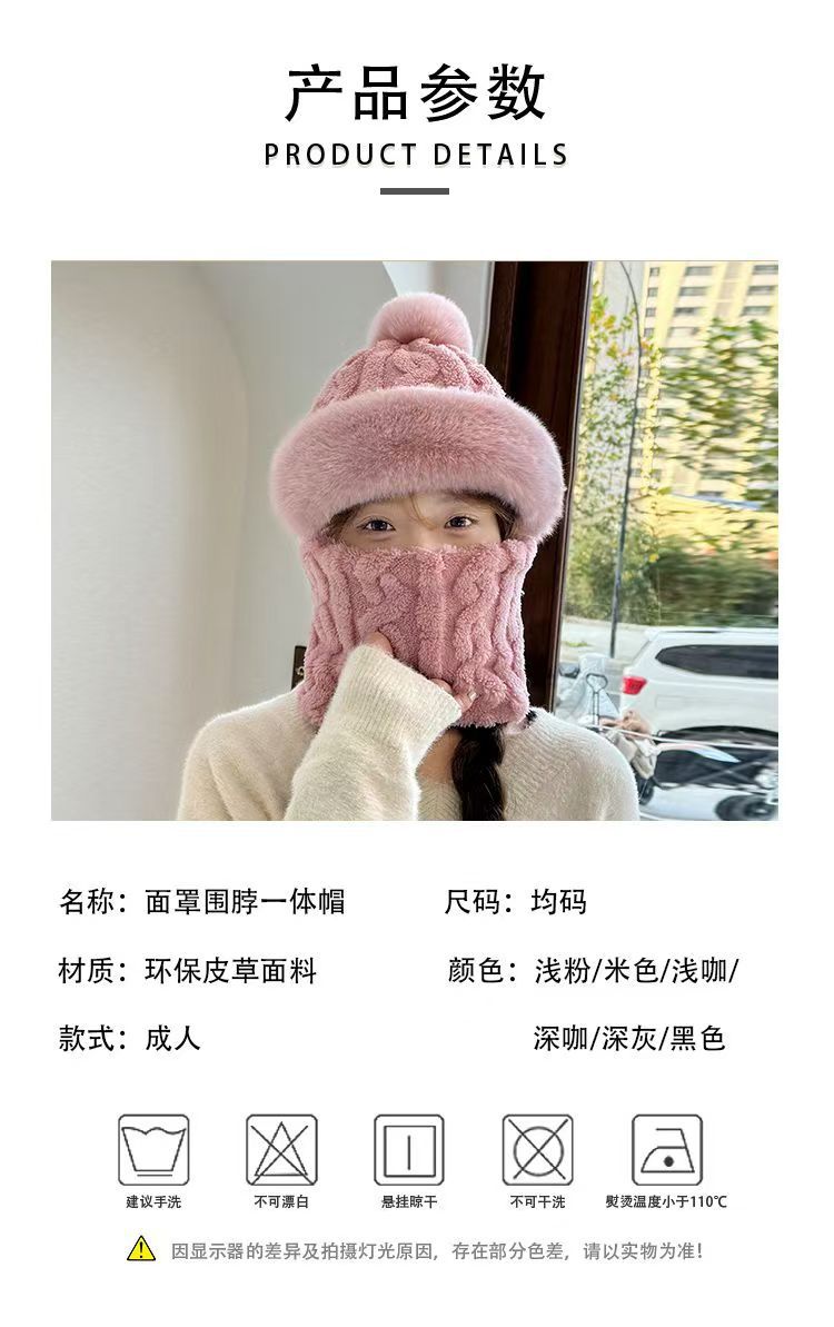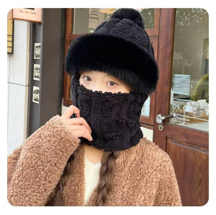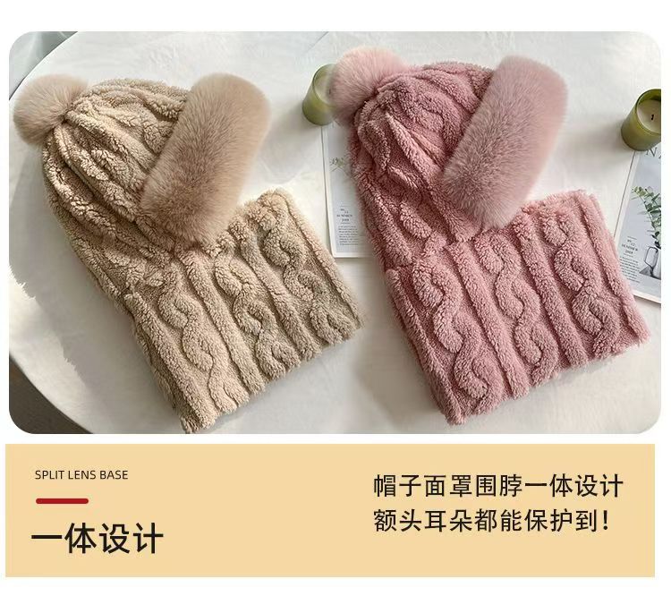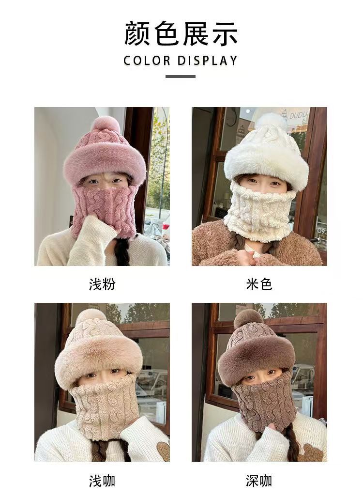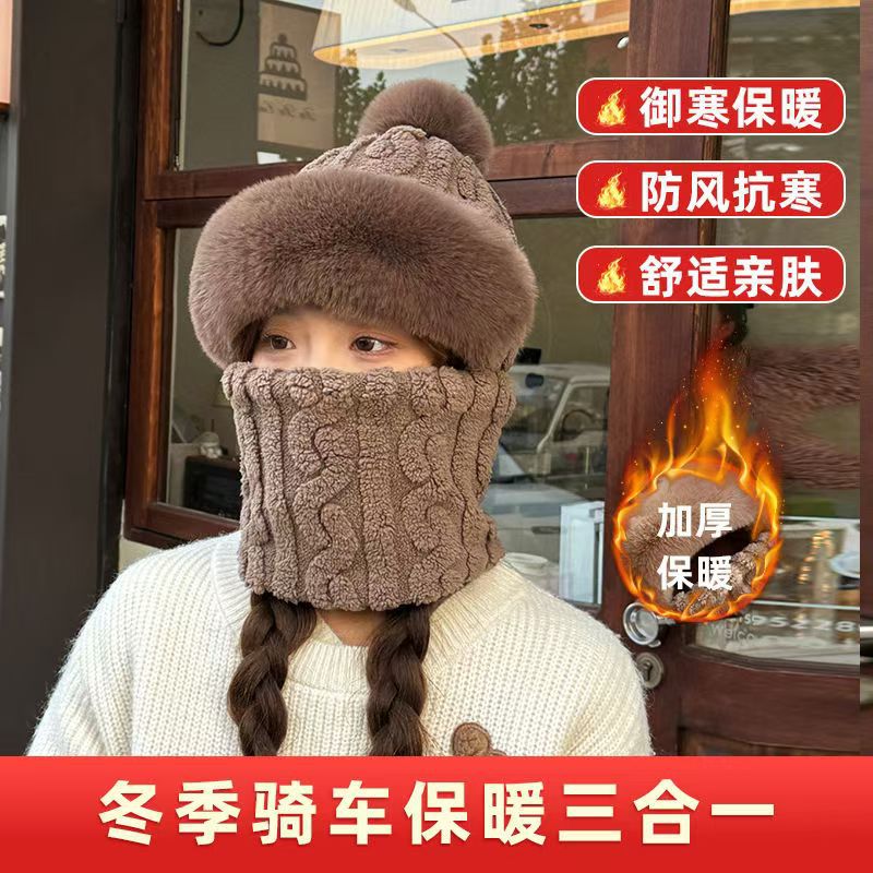 帽子围脖一体女冬2025新款加绒加厚骑车防风防寒电动车保暖套头帽
