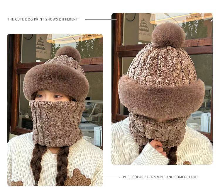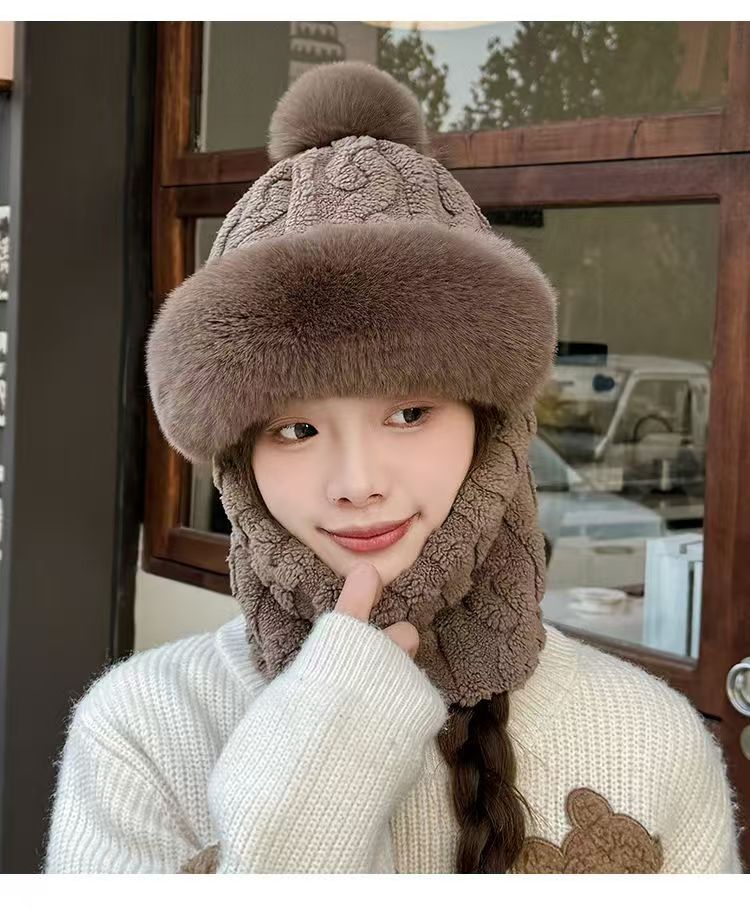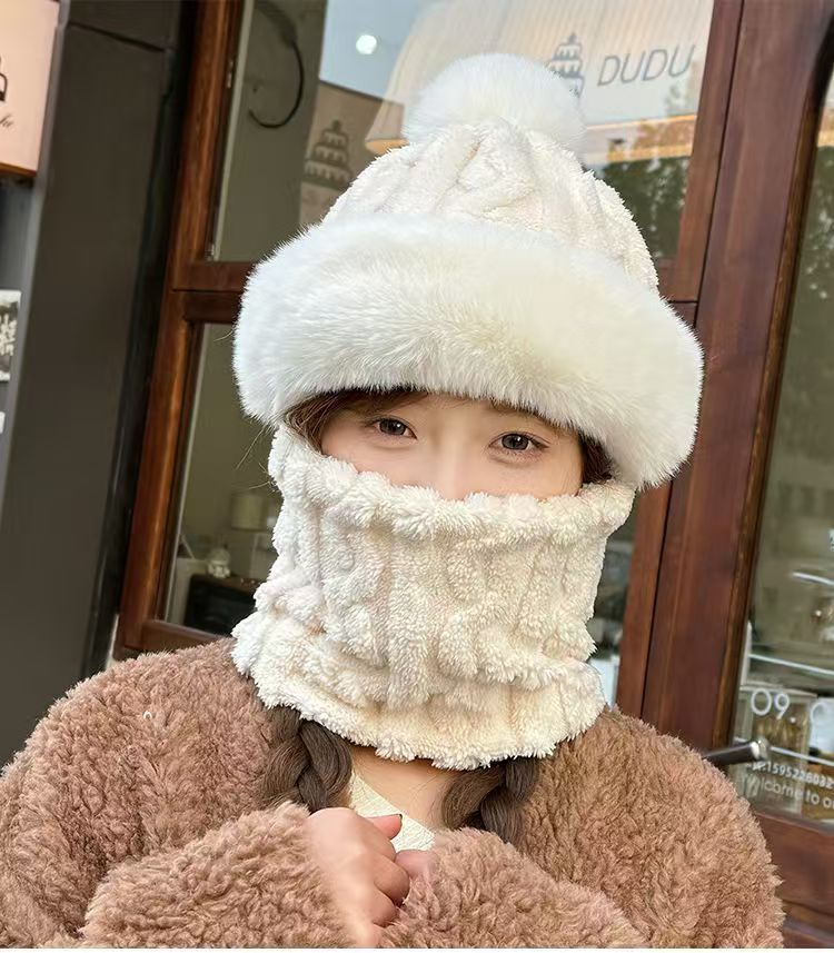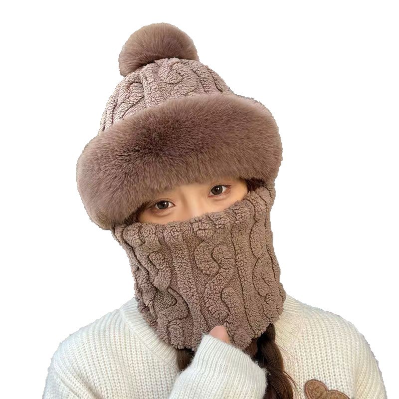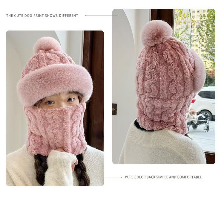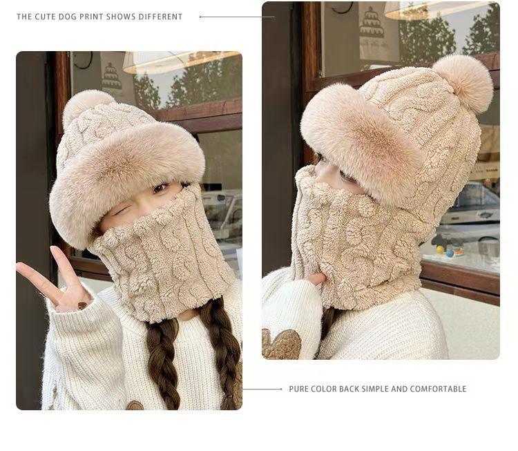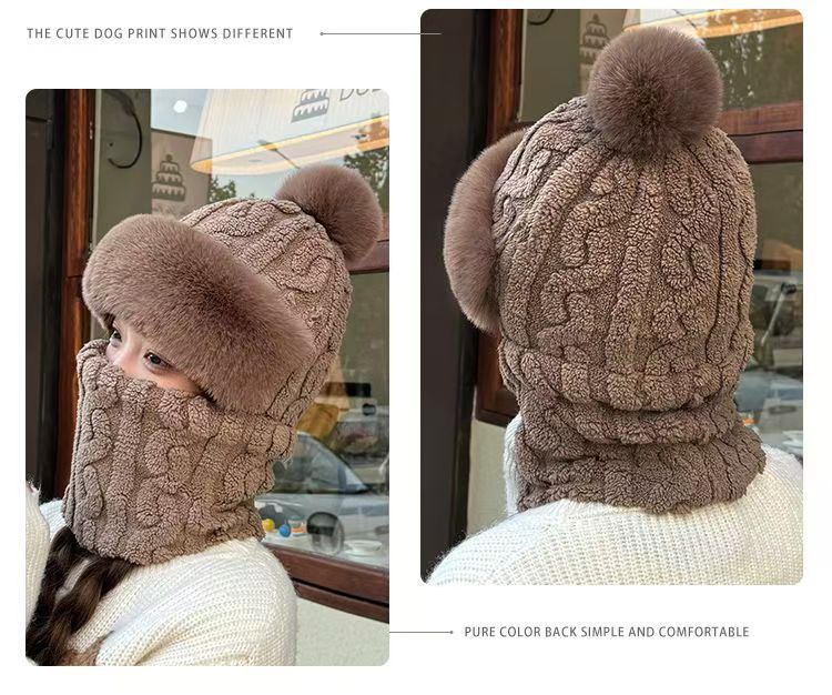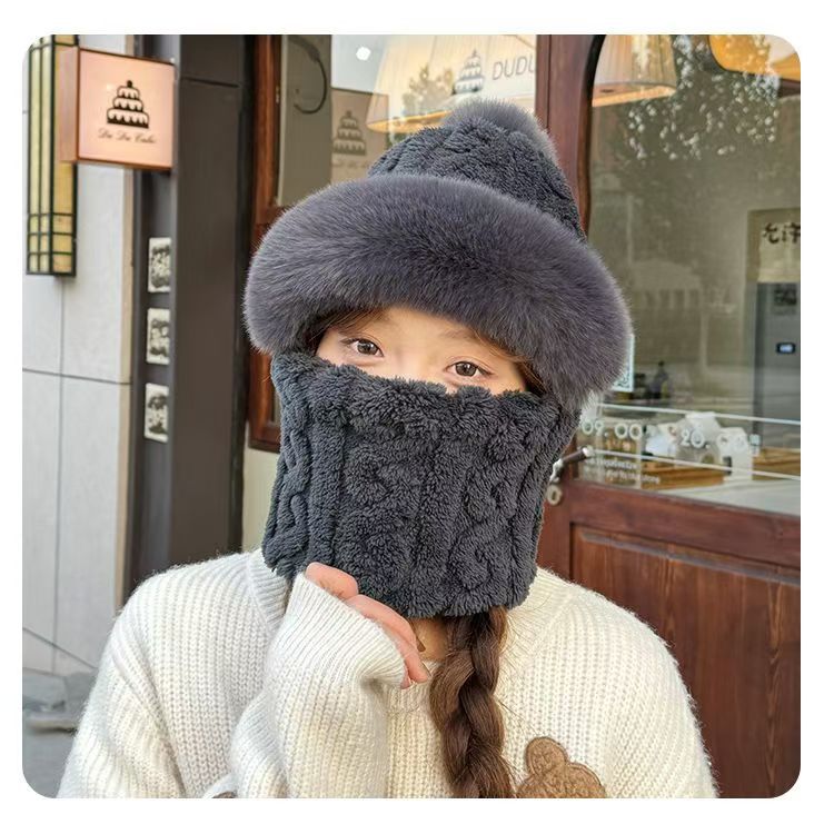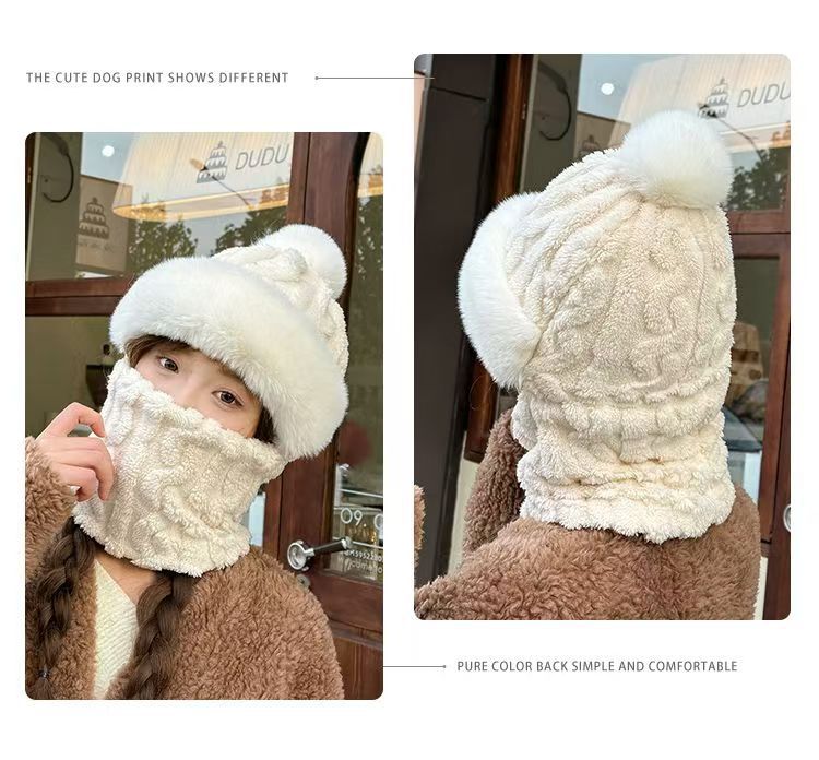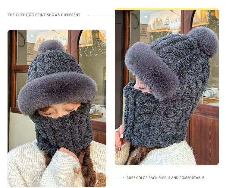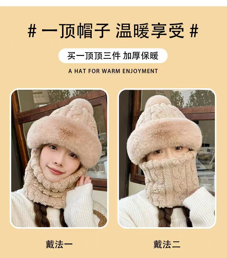 帽子围脖一体女冬2025新款加绒加厚骑车防风防寒电动车保暖套头帽