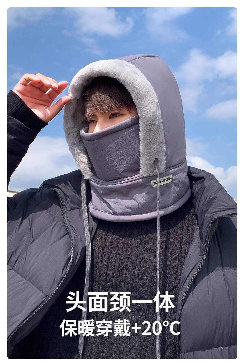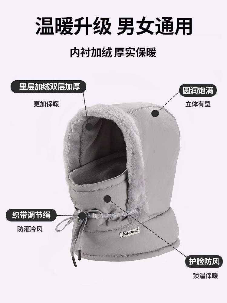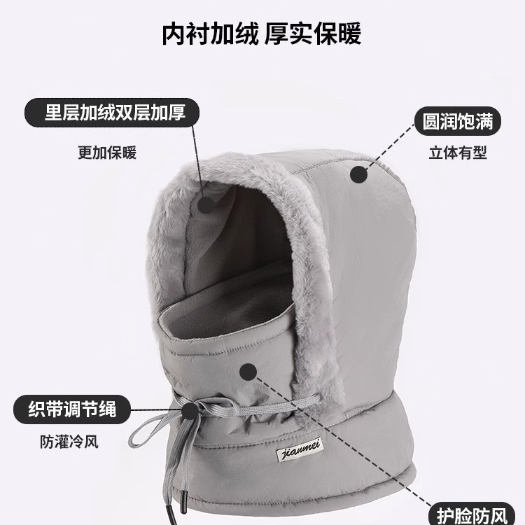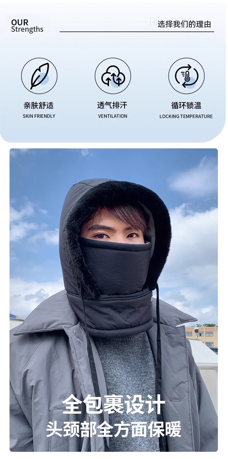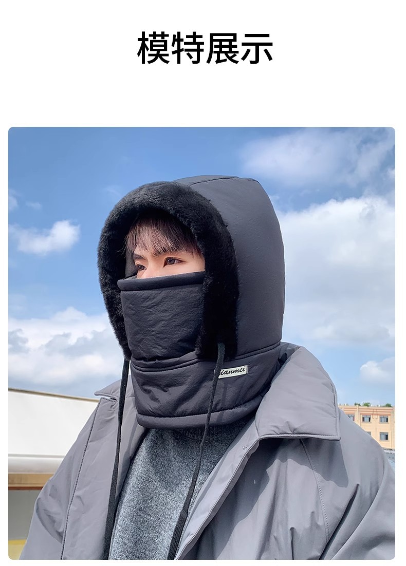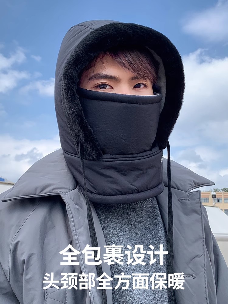 冬季面罩围脖一体帽子加绒保暖护耳滑雪帽户外骑车防风遮脸雷锋帽