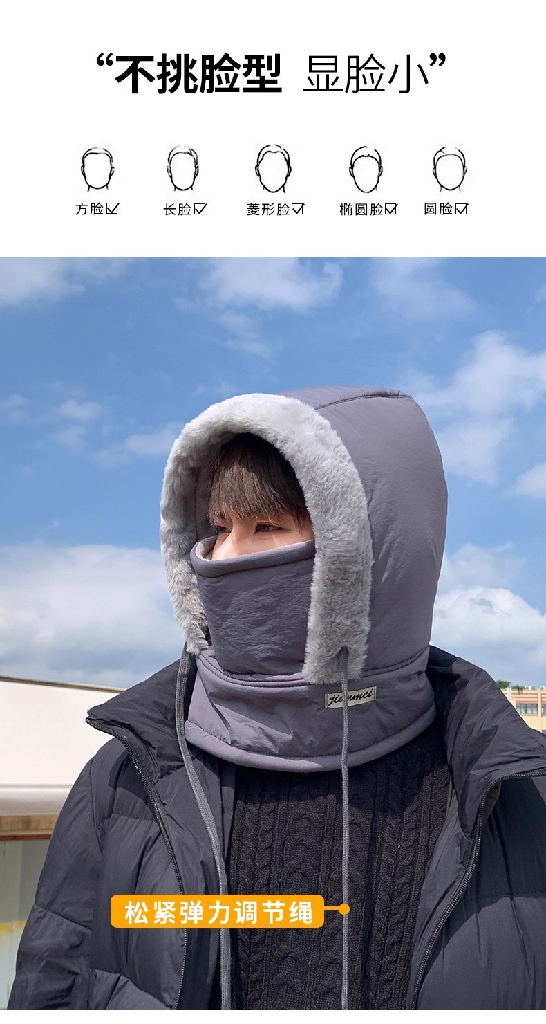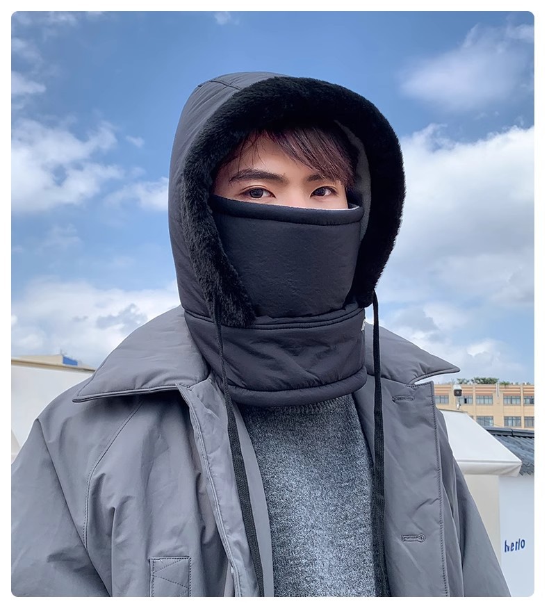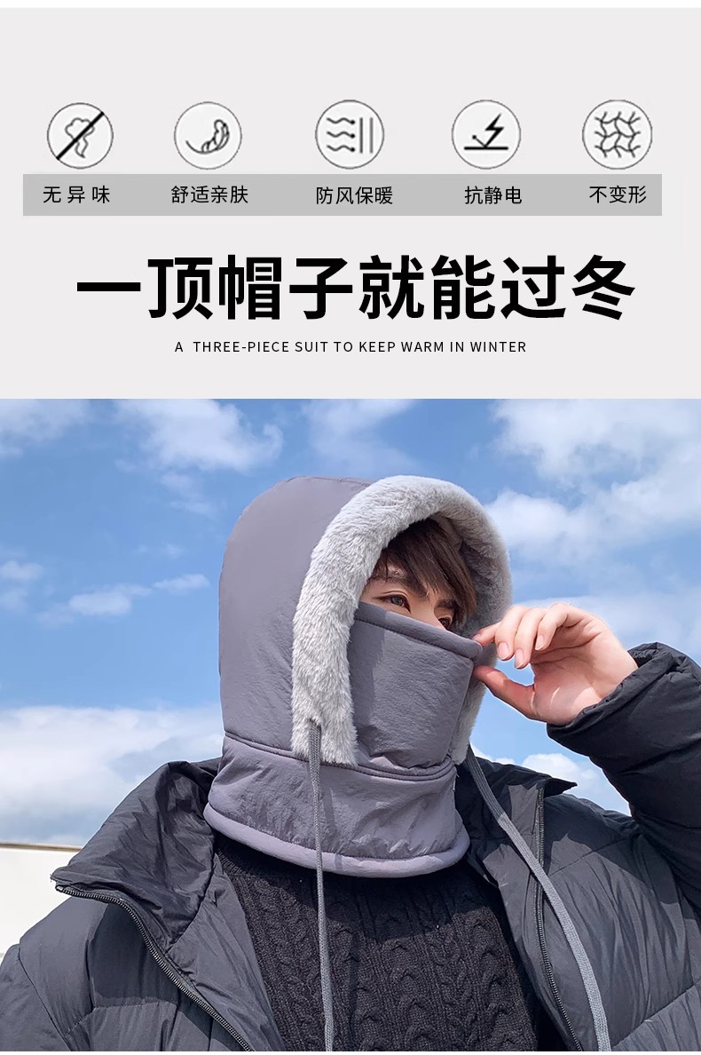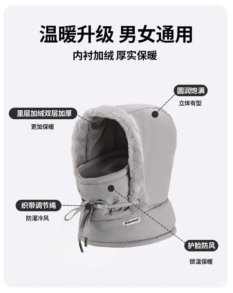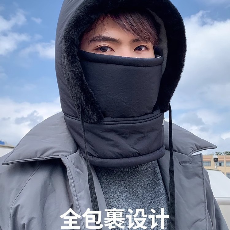冬季面罩围脖一体帽子加绒保暖护耳滑雪帽户外骑车防风遮脸雷锋帽