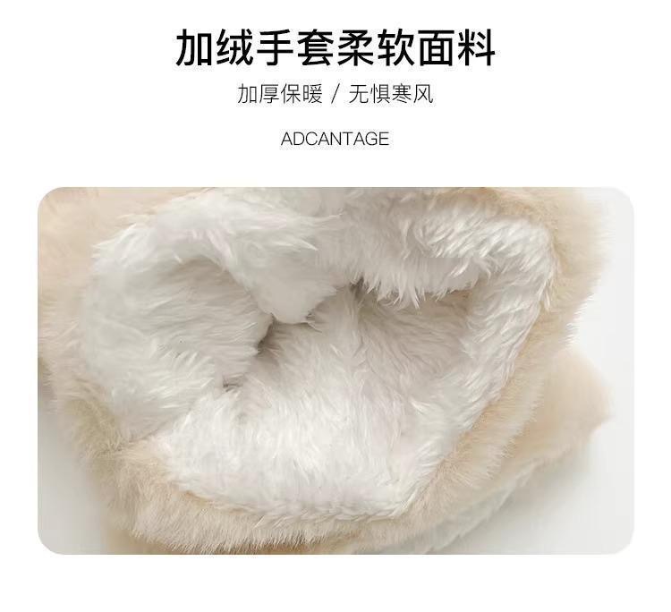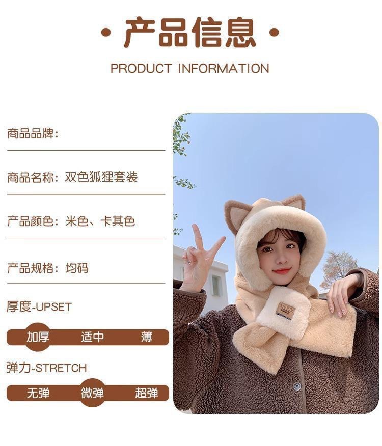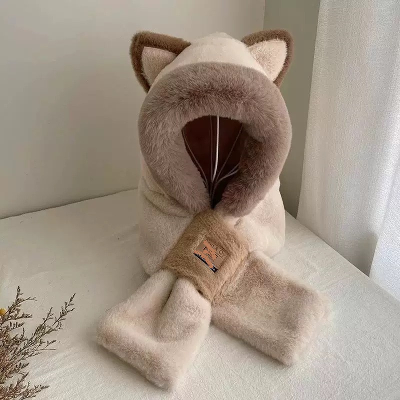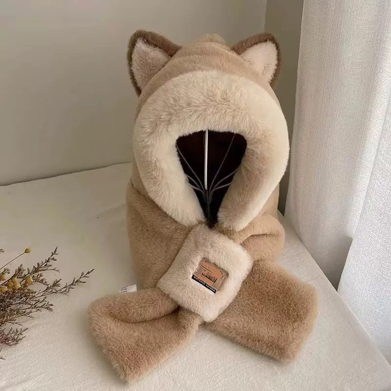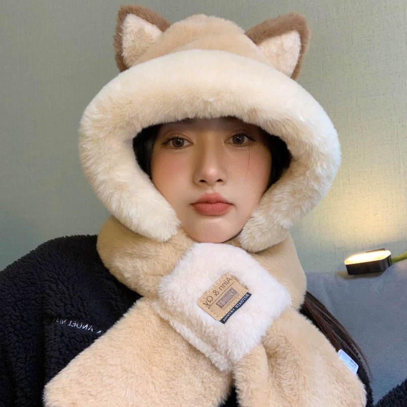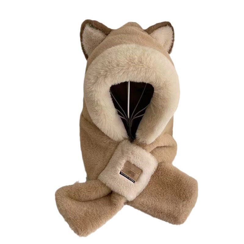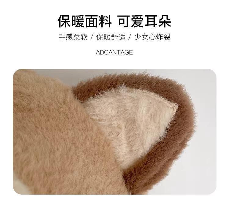 帽子围巾一体女冬季2024新款兔毛绒可爱小熊围脖骑车保暖套头帽子