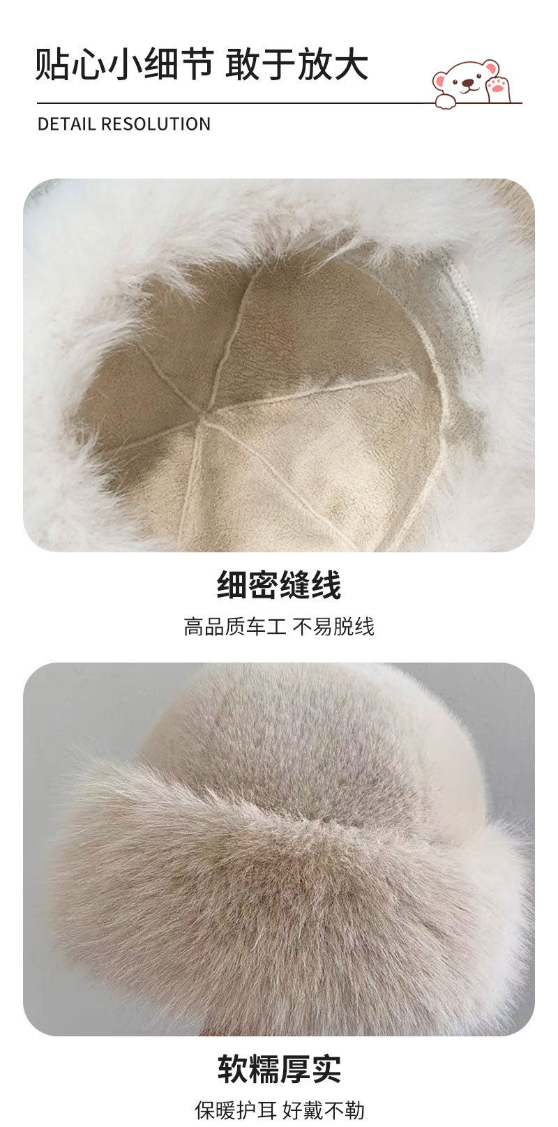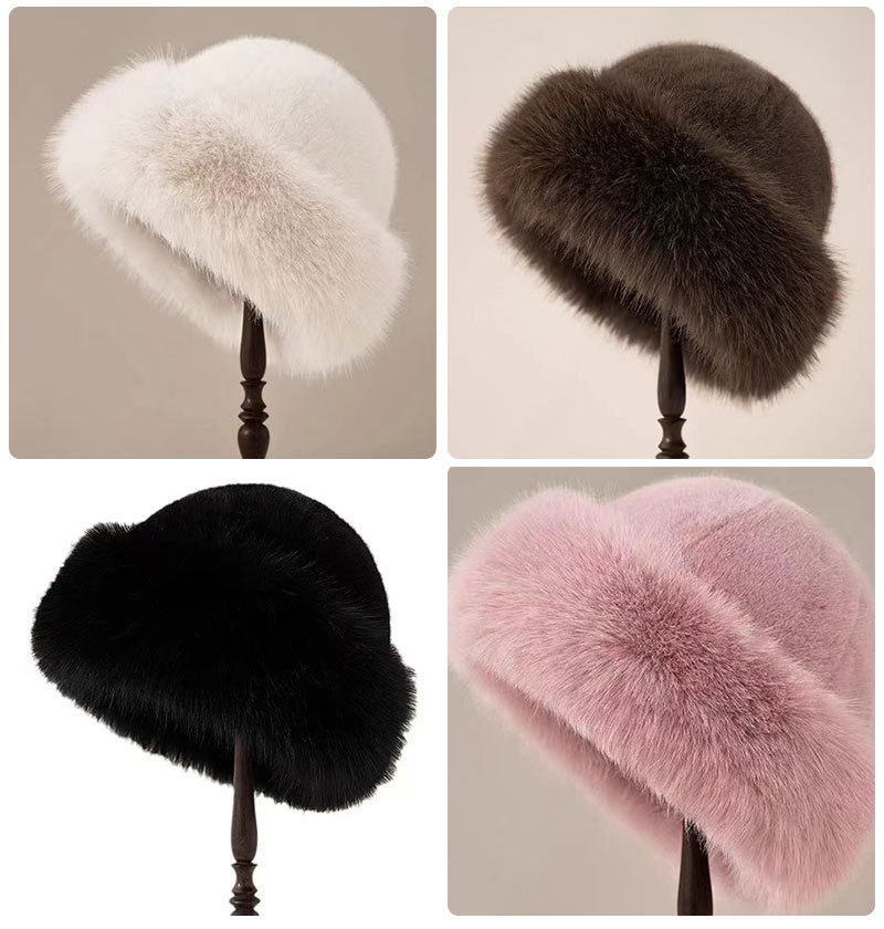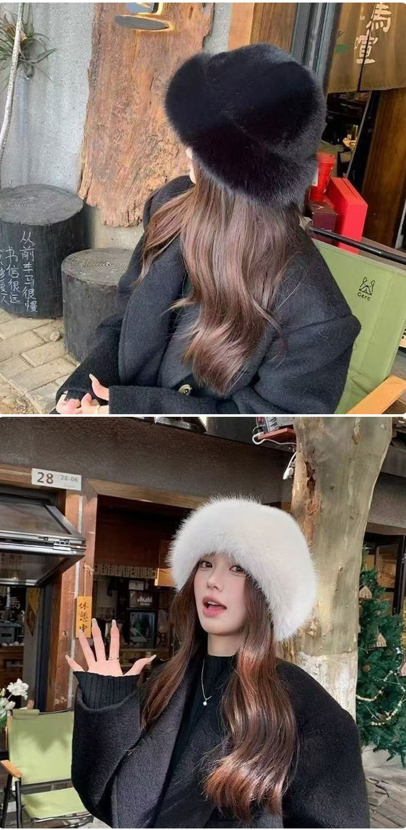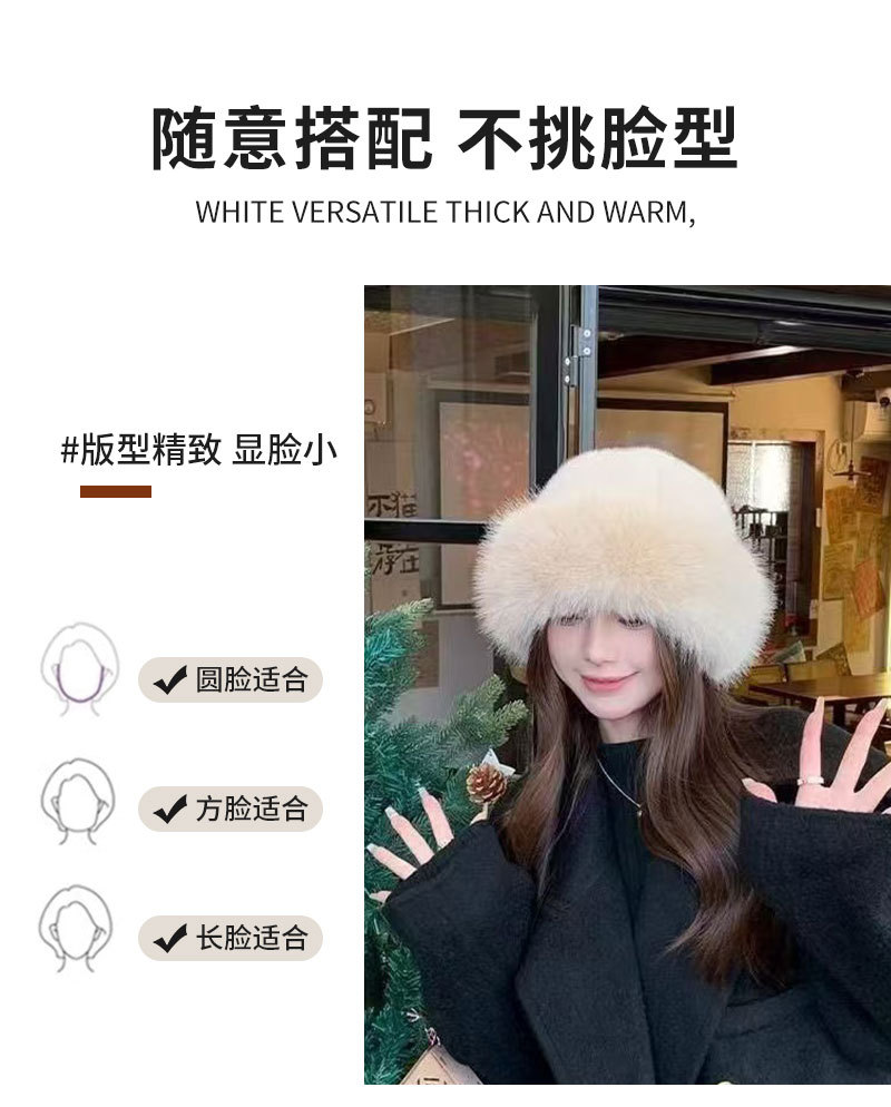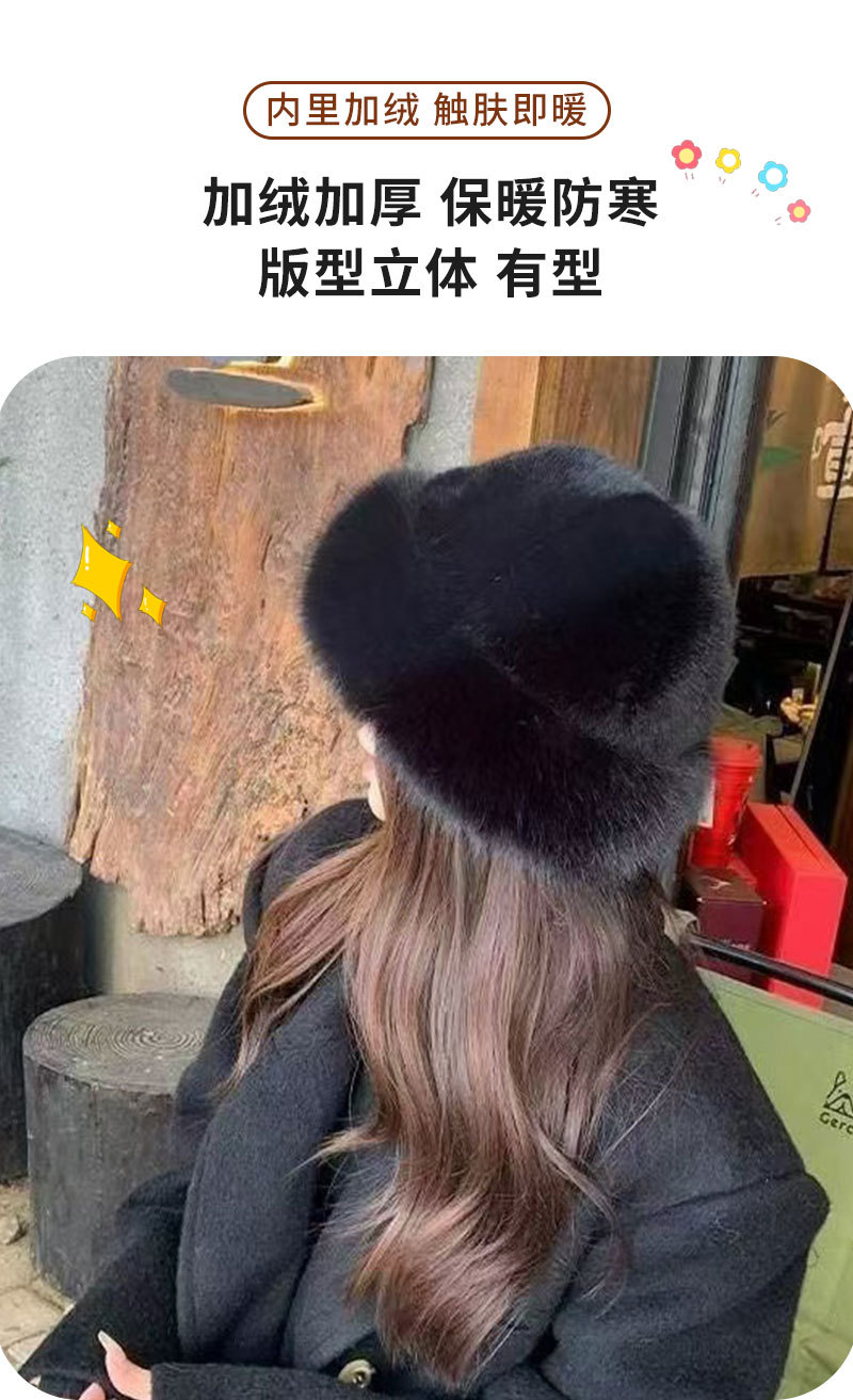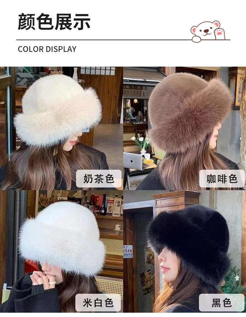 毛绒大帽檐蒙古帽子女士秋冬防寒白色保暖东北盆帽狐狸毛渔夫帽