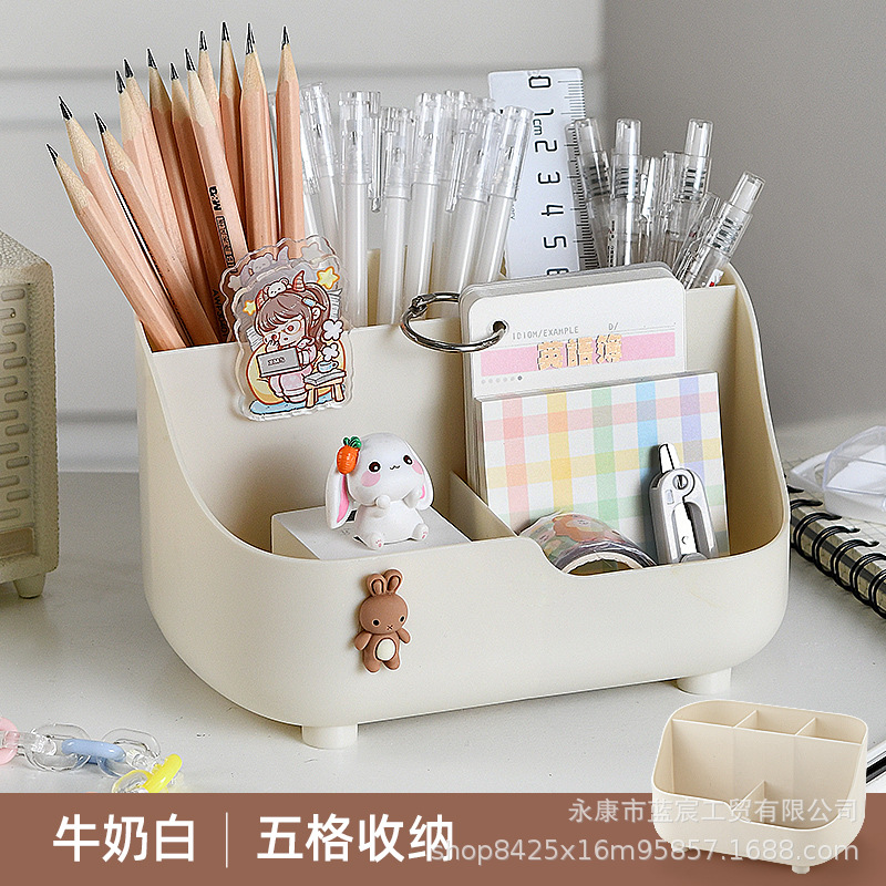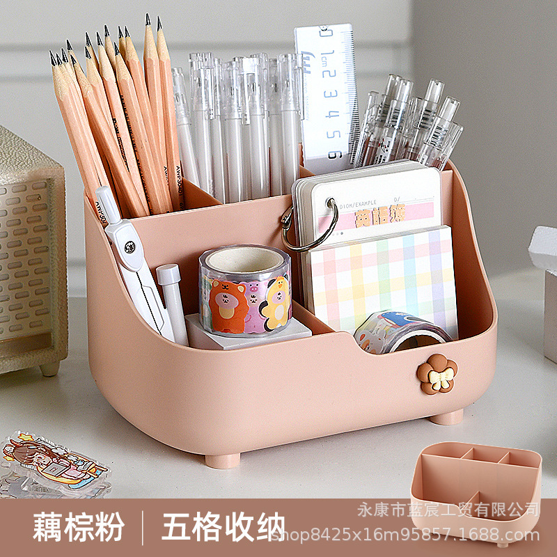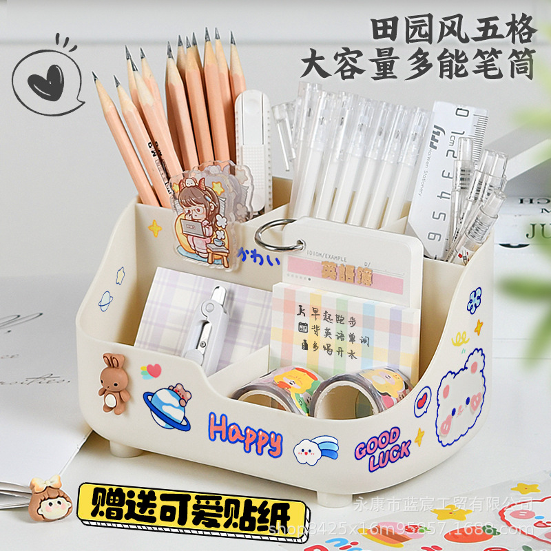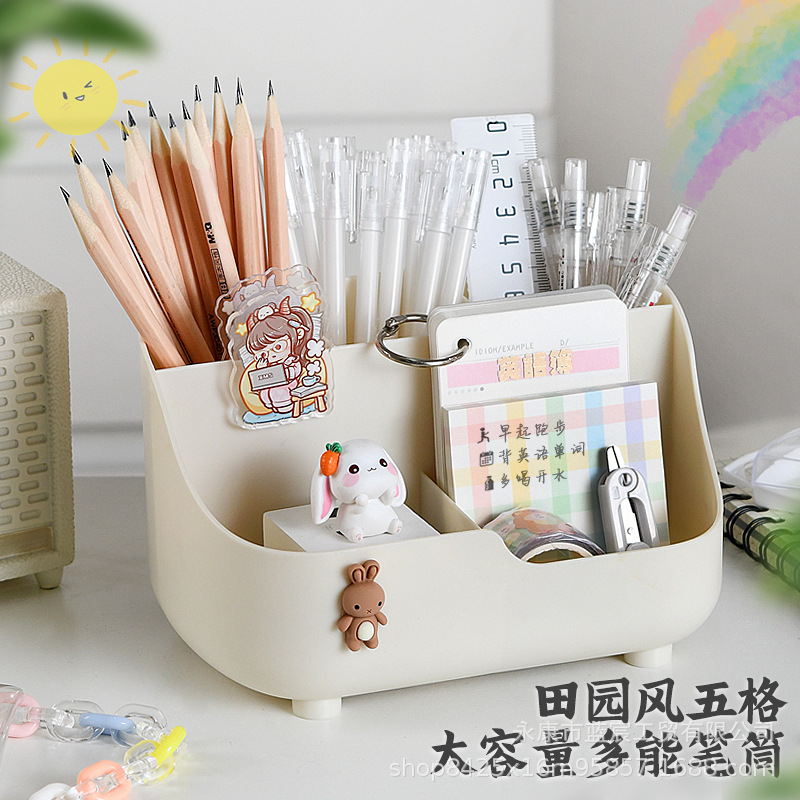 田园风系列超大容量桌面收纳盒多功能化妆刷收纳桶男孩女孩笔架