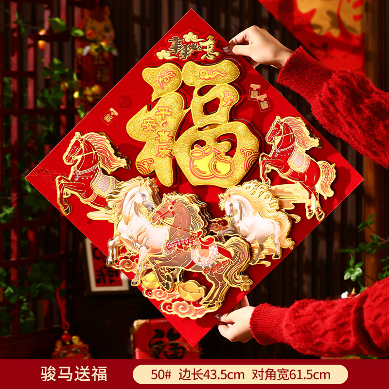 2026新款马年福字贴春节植绒立体过年入户门贴装饰品新年大门福字