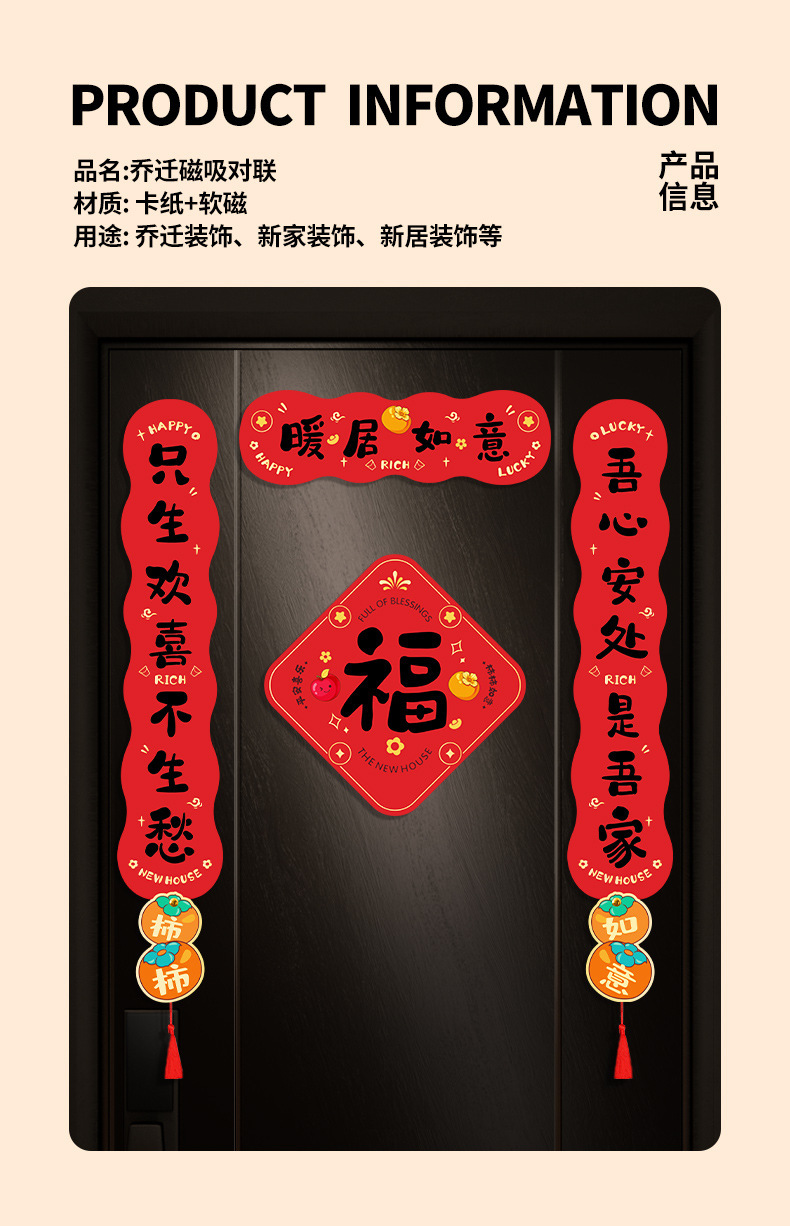 乔迁之喜磁吸对联新居入宅搬家新房布置礼物入户门贴布置仪式用品