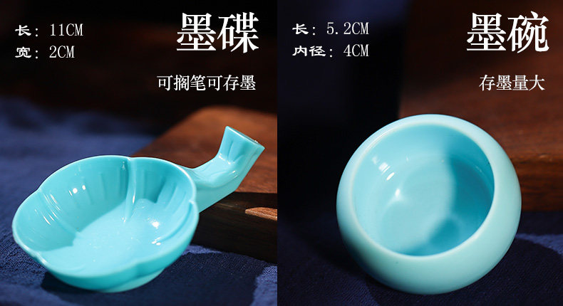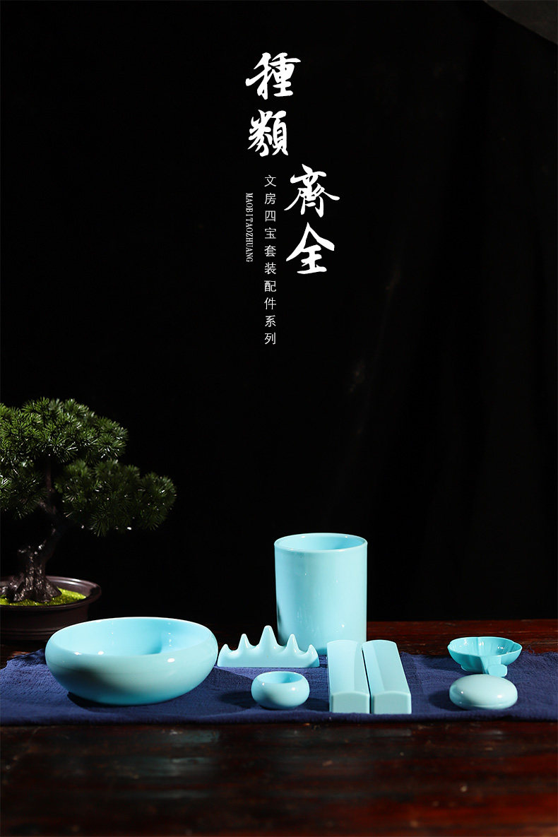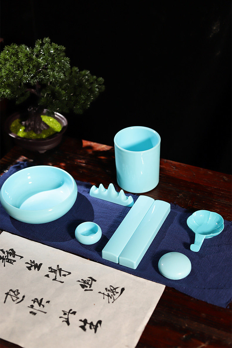 文房四宝配件仿玉笔洗笔筒镇尺笔架仿陶瓷塑料防摔水洗镇纸笔搁笔