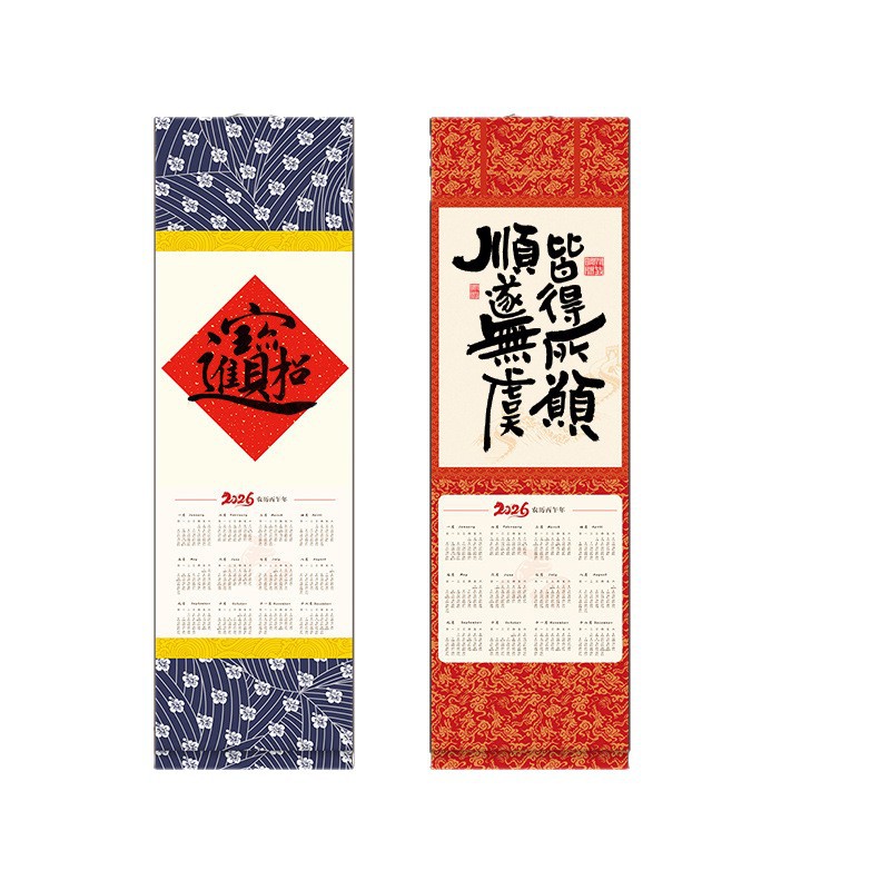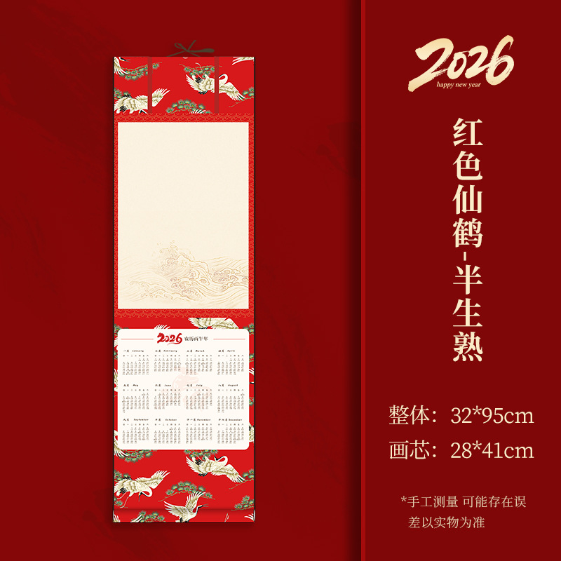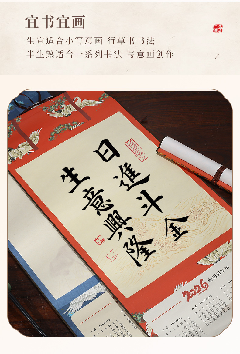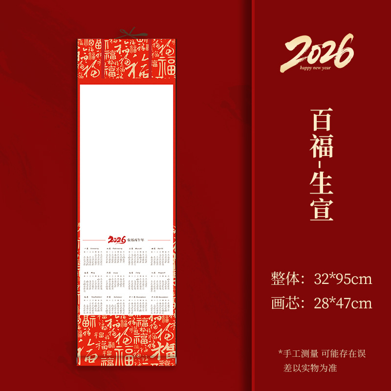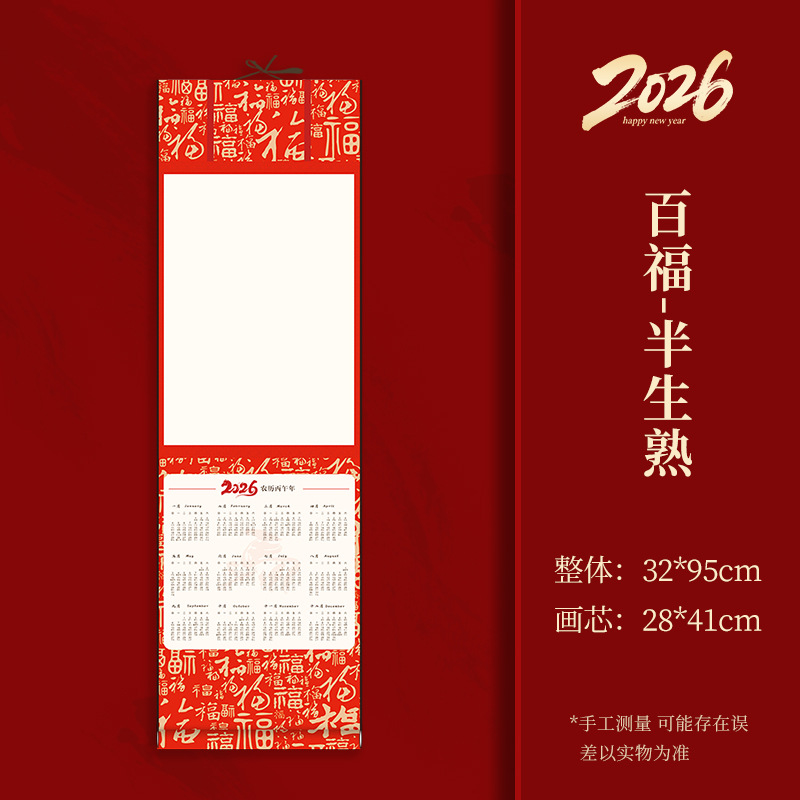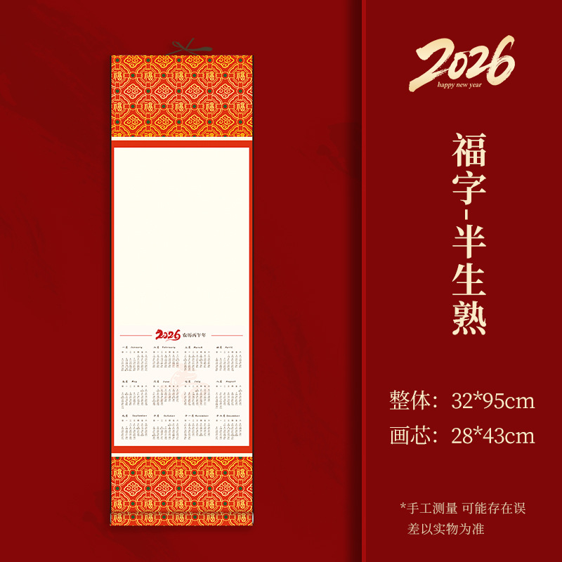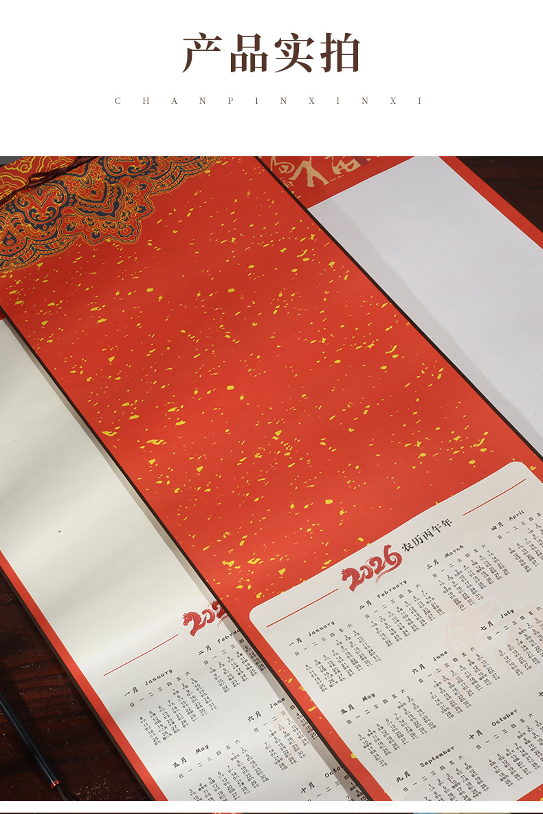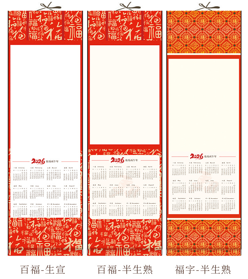 2026挂历日历宣纸挂轴空白卷轴万年红蜡染字画创作卷轴福字年历