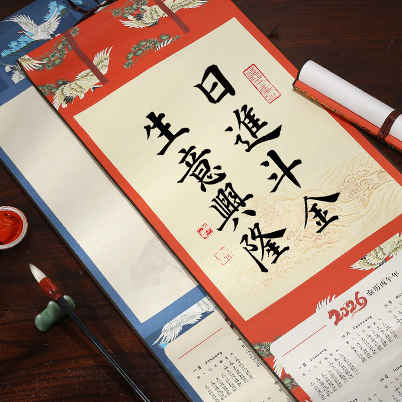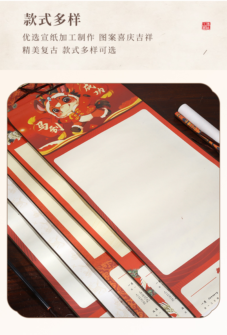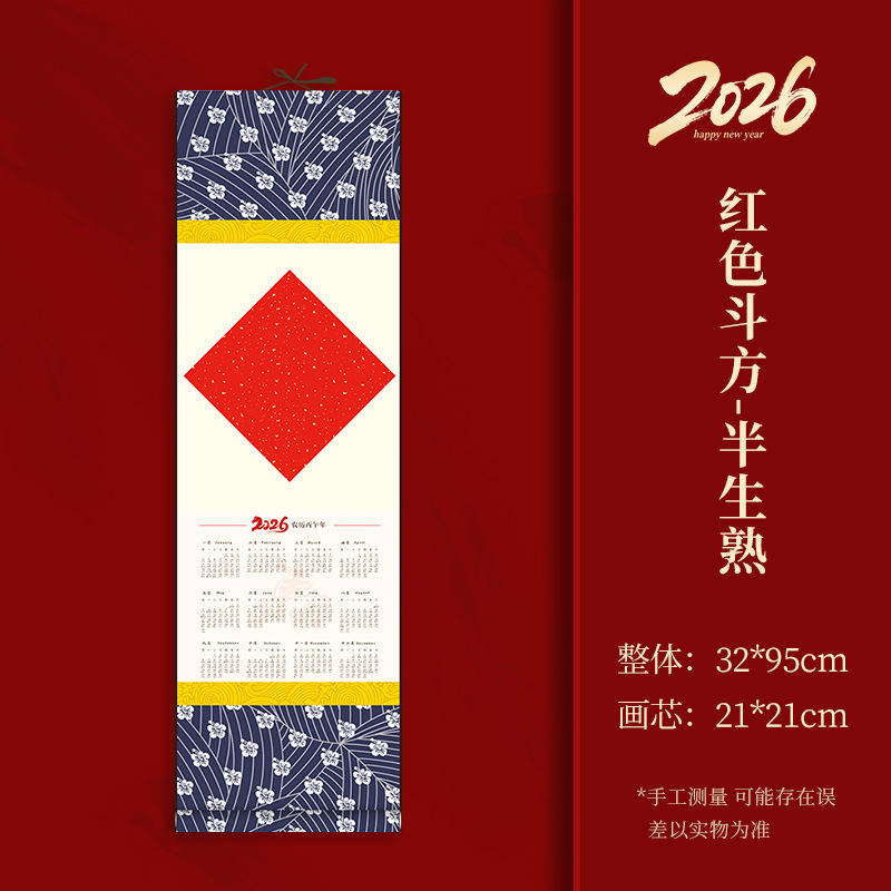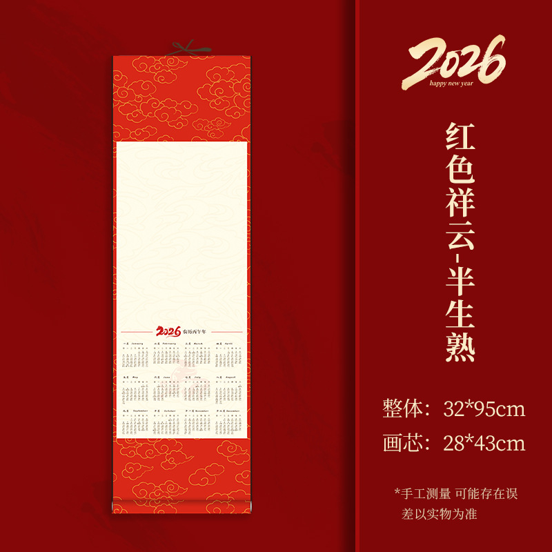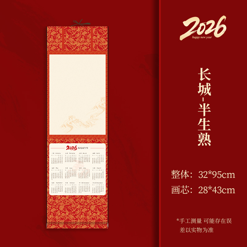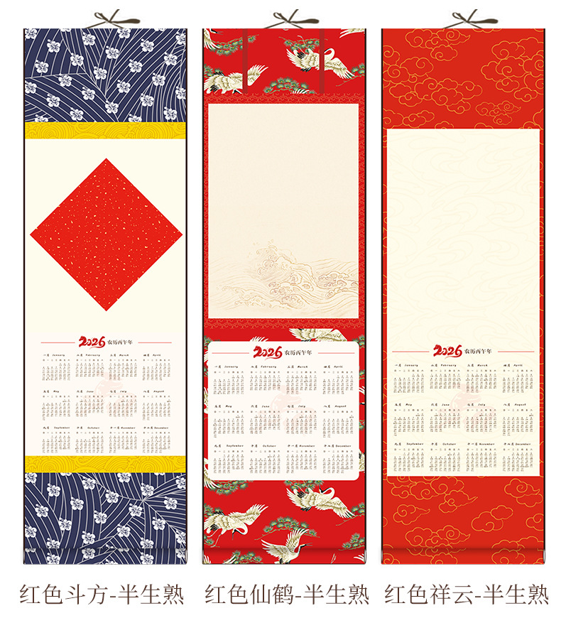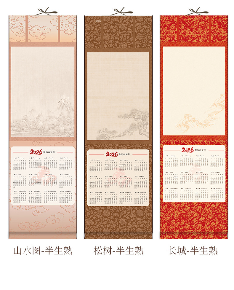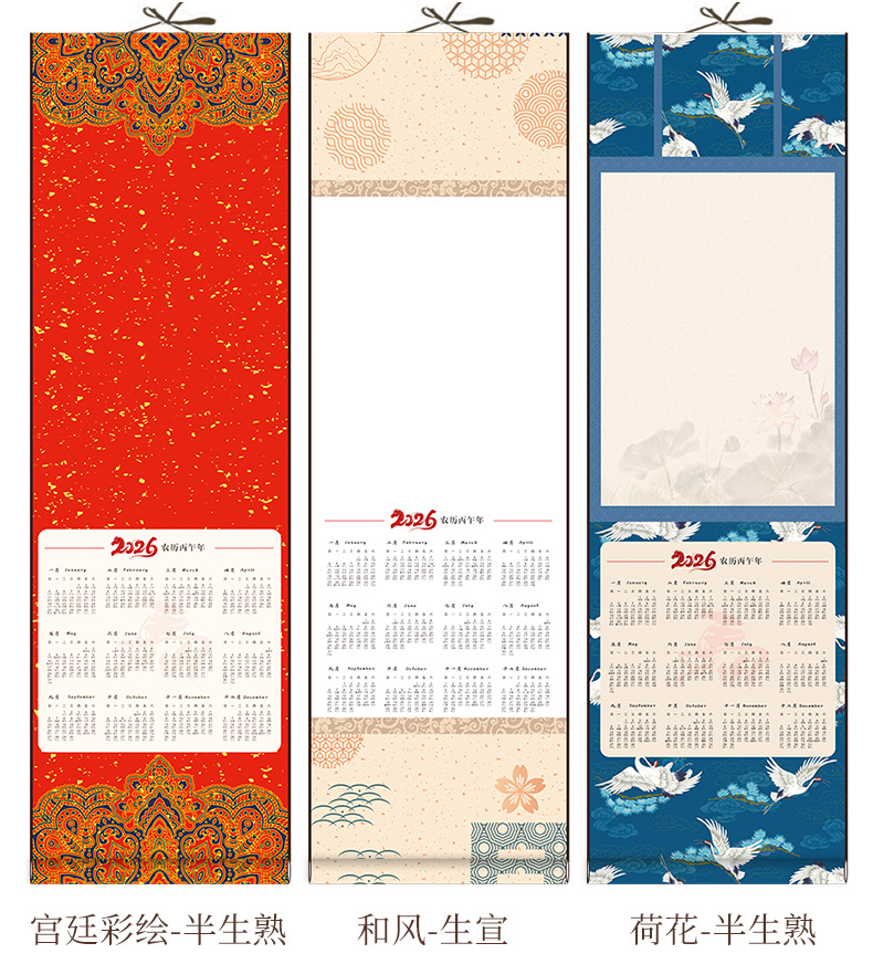 2026挂历日历宣纸挂轴空白卷轴万年红蜡染字画创作卷轴福字年历