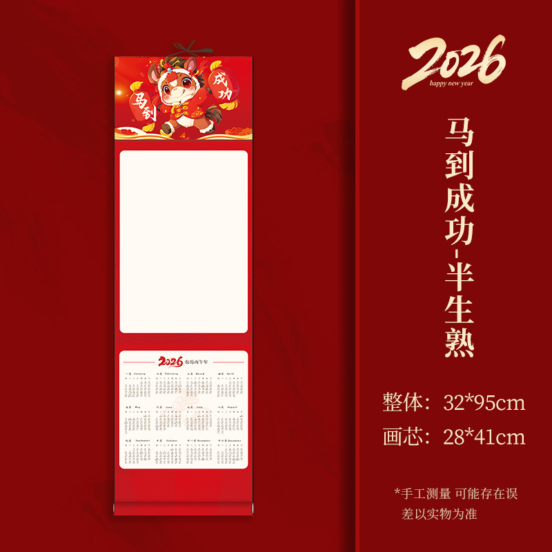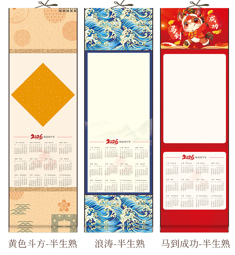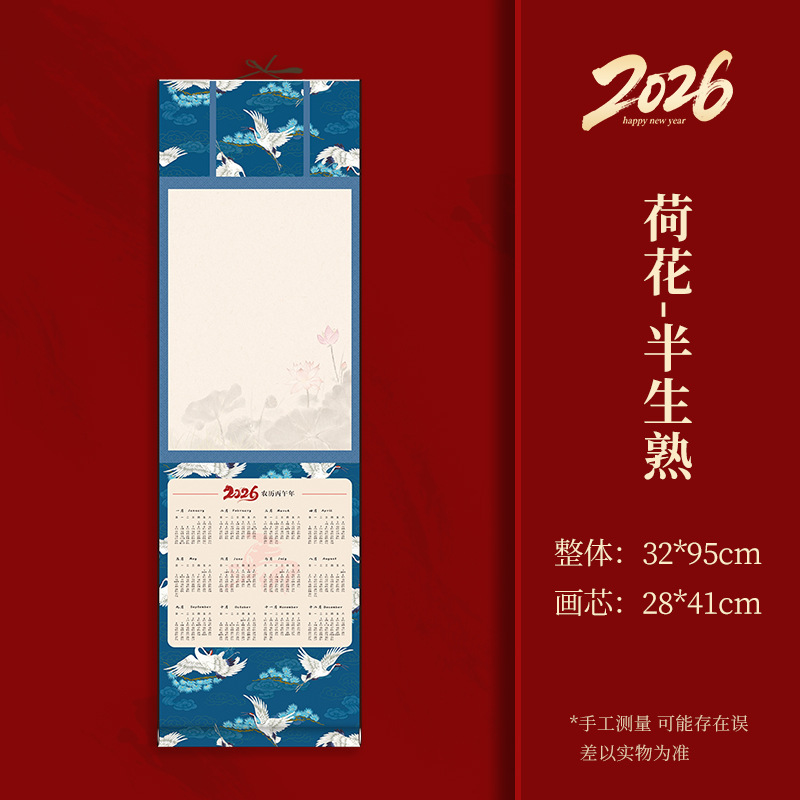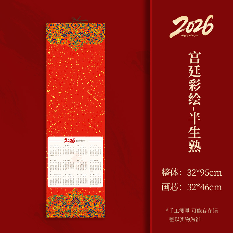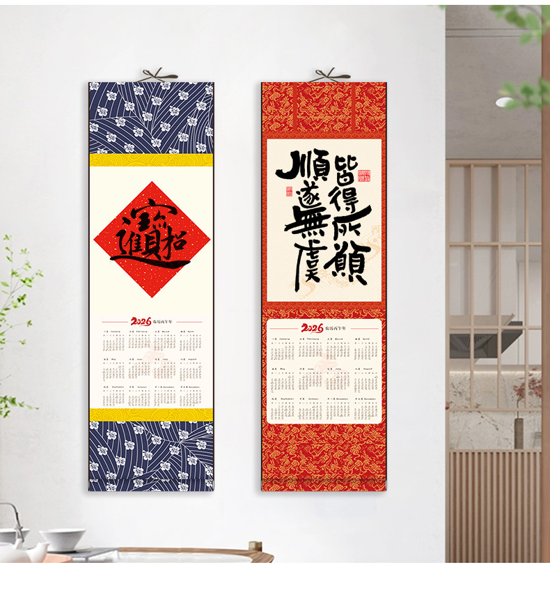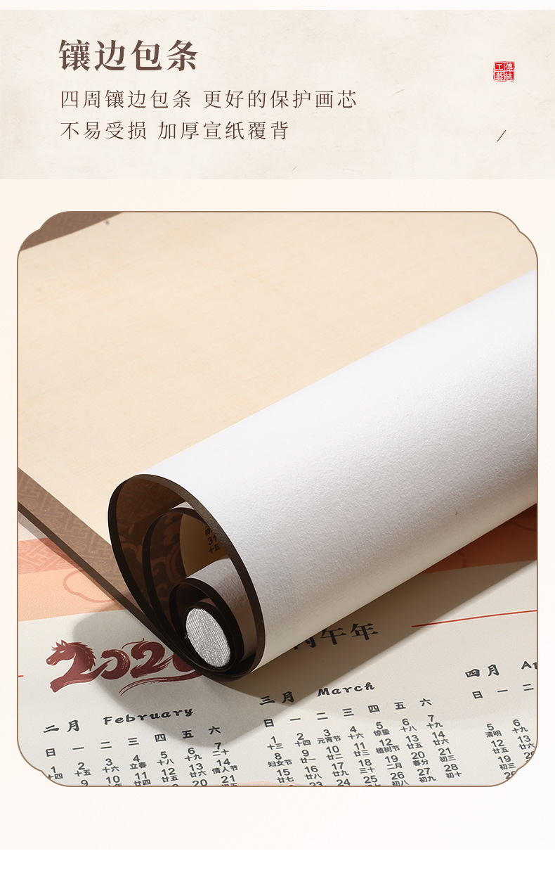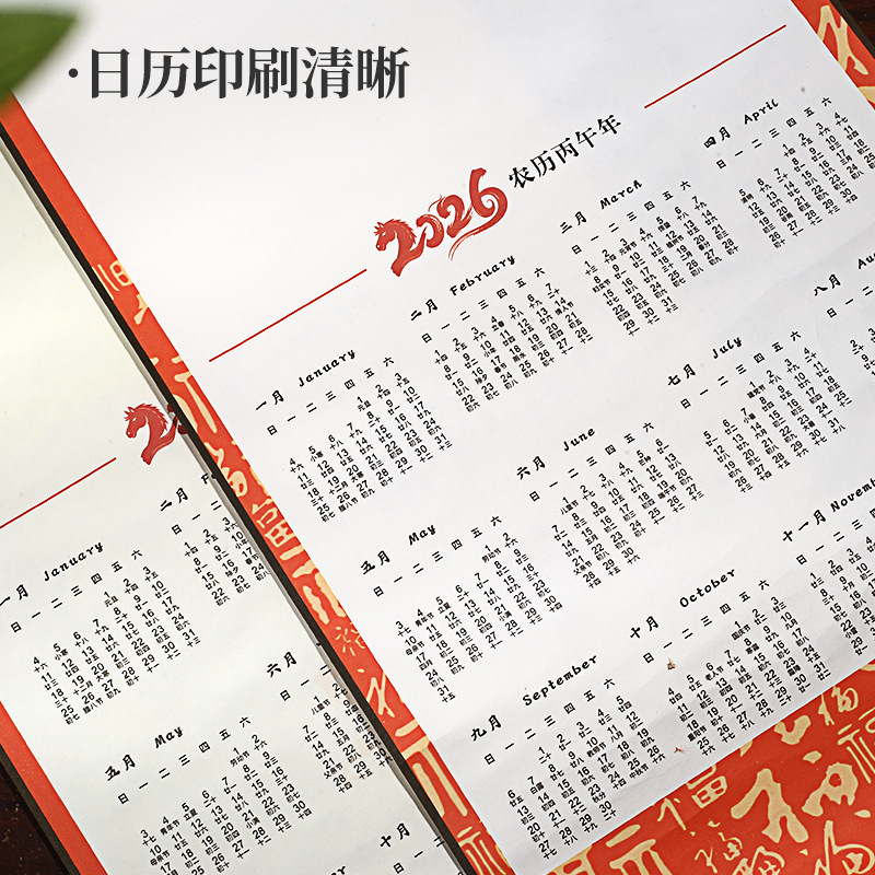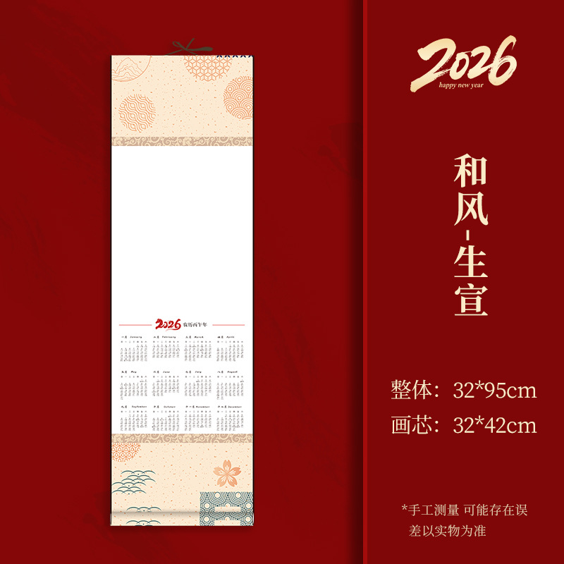 2026挂历日历宣纸挂轴空白卷轴万年红蜡染字画创作卷轴福字年历