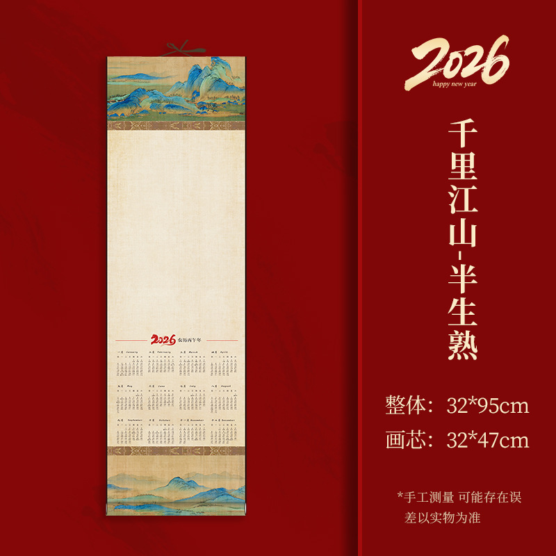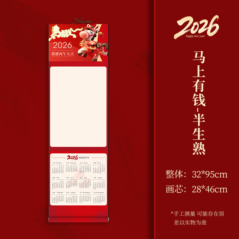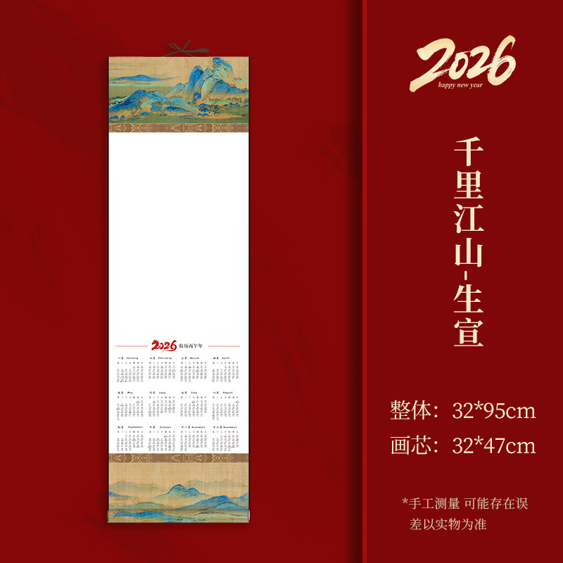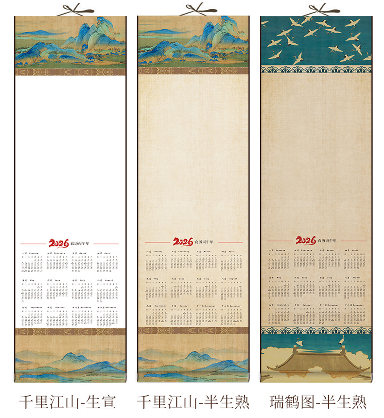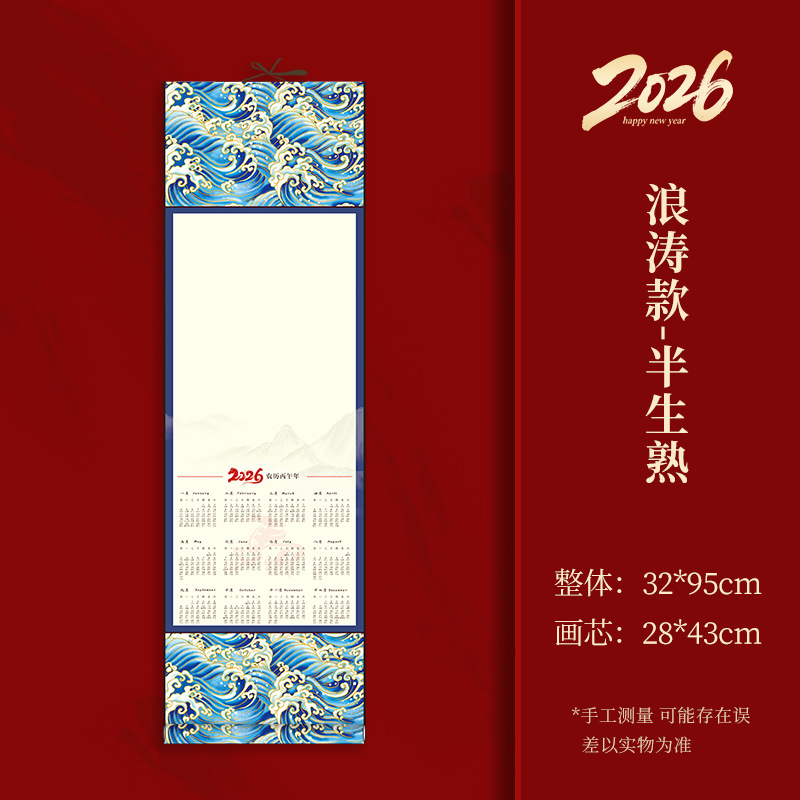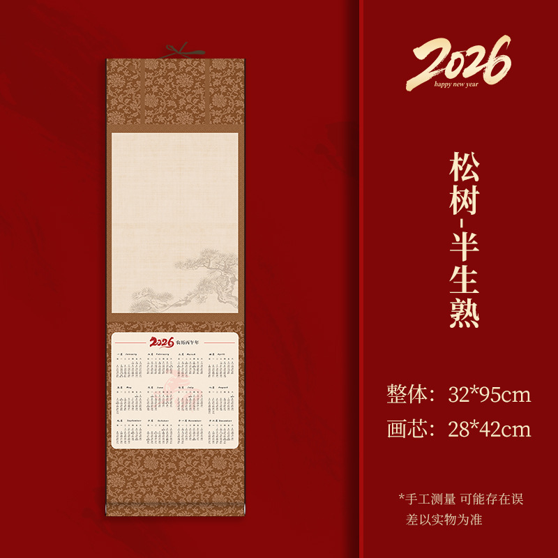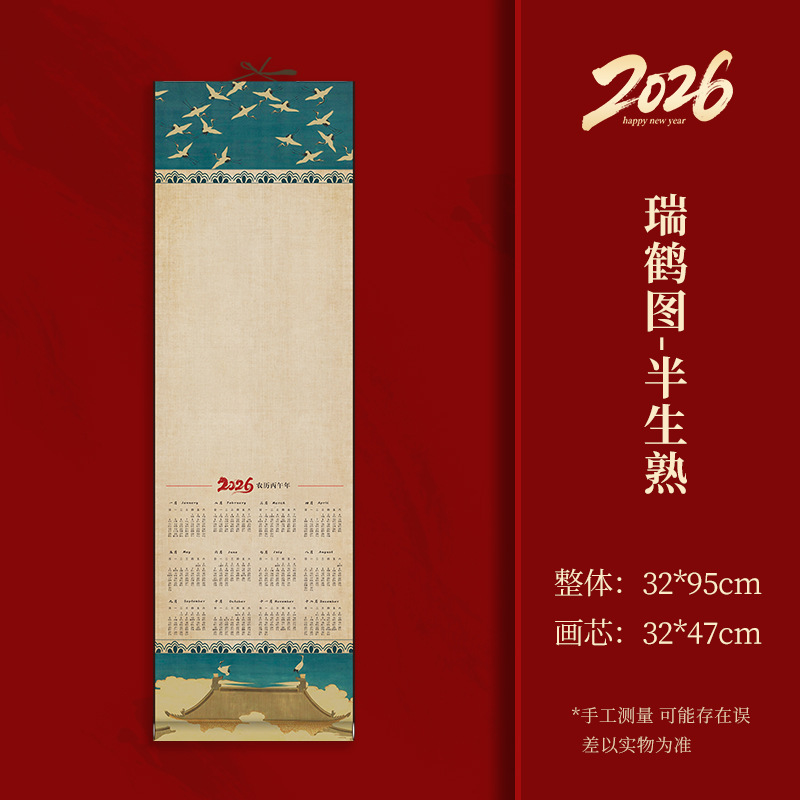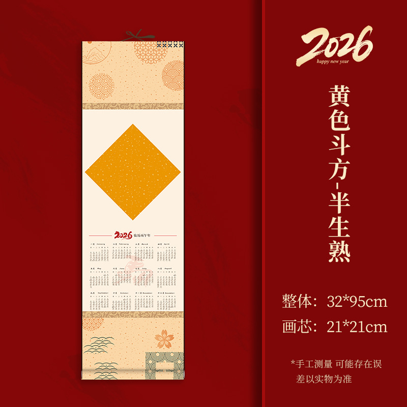 2026挂历日历宣纸挂轴空白卷轴万年红蜡染字画创作卷轴福字年历