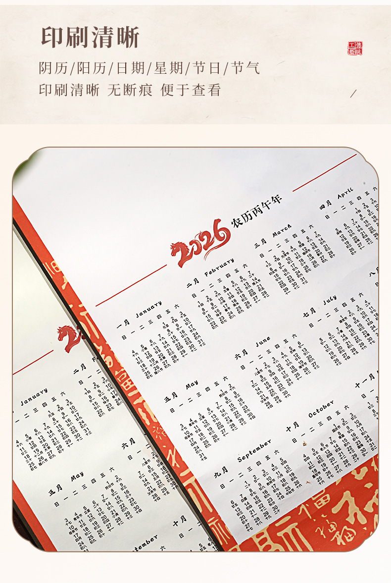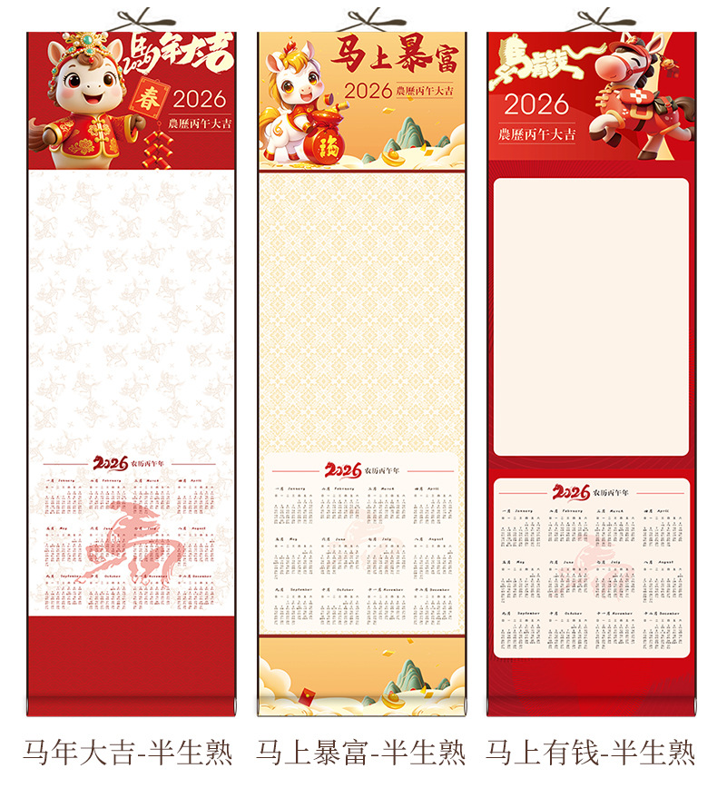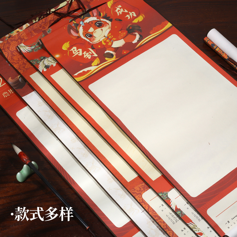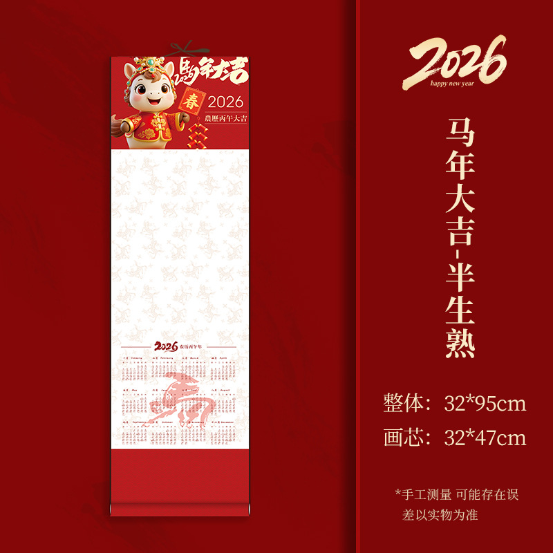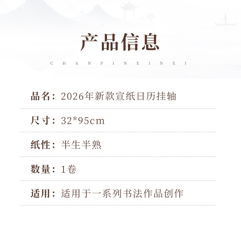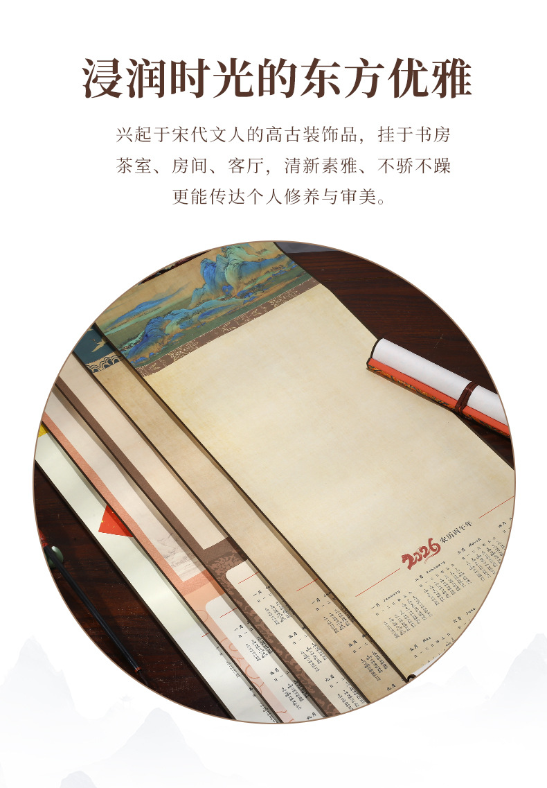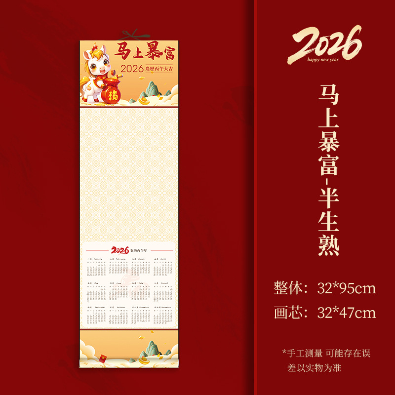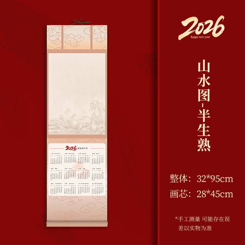 2026挂历日历宣纸挂轴空白卷轴万年红蜡染字画创作卷轴福字年历