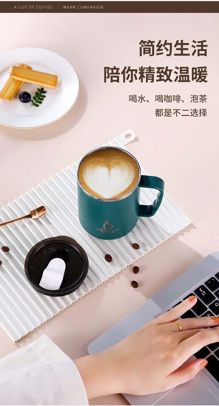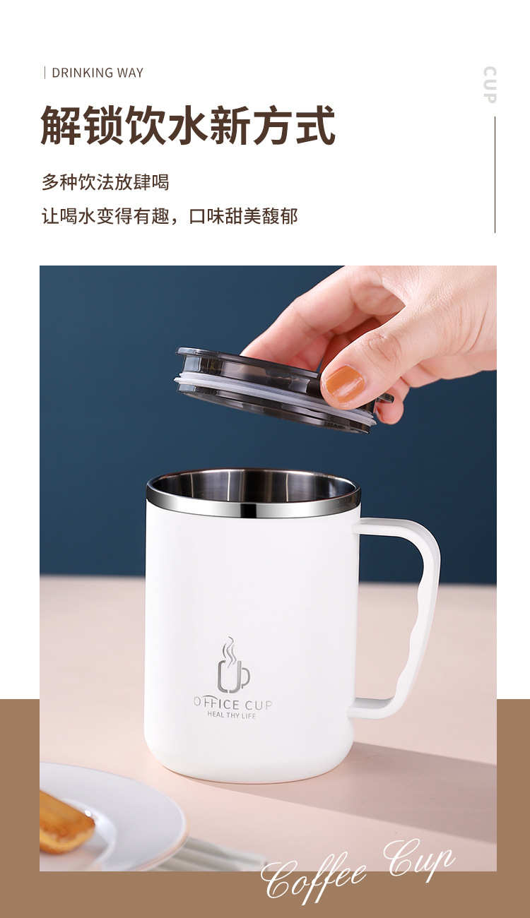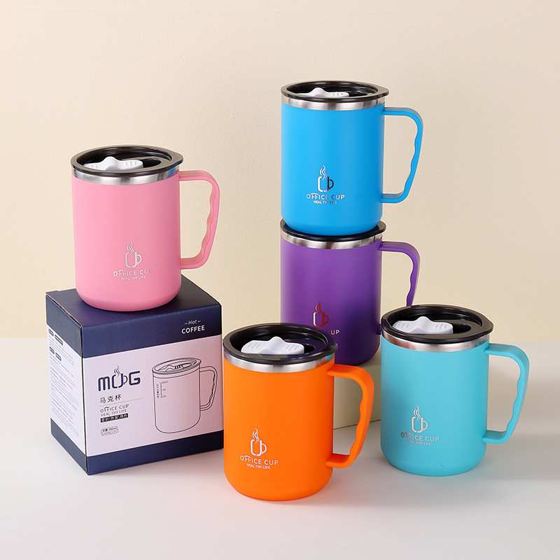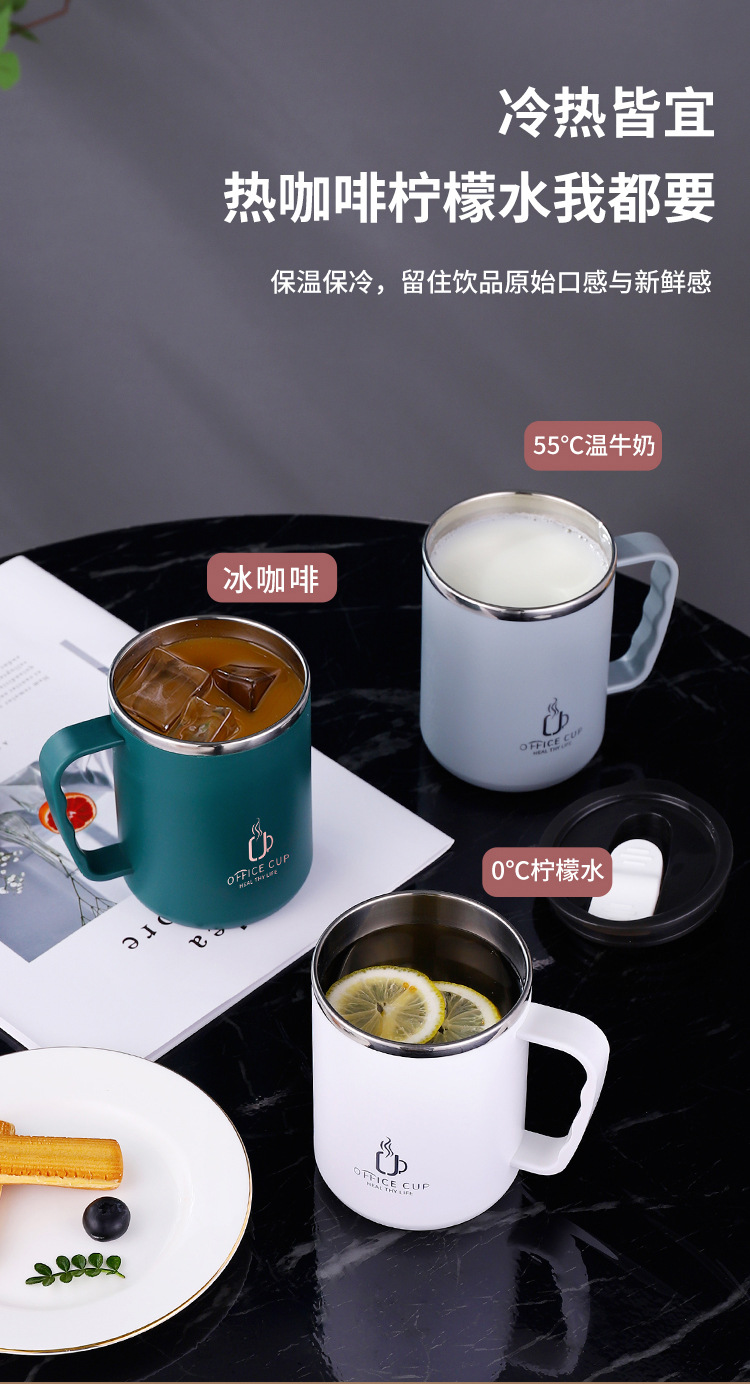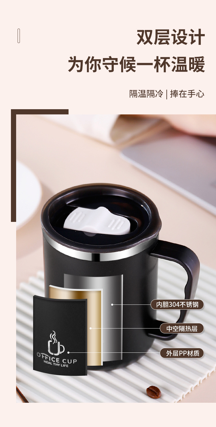 跨境304不锈钢马克杯双层保温杯办公随手咖啡杯带手柄泡茶杯礼品