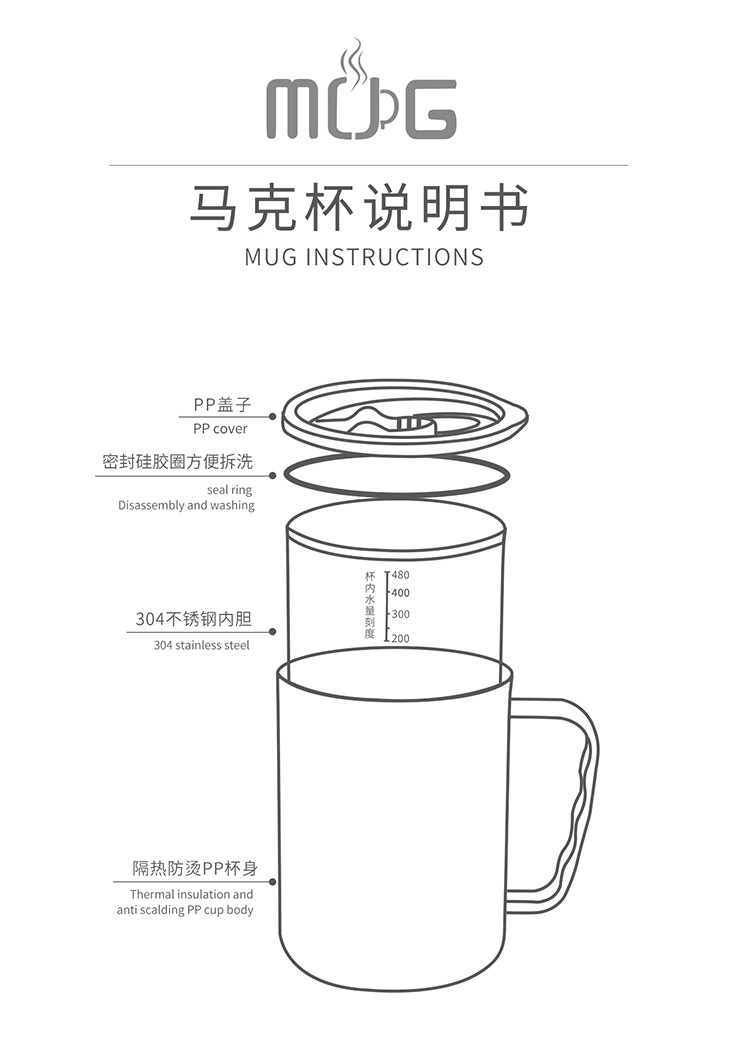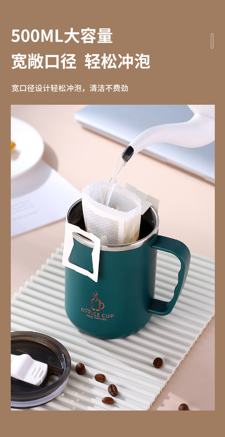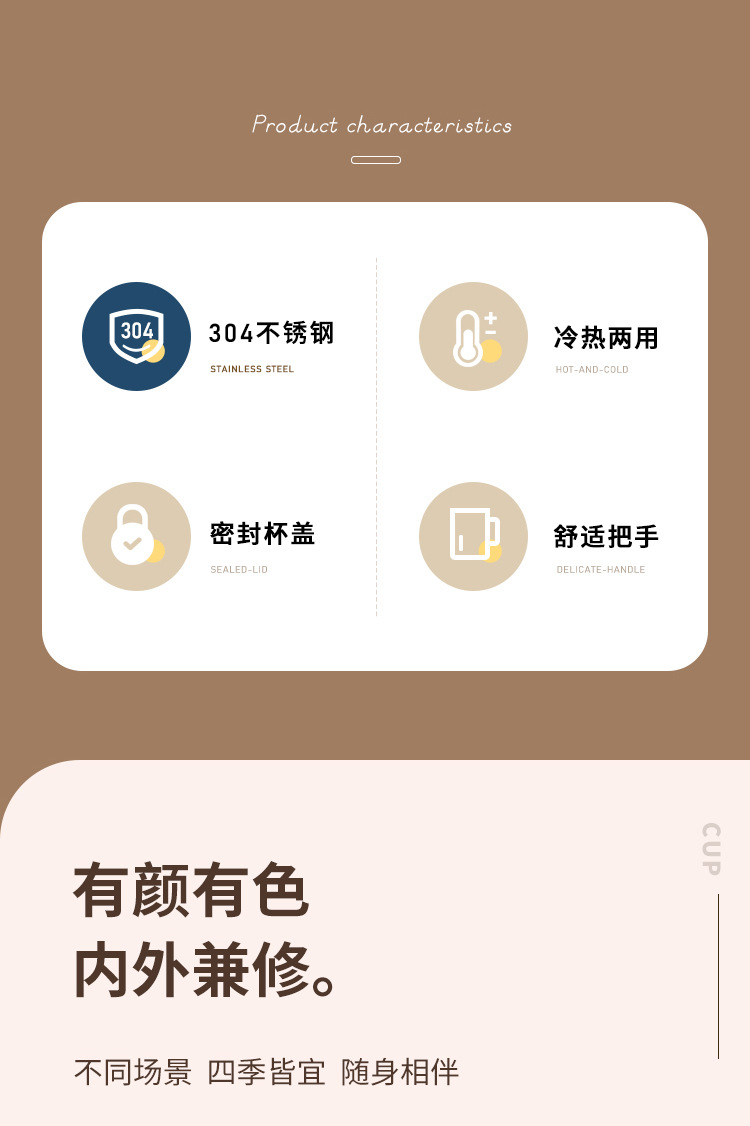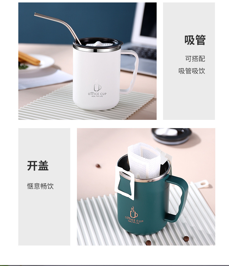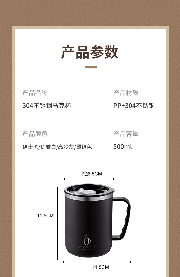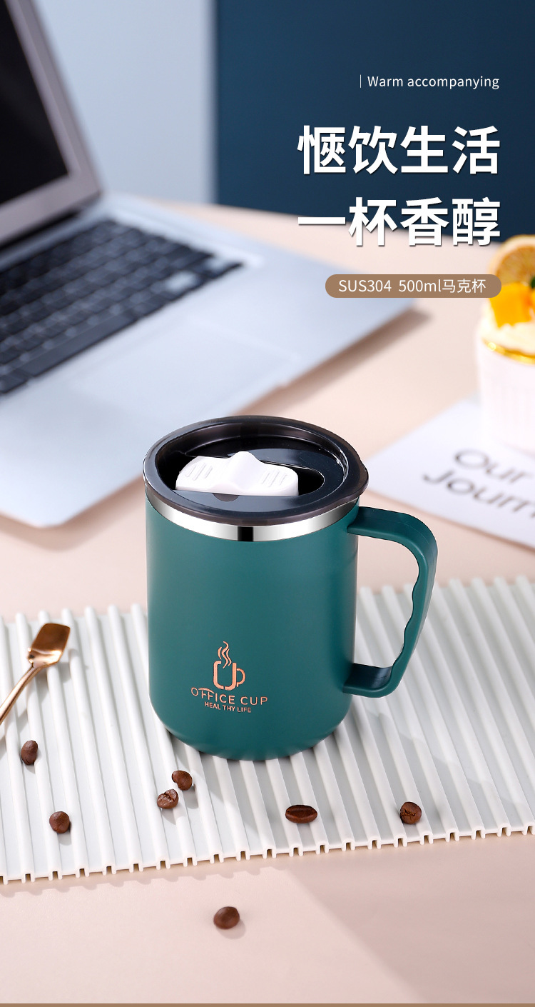 跨境304不锈钢马克杯双层保温杯办公随手咖啡杯带手柄泡茶杯礼品