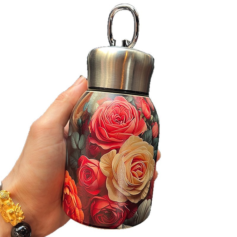 跨境新款国风小胖丁保温杯户外便携提环口袋杯车载随手杯印制图案