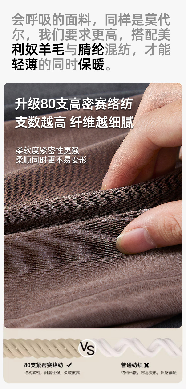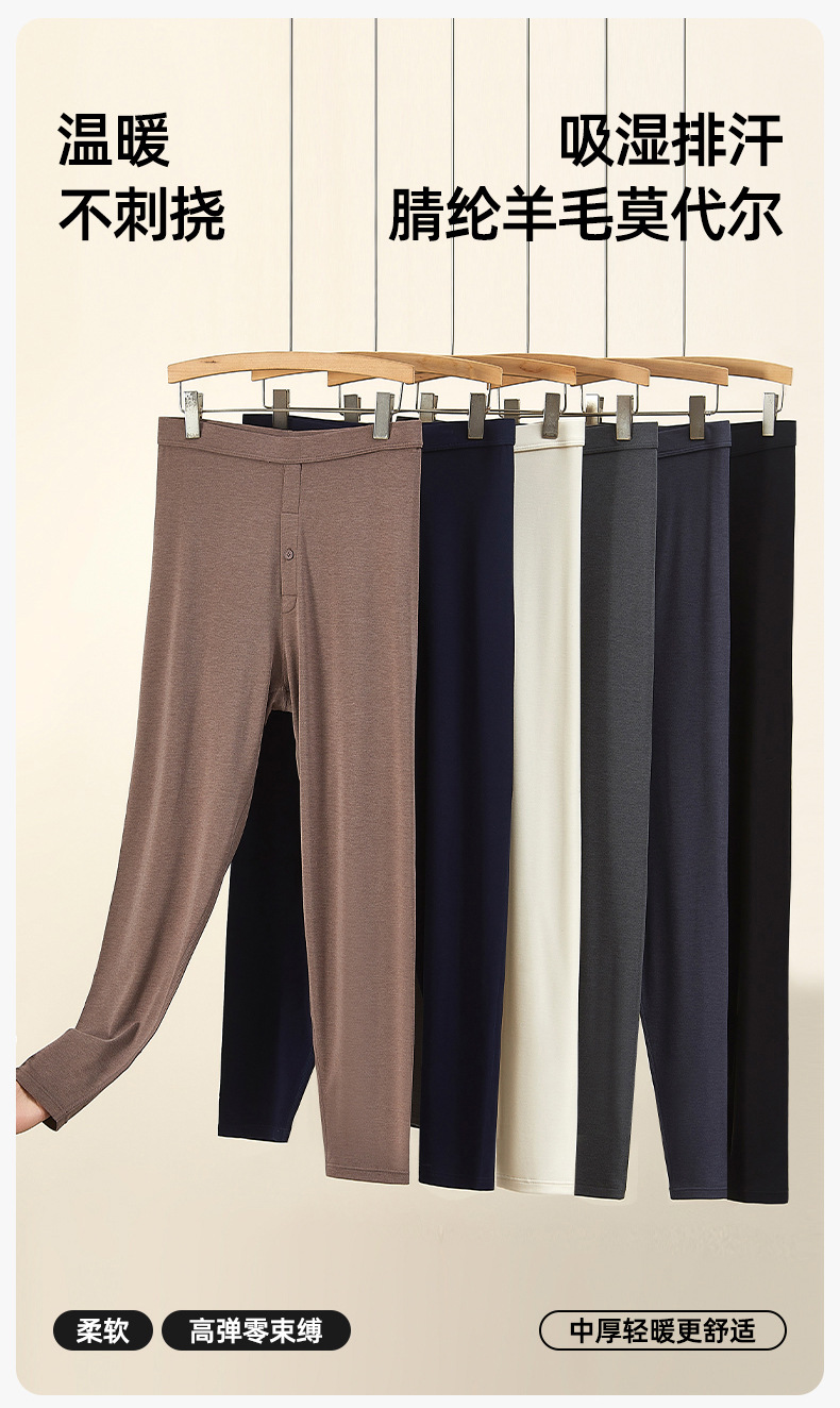 80支莫代尔羊毛秋裤加厚男士贴身秋冬打底线裤衬裤德绒发热保暖裤