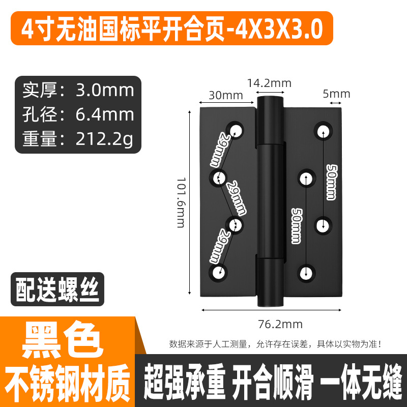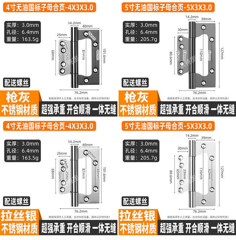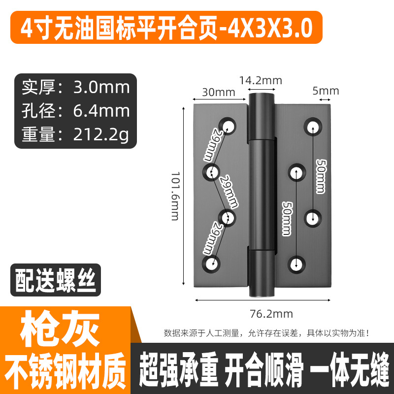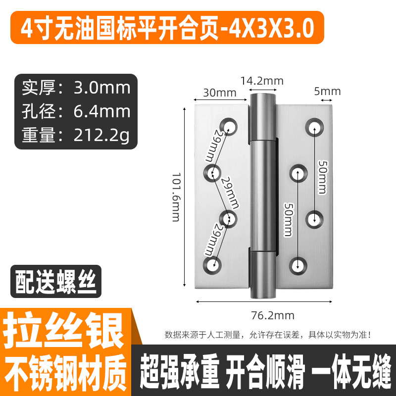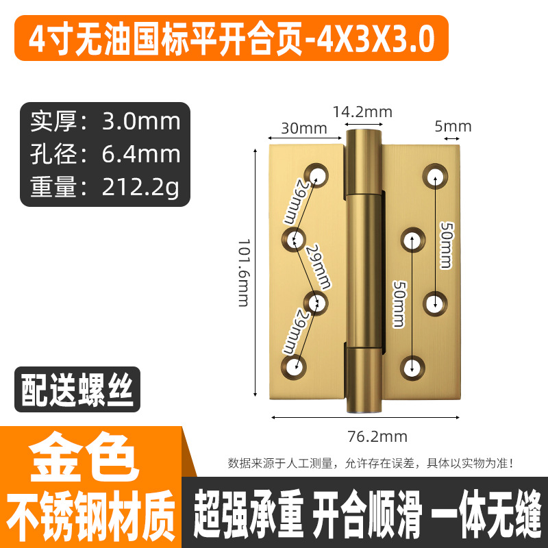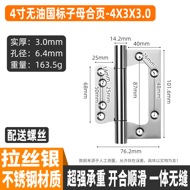 静音无油合页不锈钢4寸子母合页木门房门防火门承重平开合页跨境