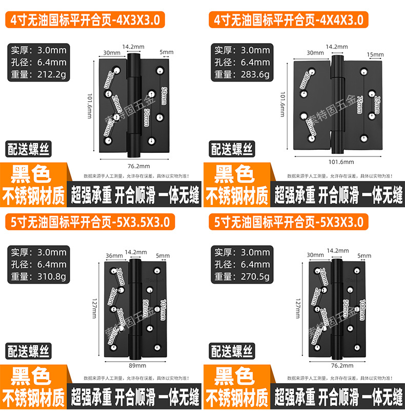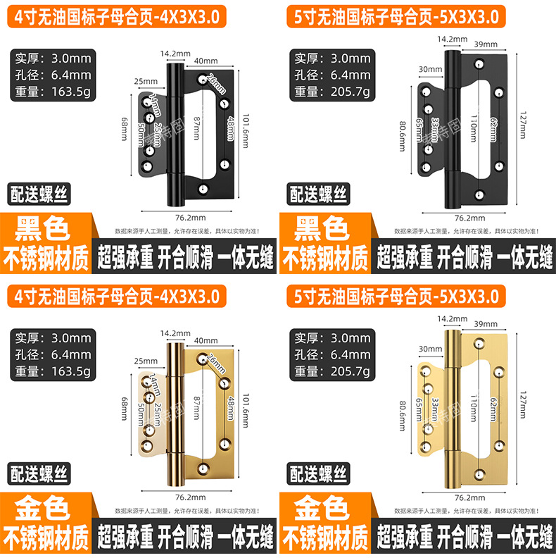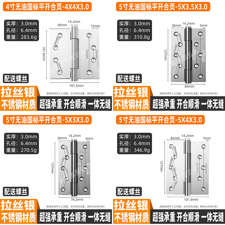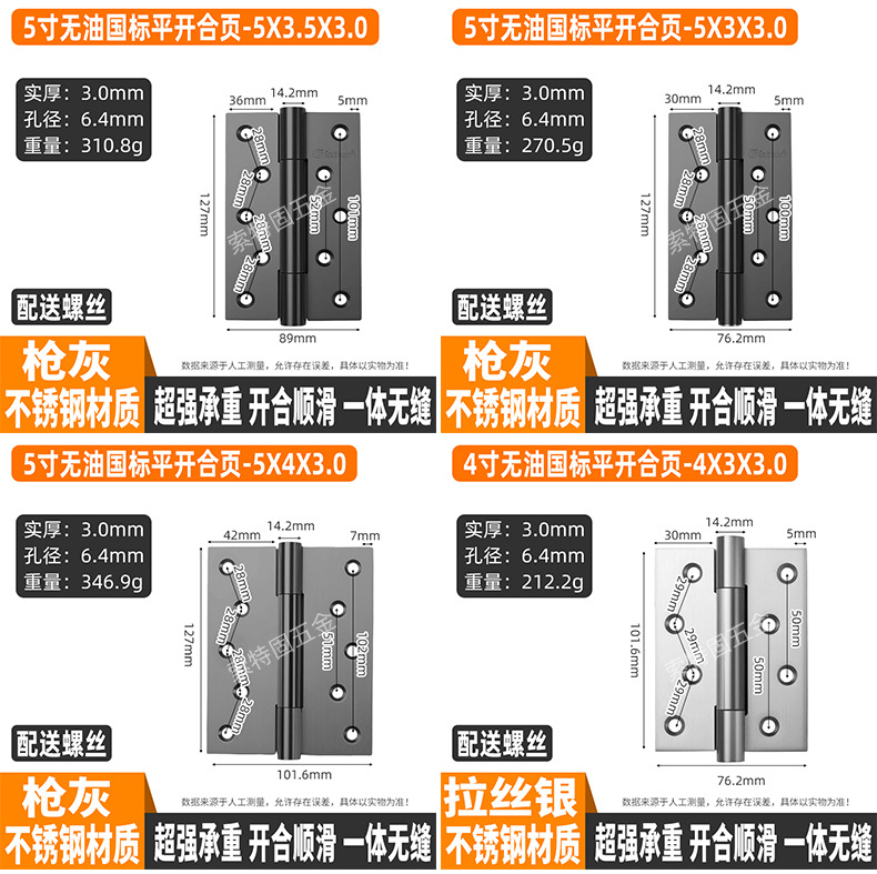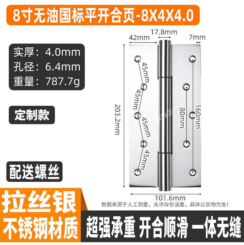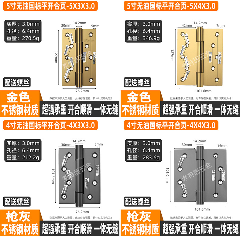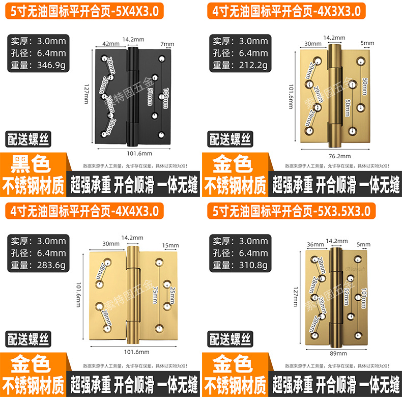 静音无油合页不锈钢4寸子母合页木门房门防火门承重平开合页跨境